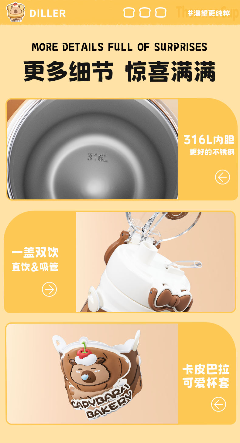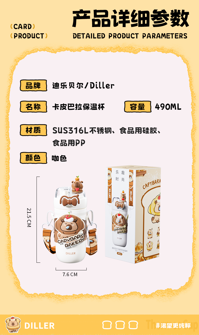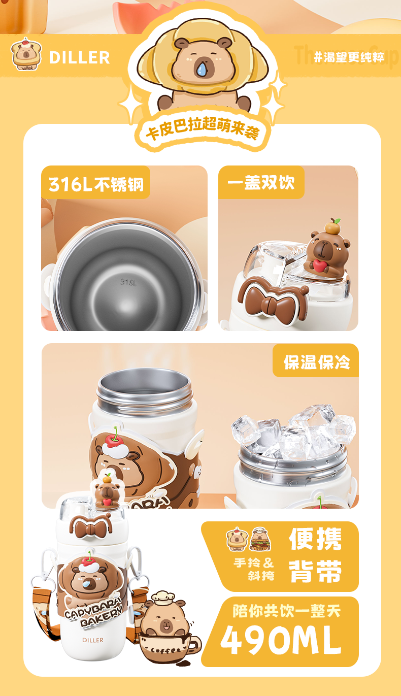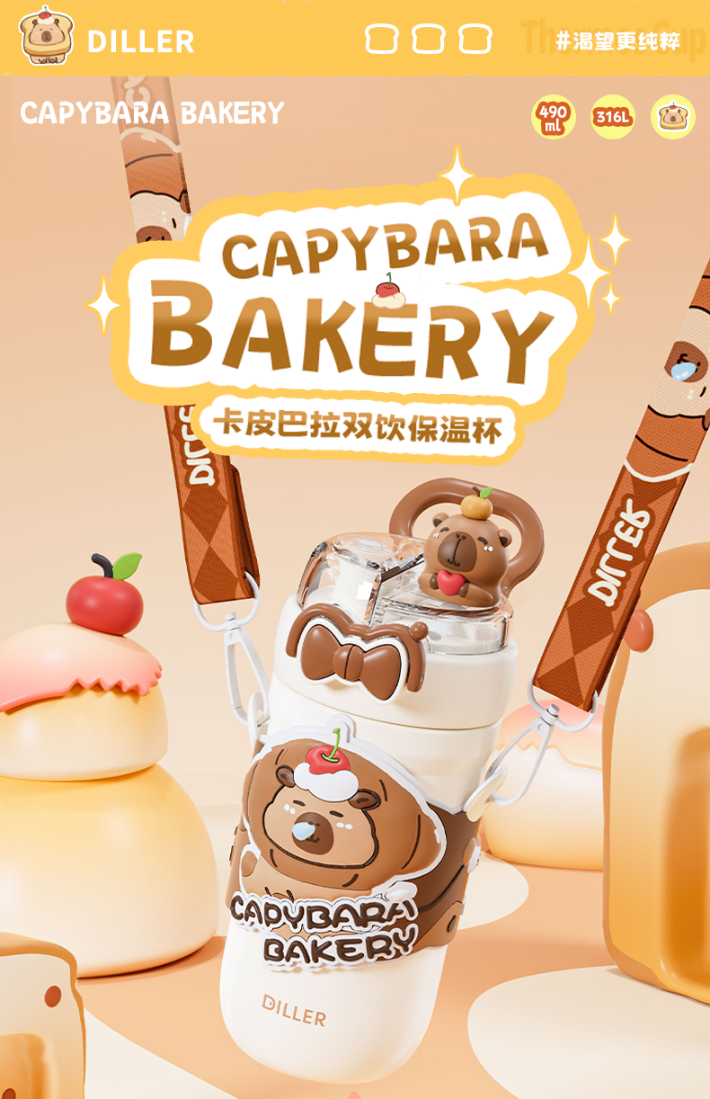 ALICIA X Diller Capybara Multi-function Thermo Vacuum Flask Bottle D9360-490ml