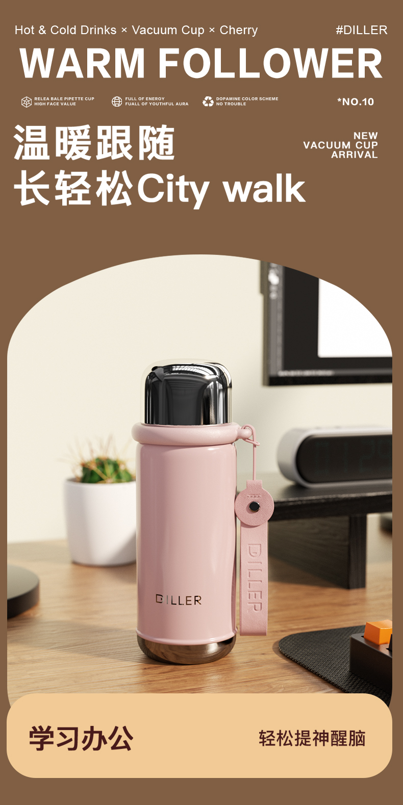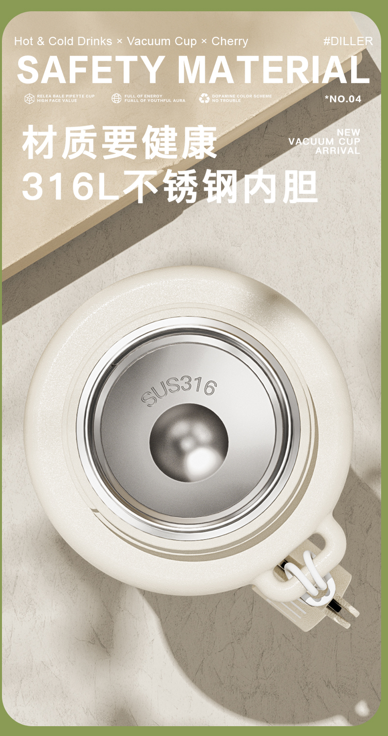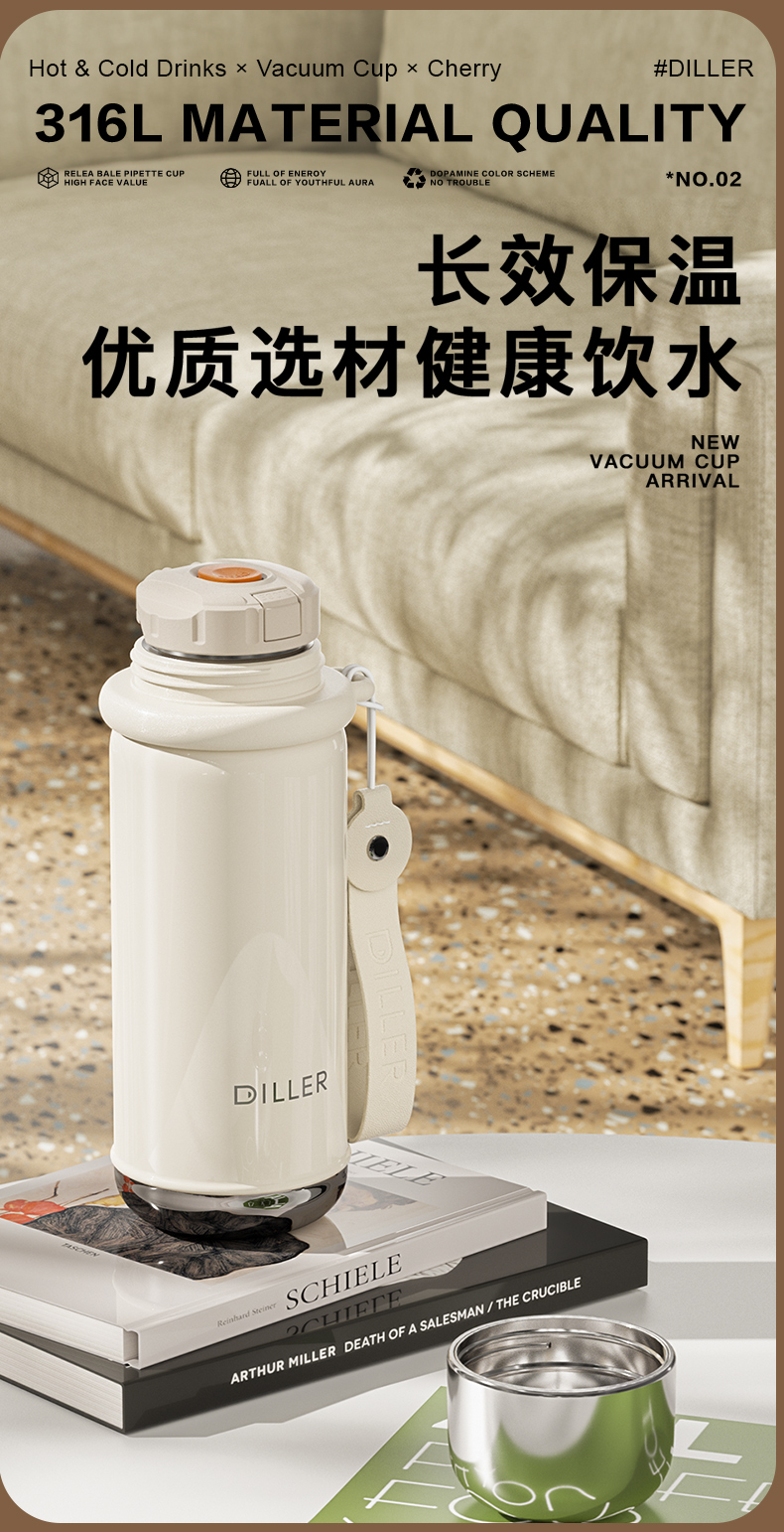 Diller 316 Stainless Steel Hot Thermo Flask Bottle Multifunction Travel Car Holding
