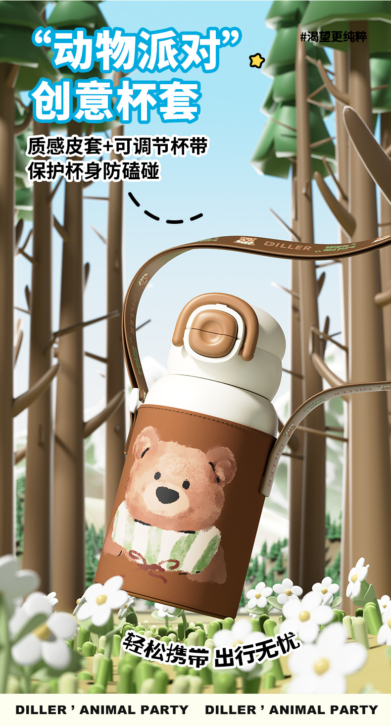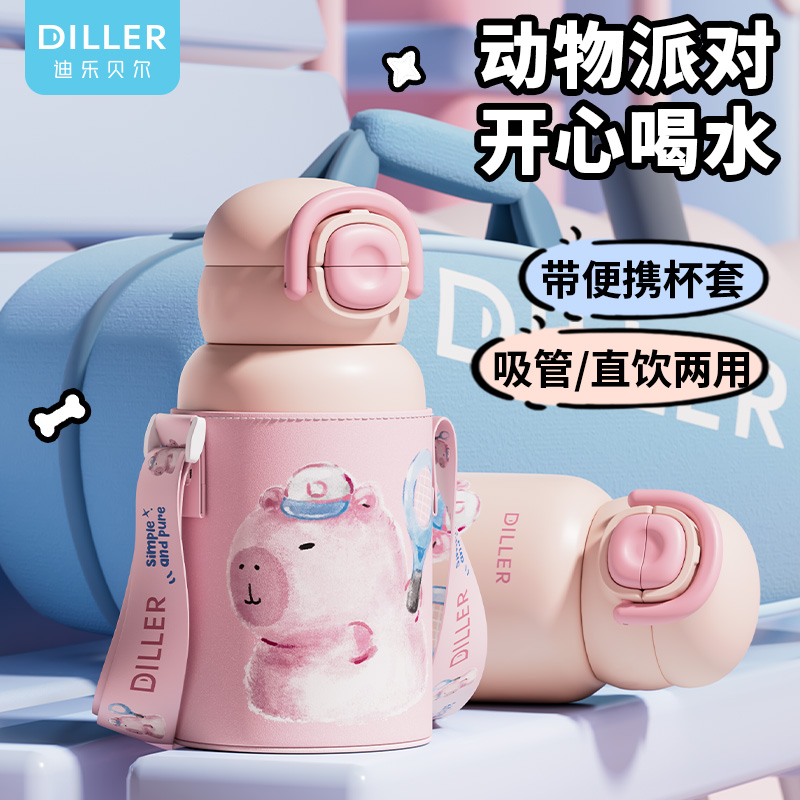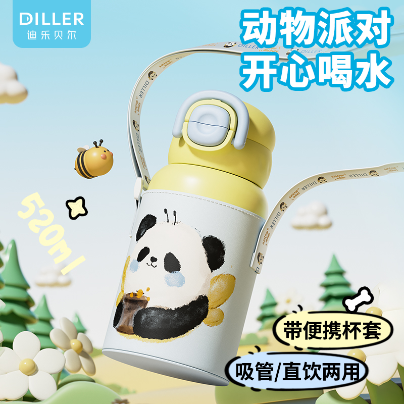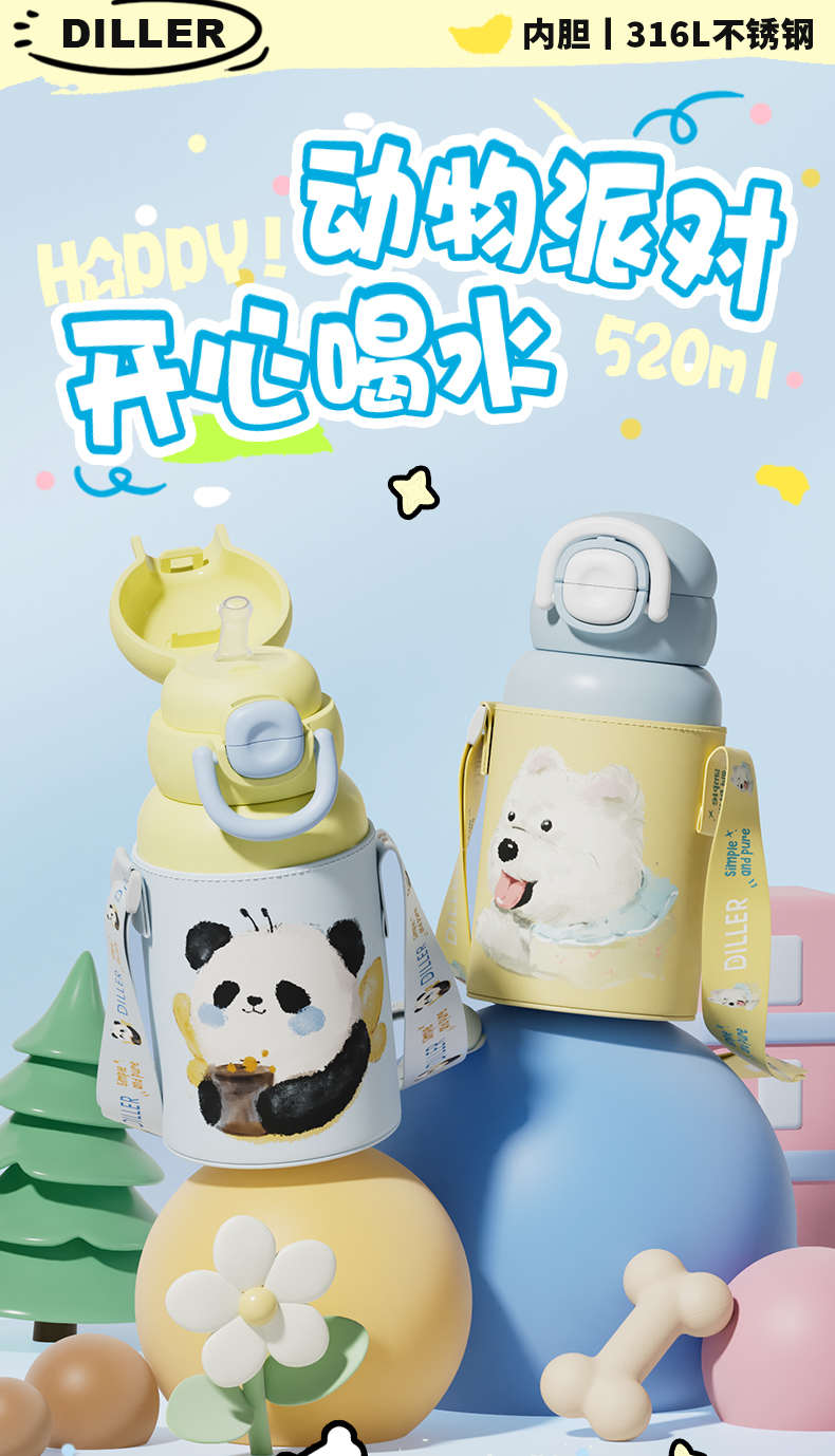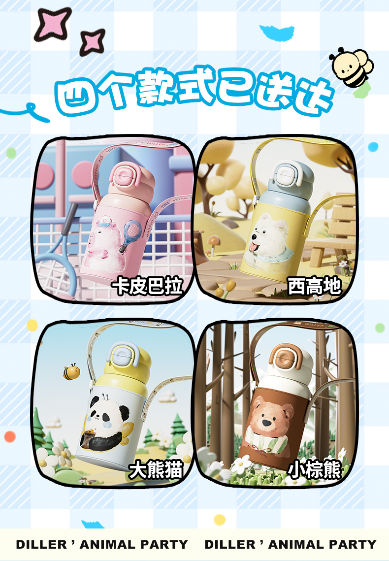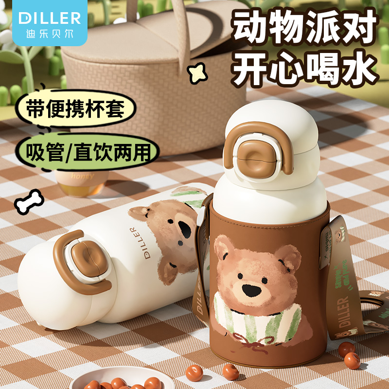 Diller Animal Party SUS316L Multi functional Straw Direct Thermo Water Bottle