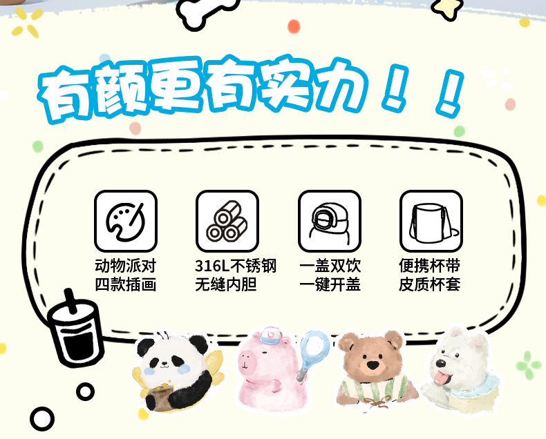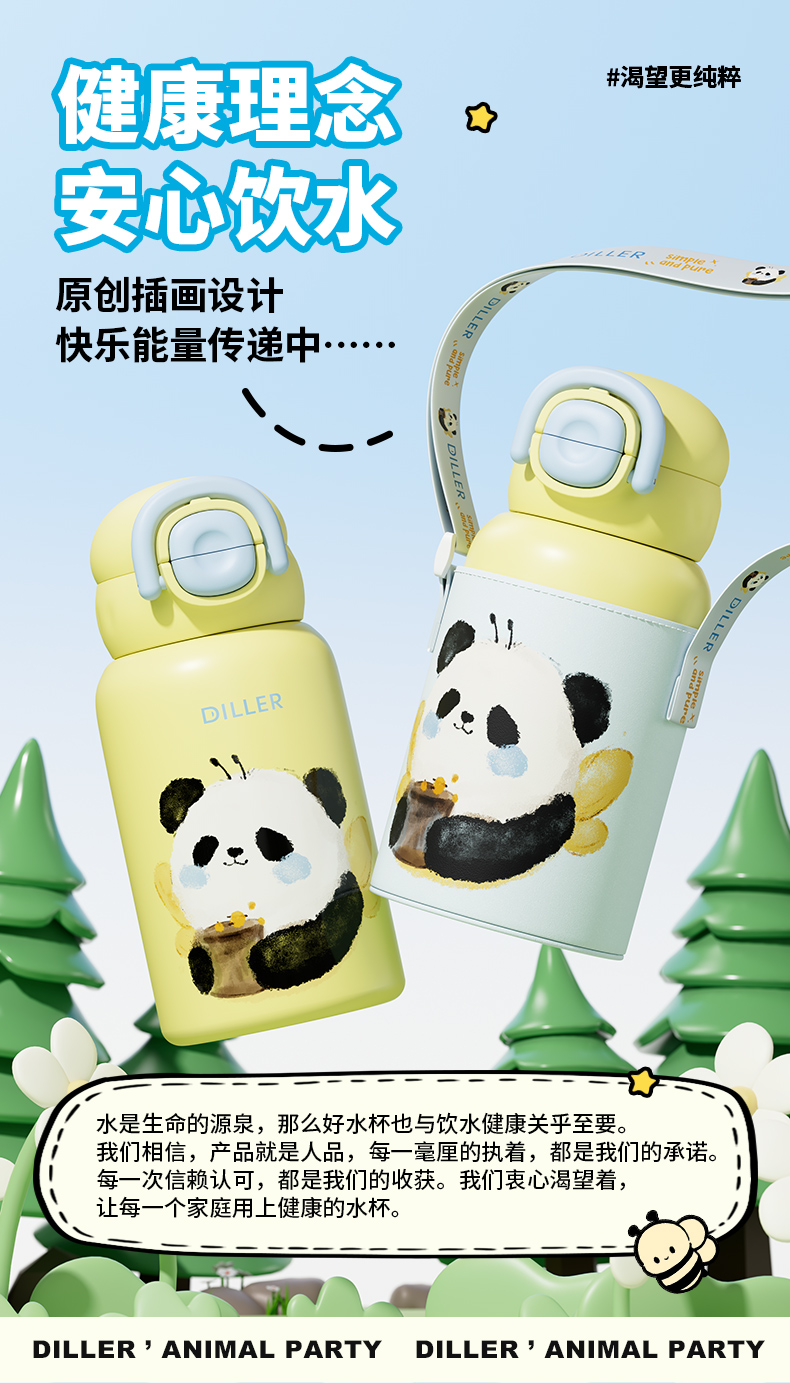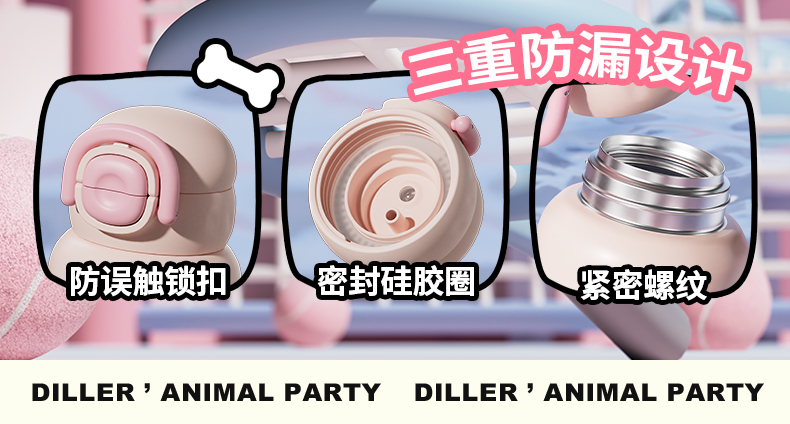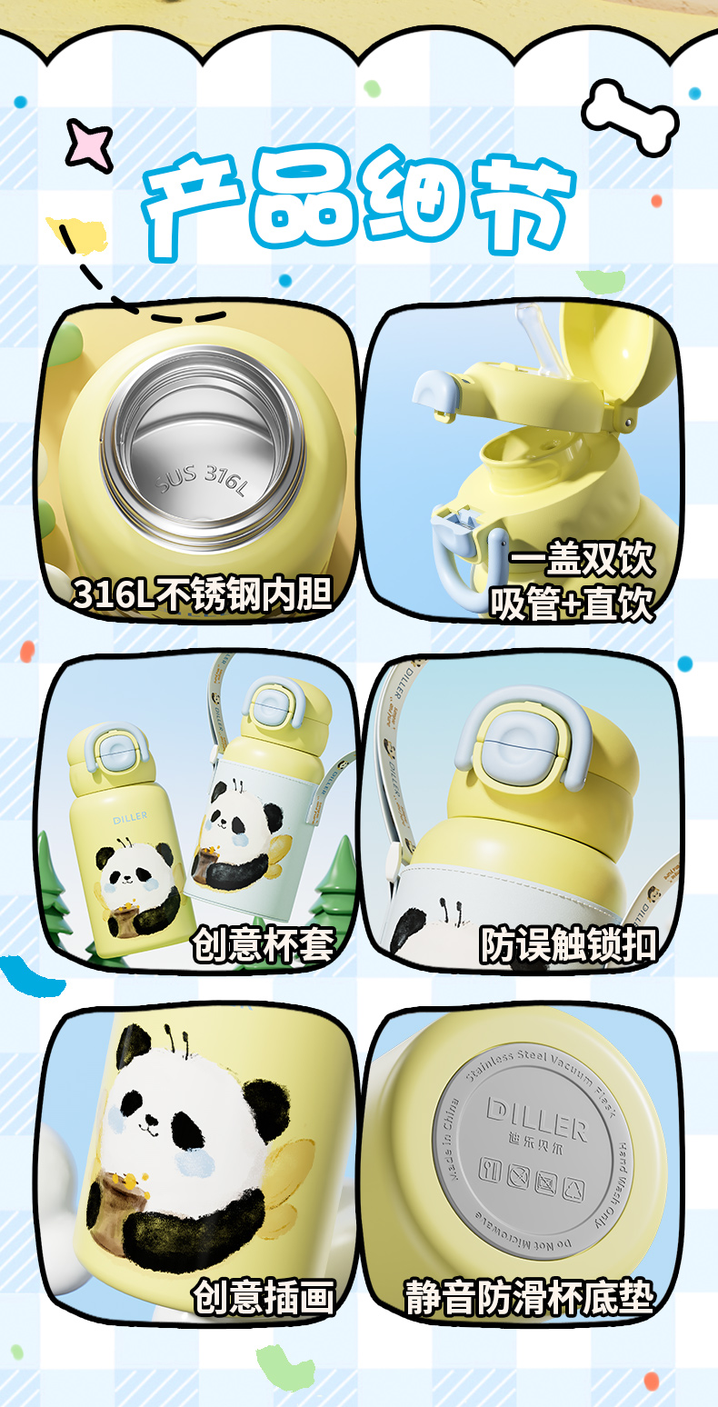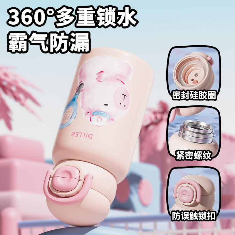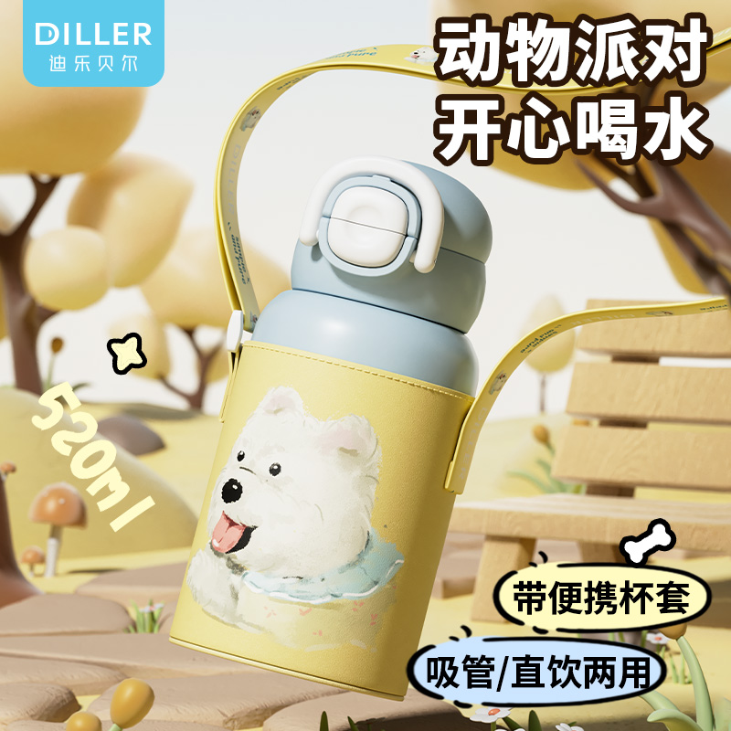 Diller Animal Party SUS316L Multi functional Straw Direct Thermo Water Bottle