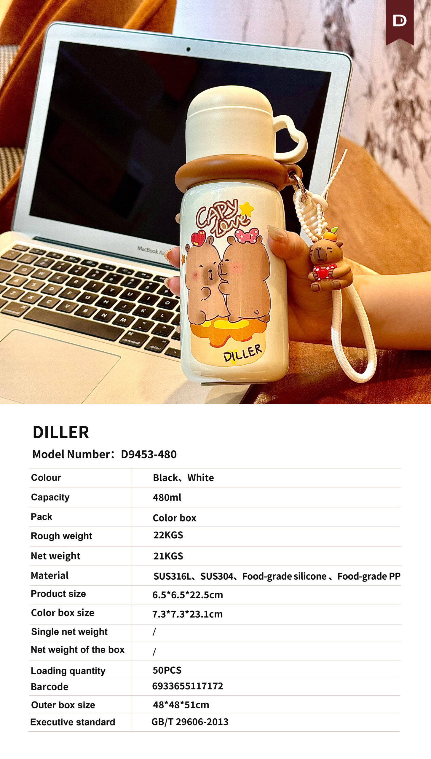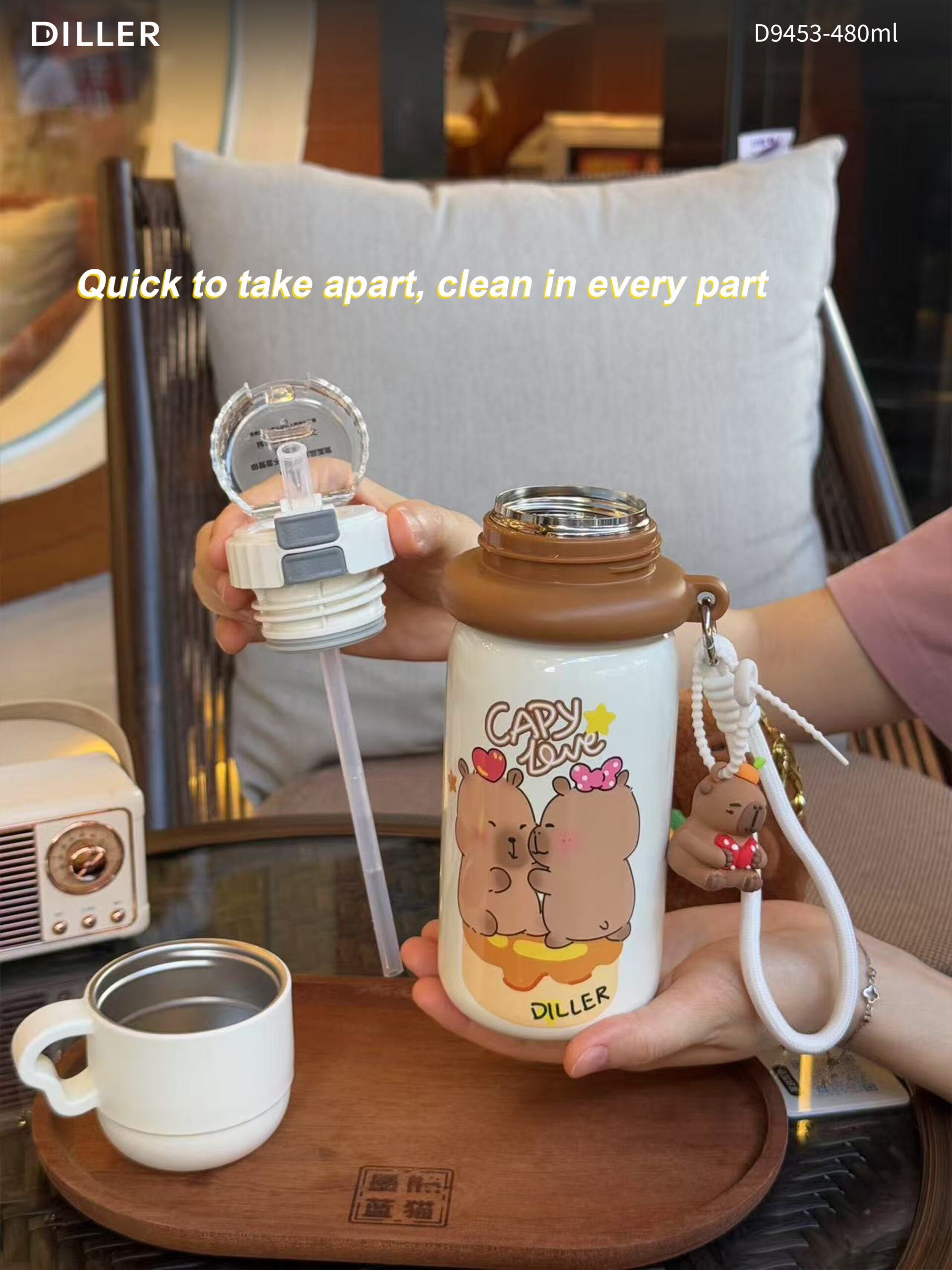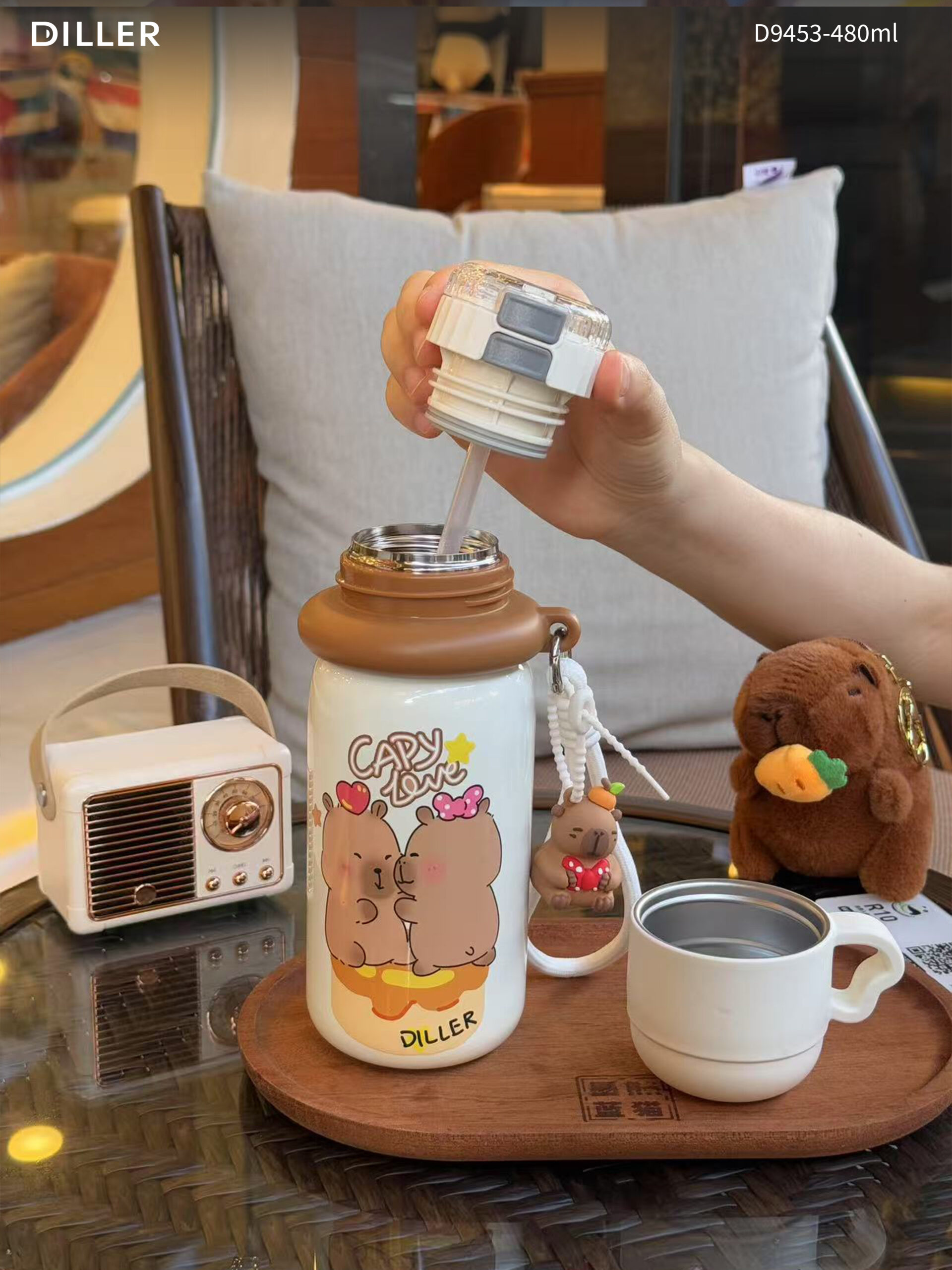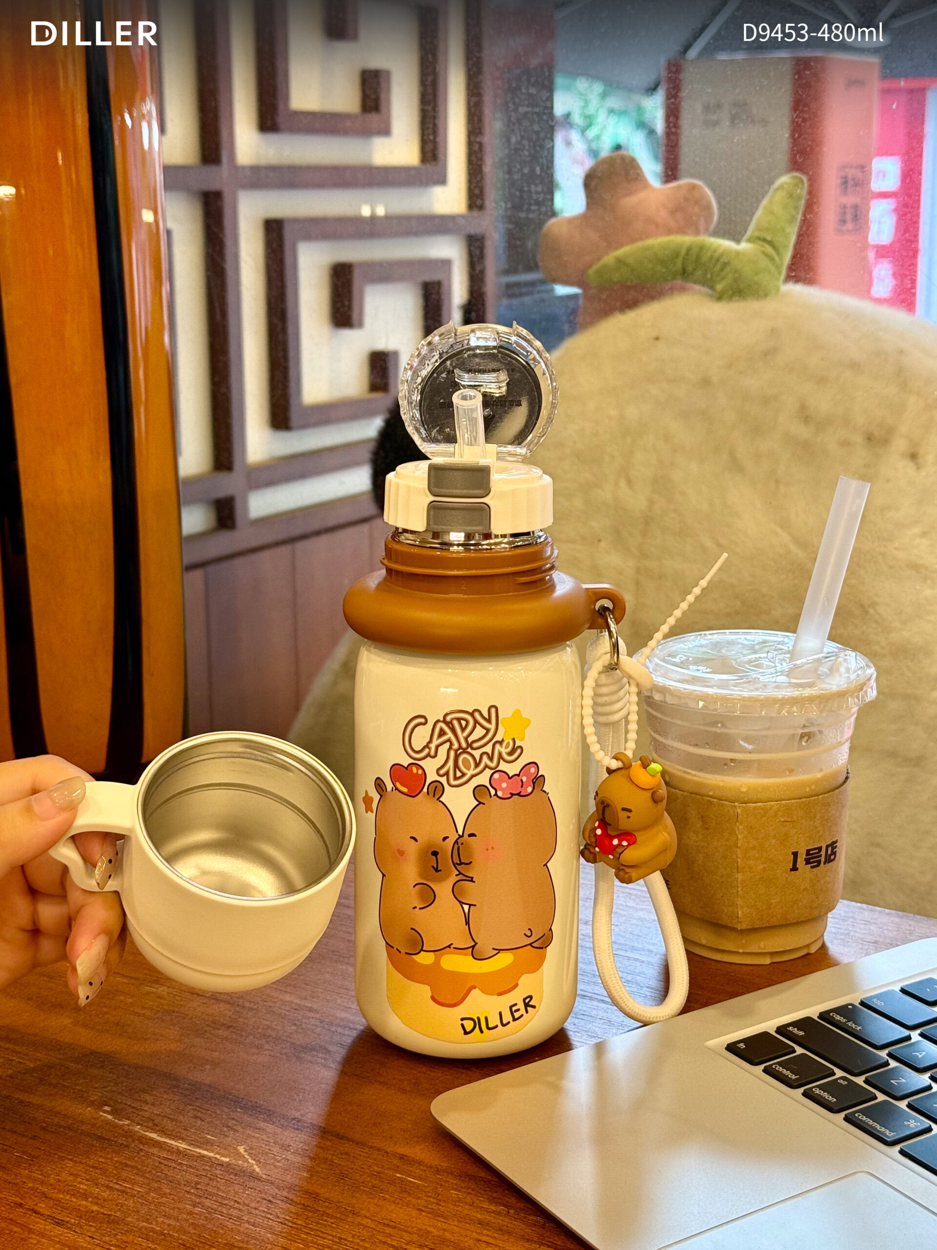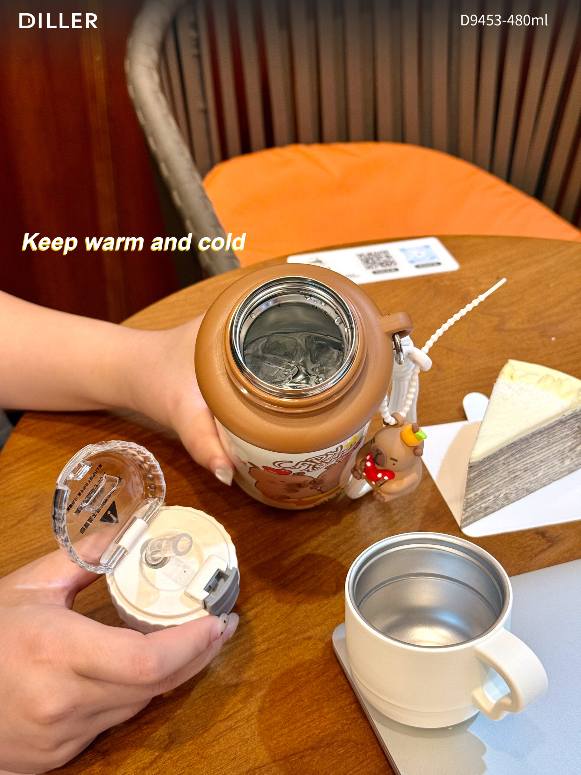 Home Capybara NEW2025下半年 Diller Capybara Thermo Flask Bottle Keep Hot Cold D9453-480ml