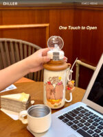 Diller Multifunction Straw Direct Drink Thermo Watet Bottle Flask Vacumn School Heat Resistant Cold (680ml) D9407 D9432