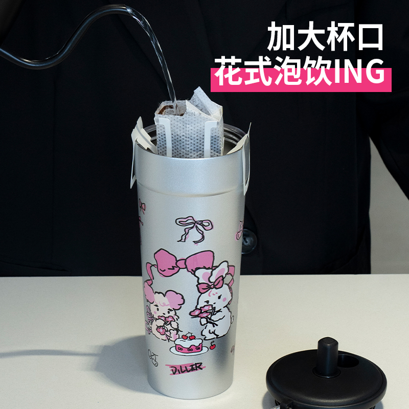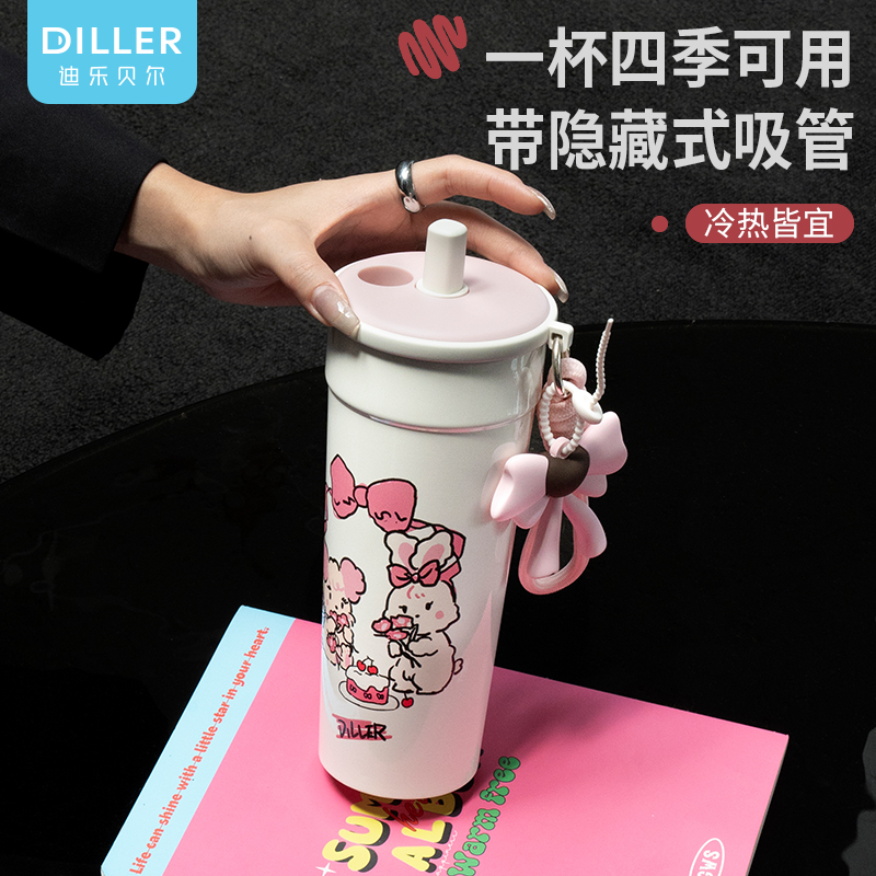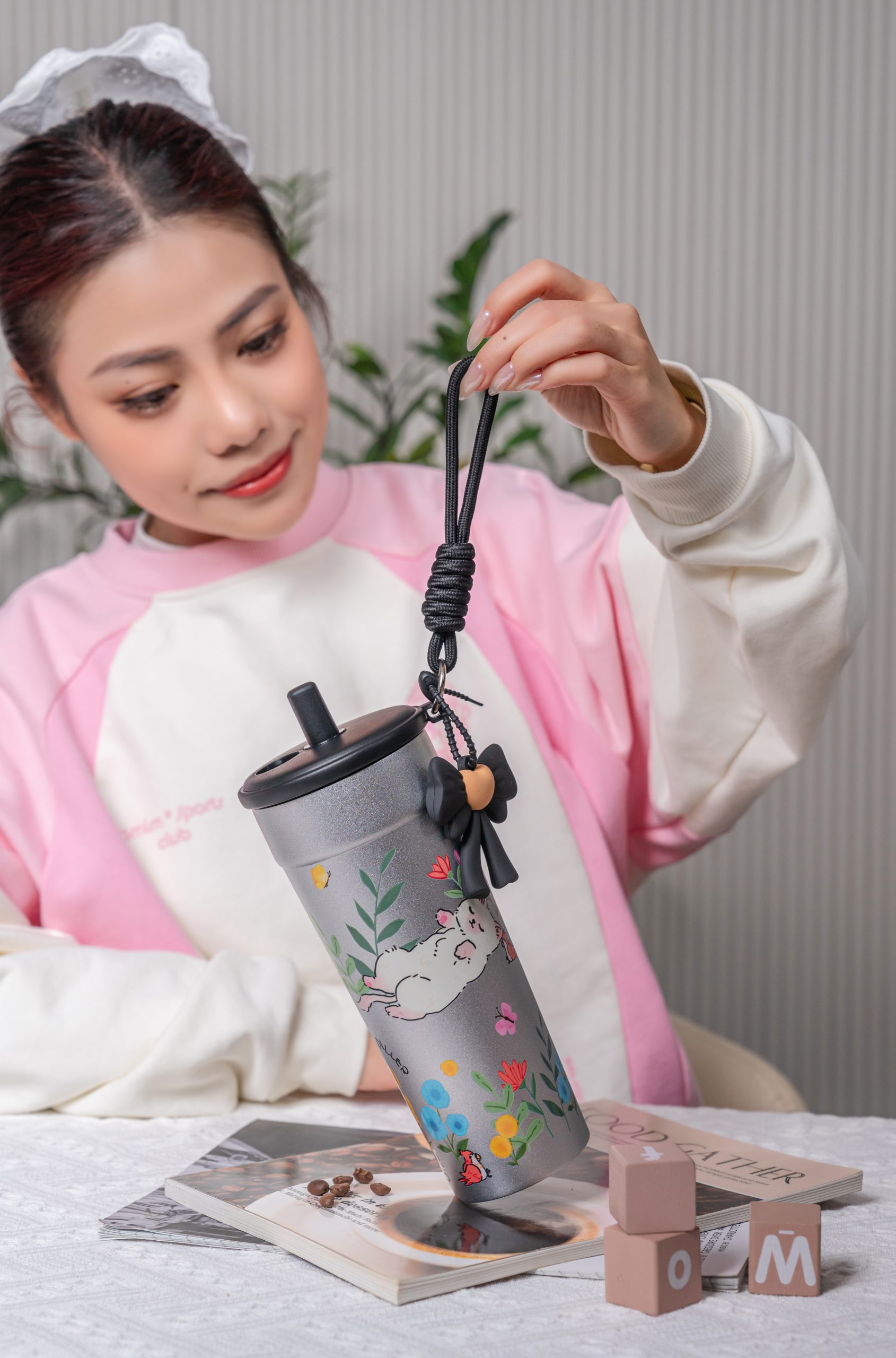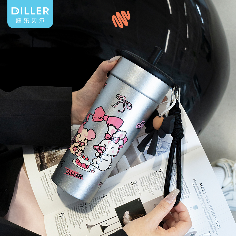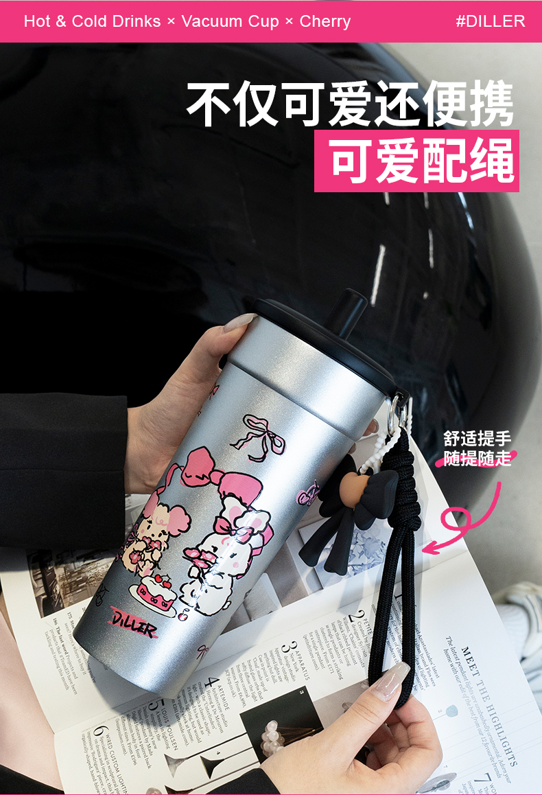 Home New Arrival Diller Comel SUS316 Straw with cover Thermo Bottle Travel Ribbon Chain D9233 (700ml)