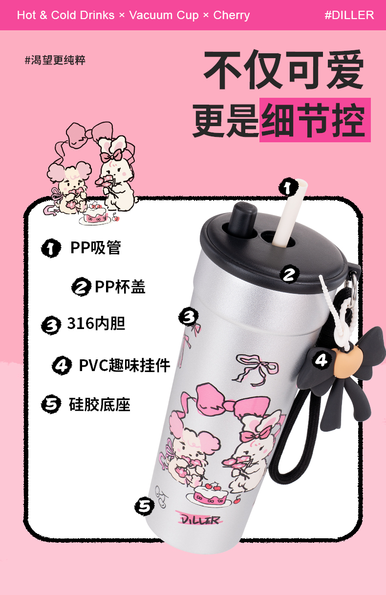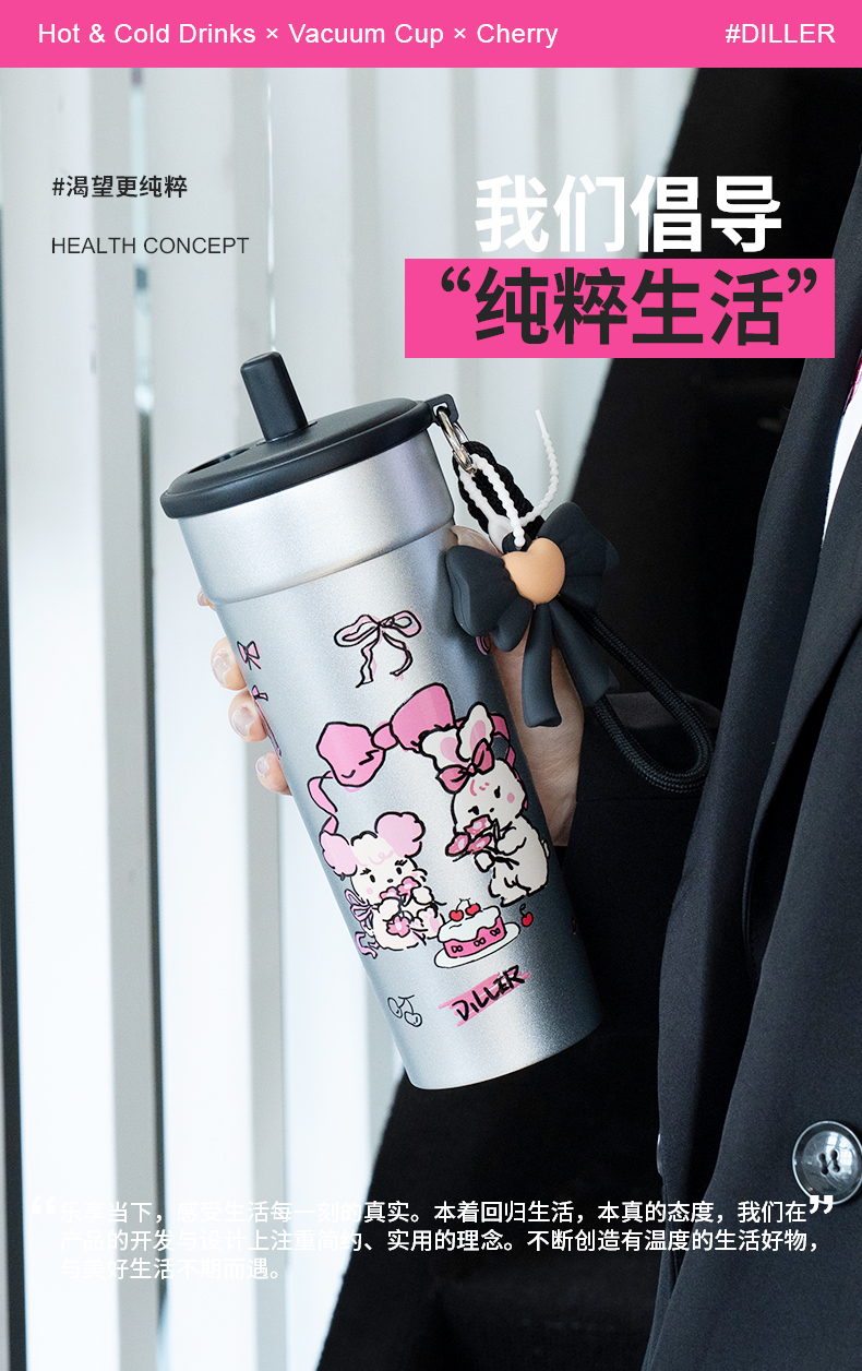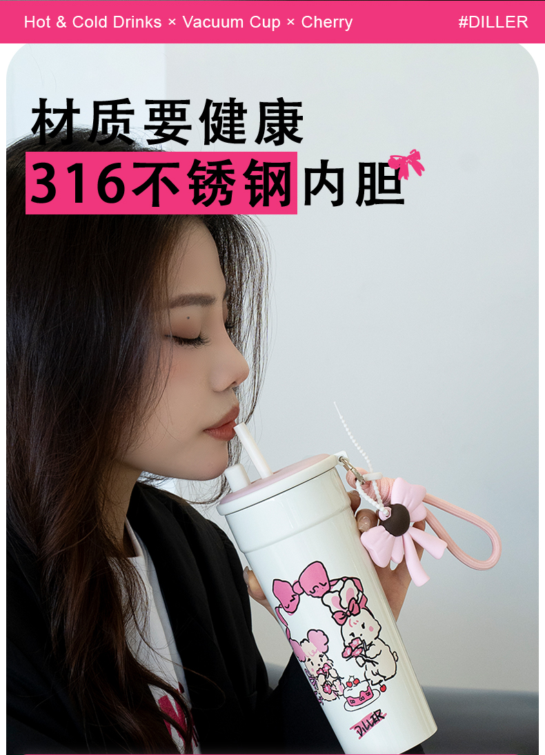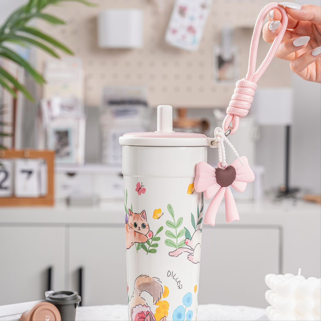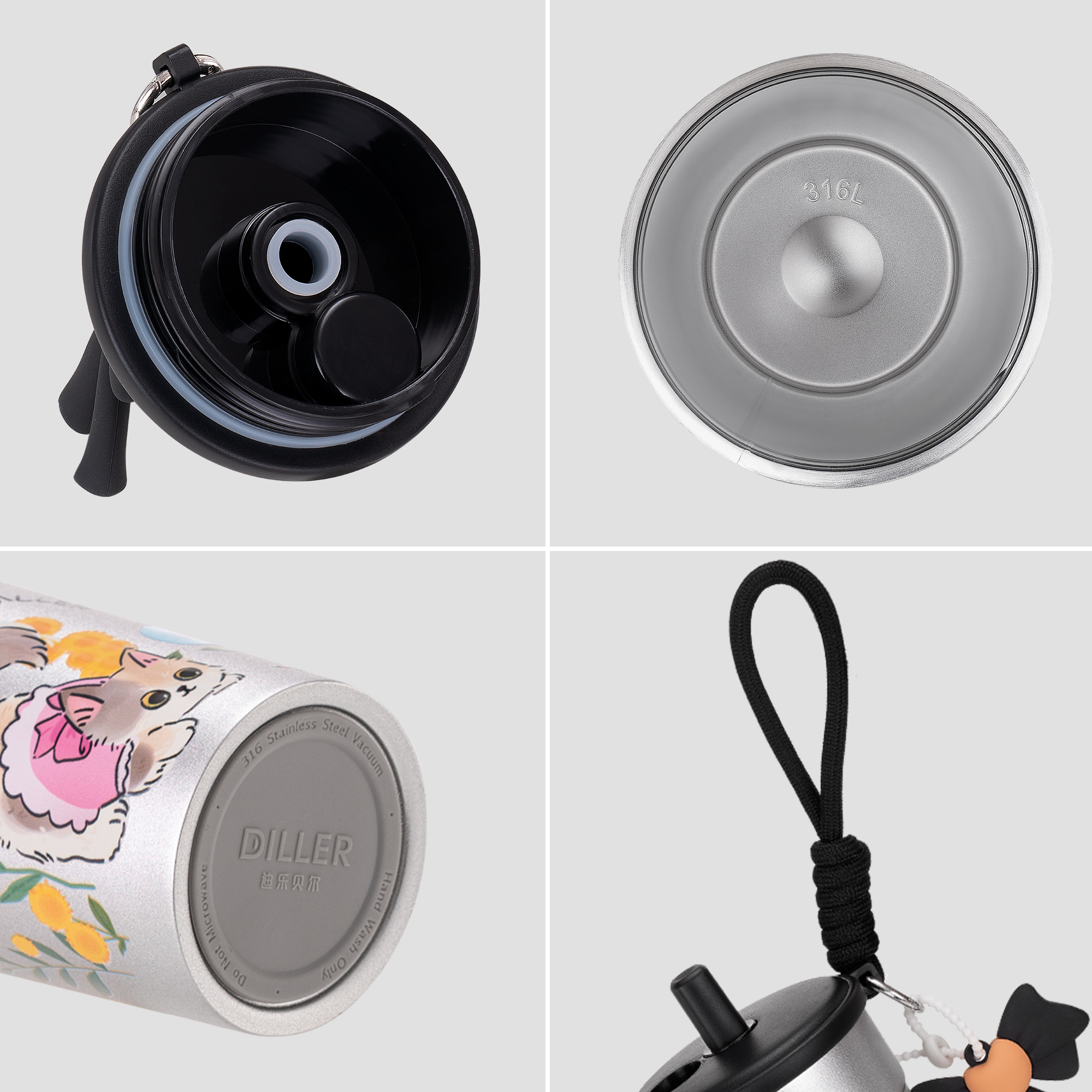 Diller Comel SUS316 Straw with cover Thermo Bottle Travel Ribbon Chain D9233 (700ml)