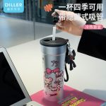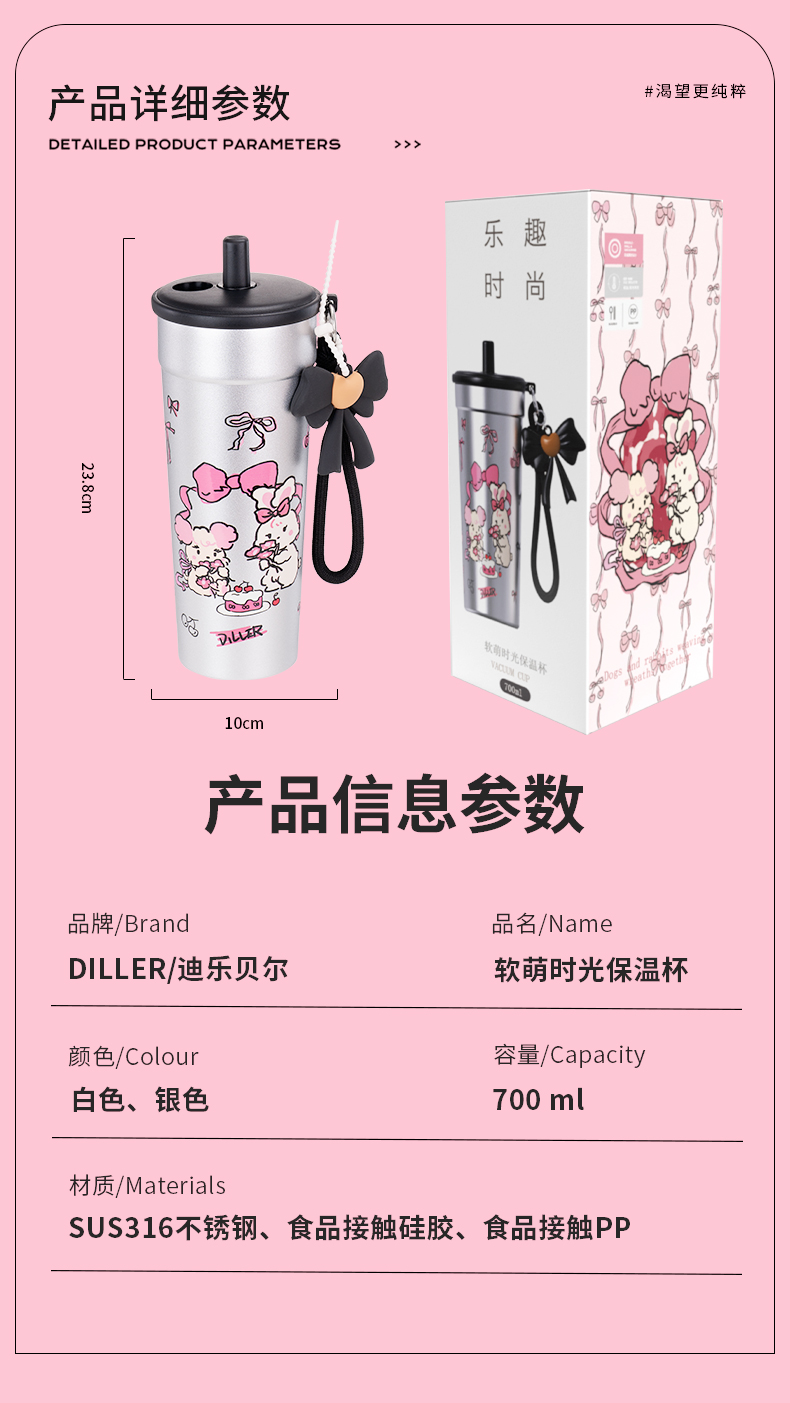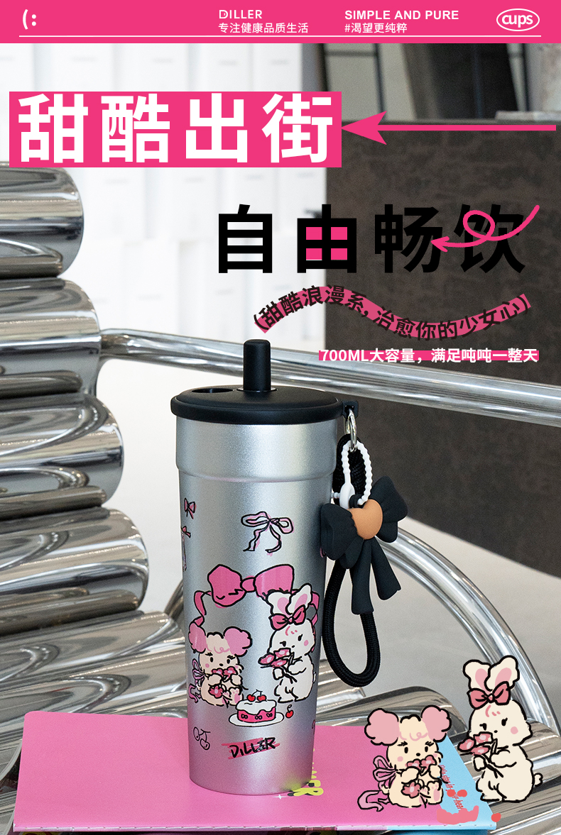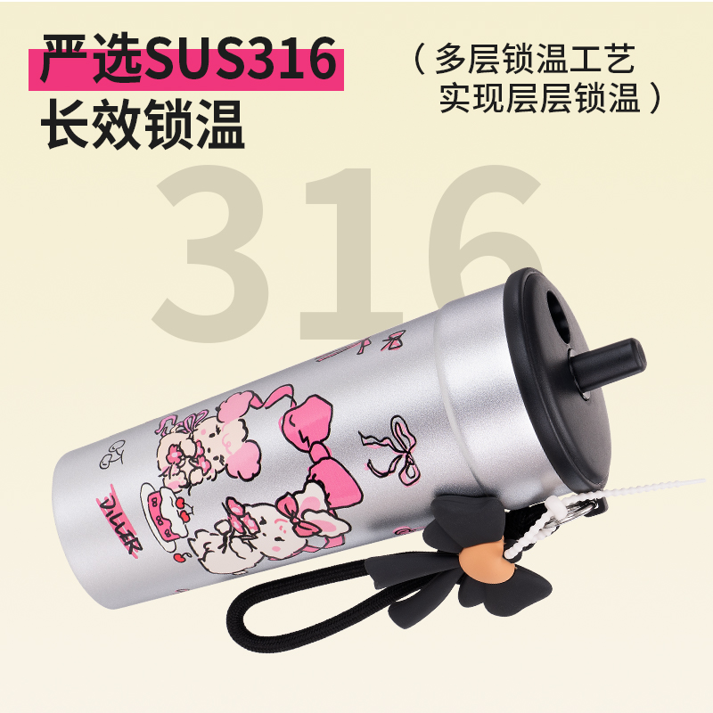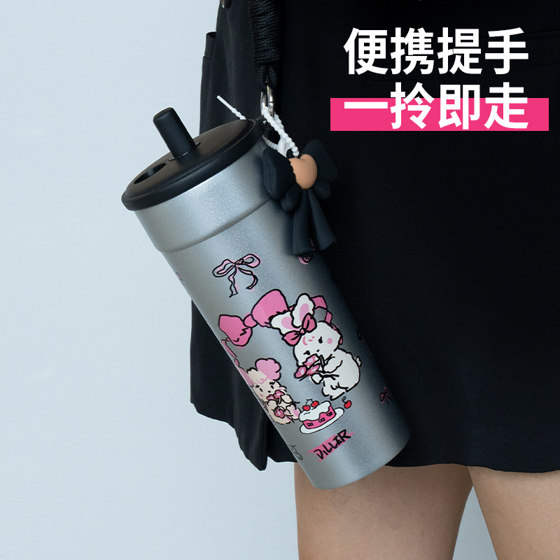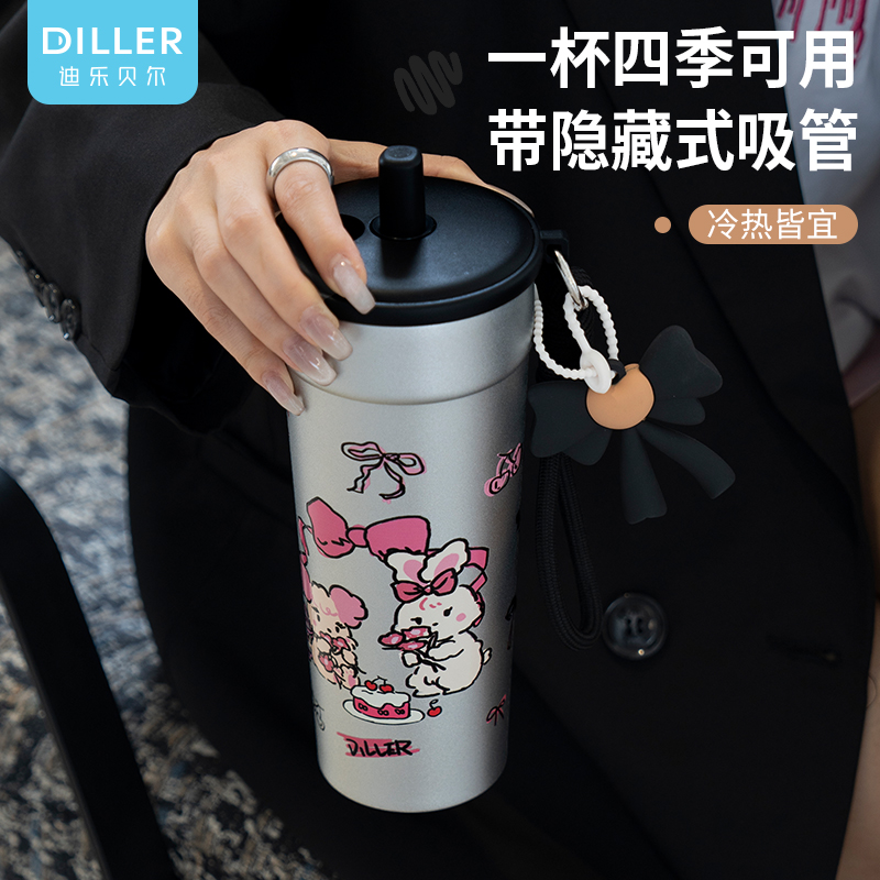 Diller Comel SUS316 Straw with cover Thermo Bottle Travel Ribbon Chain D9233 (700ml)