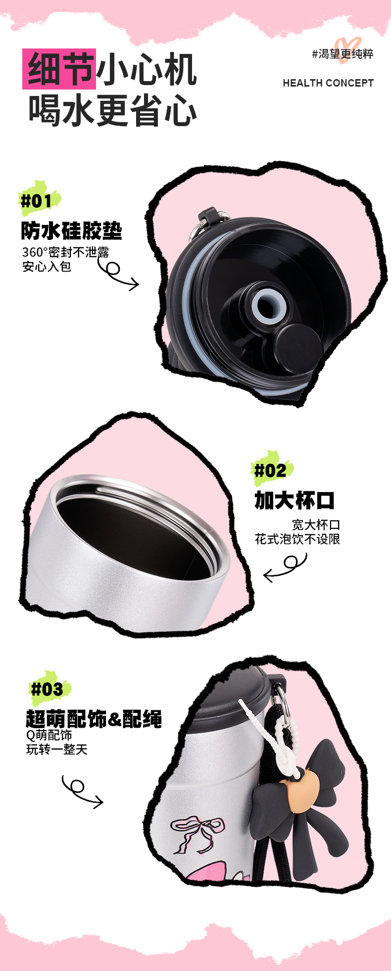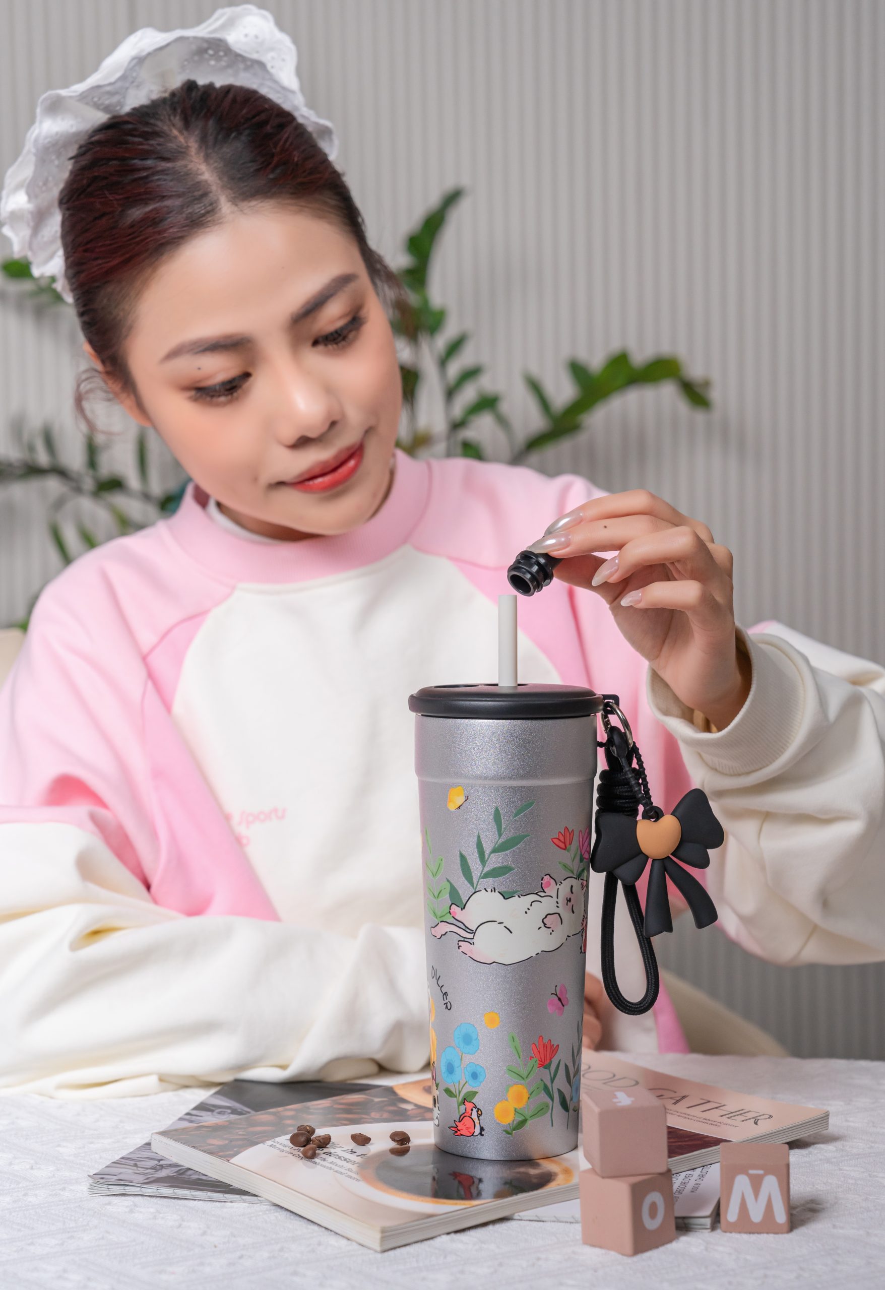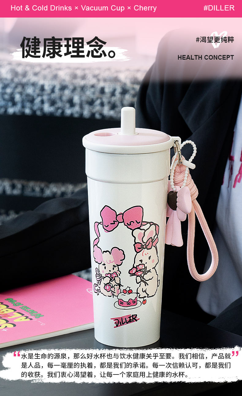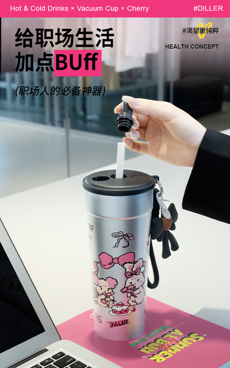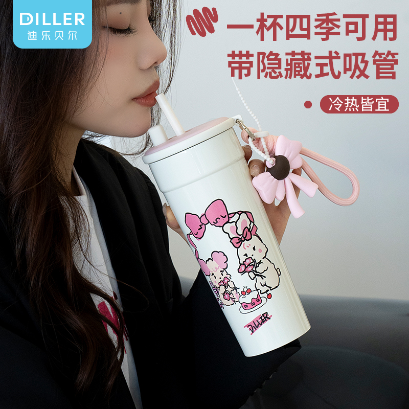 Diller Comel SUS316 Straw with cover Thermo Bottle Travel Ribbon Chain D9233 (700ml)
