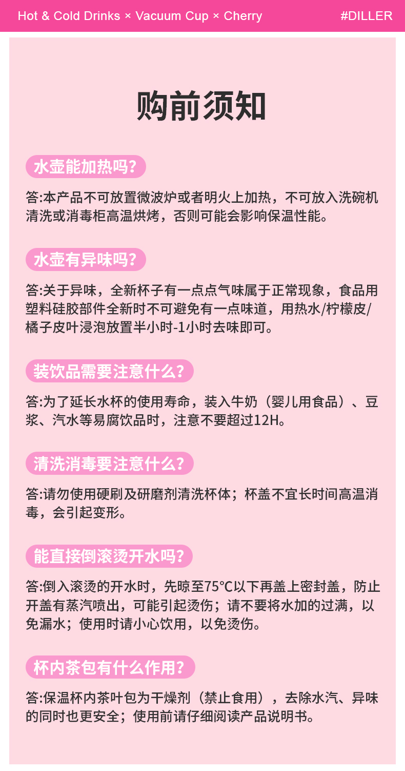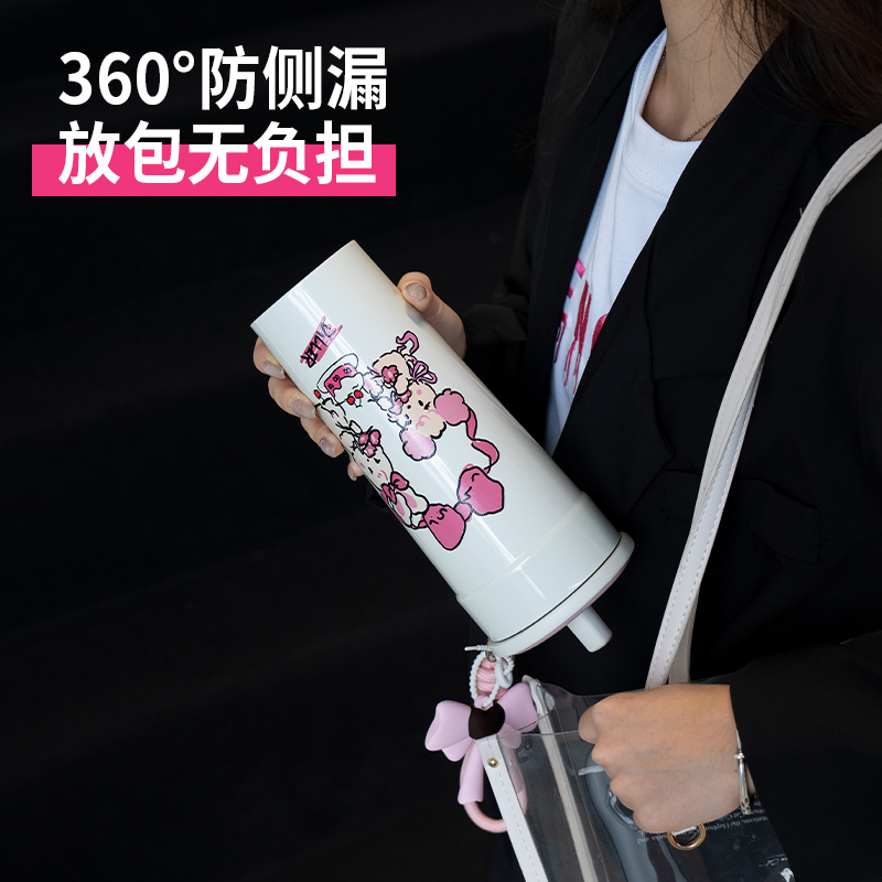 Diller Puppy CherryBear SUS304 Thermo Direct Drinking Bottle Vacumn Flask Easy Handle Travel Office D9226 / 9227 (500ml)