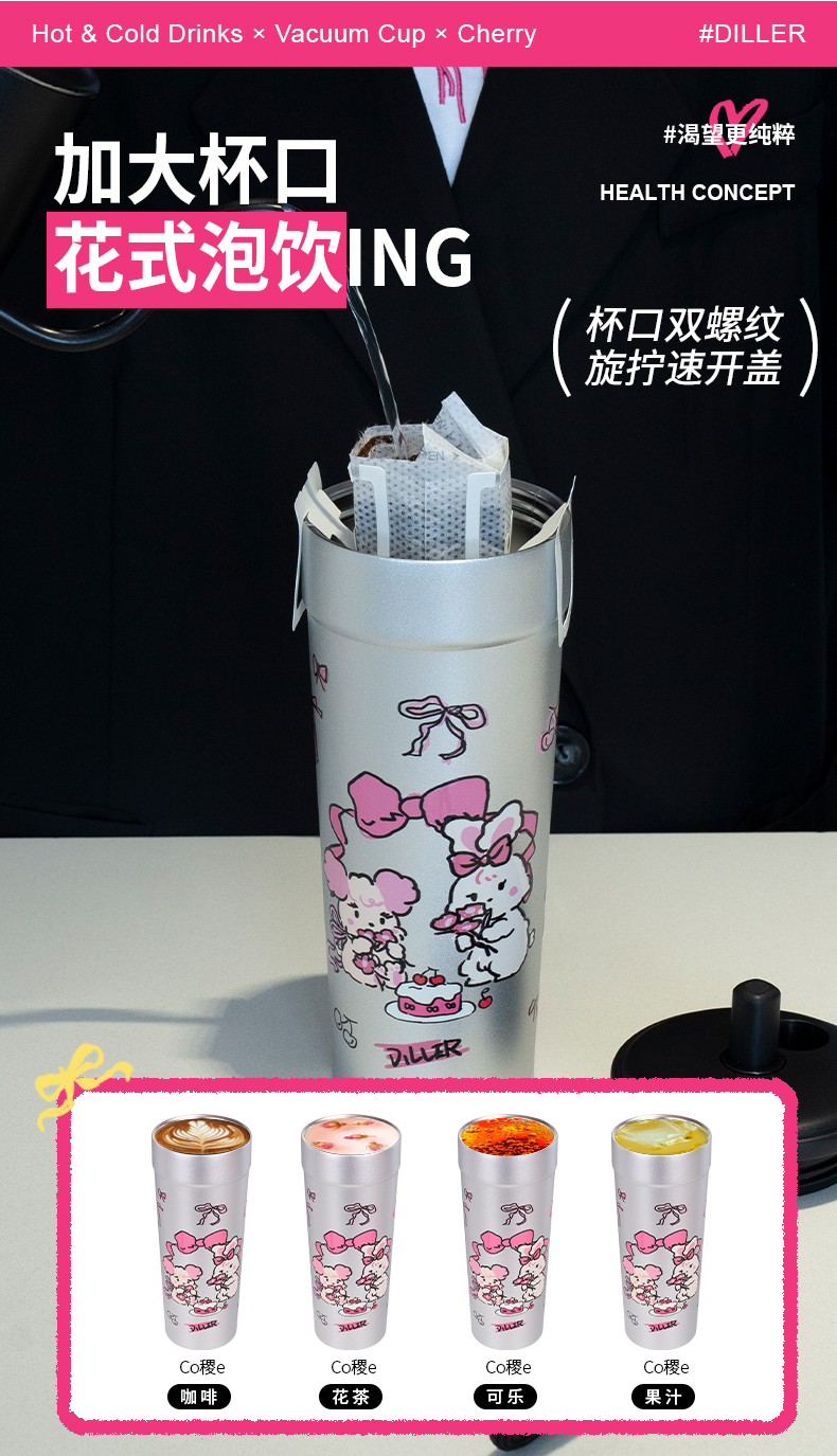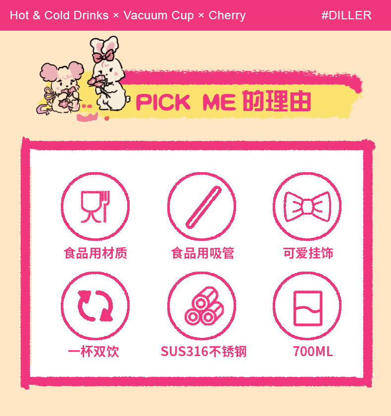 Diller Multifunction Panda/ CherryBear SUS316 Stainless Steel Thermo Vacumn Flask Bottle D9252/ 9238 (600ml)