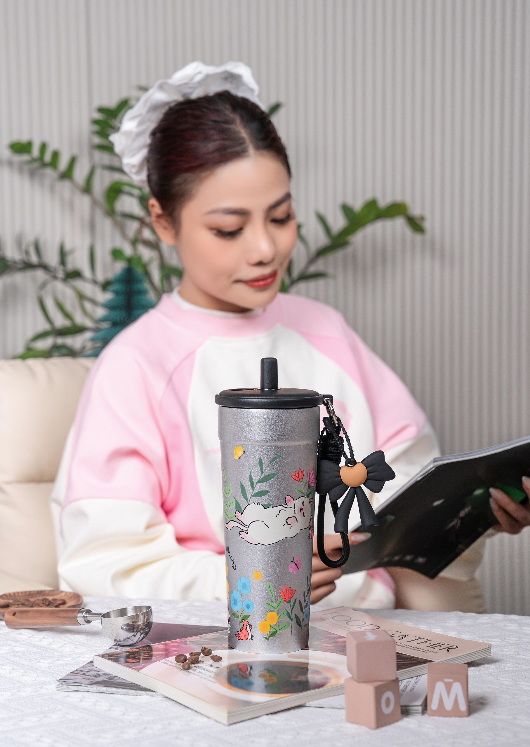 SKU: SKU-D9233-700ML Categories: Adult Thermo Water, Coffee cup, Kitty Meow 2025 NEW, New Arrival, Straw Bottle