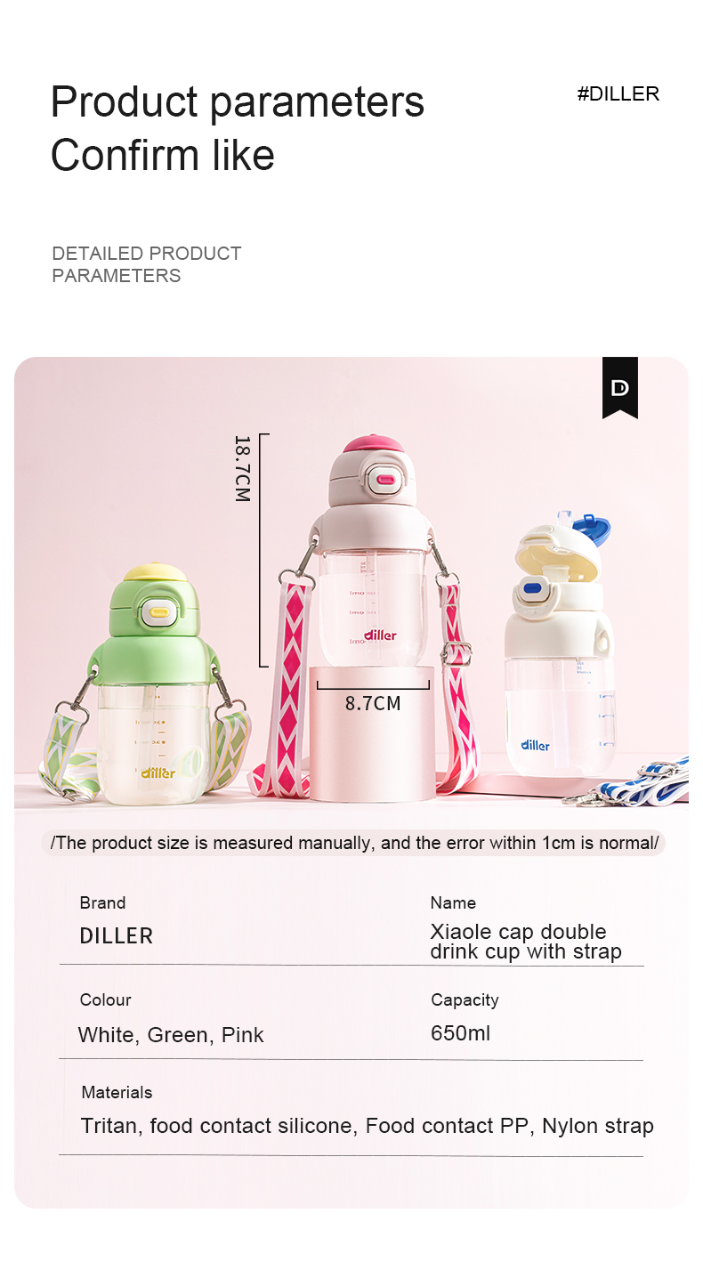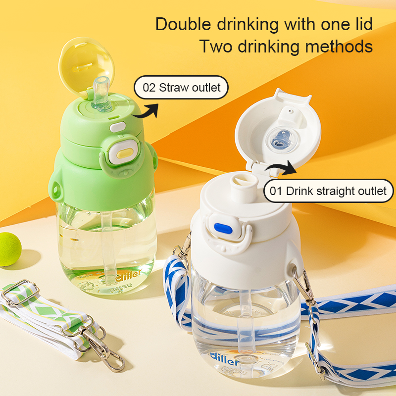 Home Baby/kids Tritan Water Bottle Diller Flat-Cap Multi-function Direct/Straw Water Bottle (D2306-650ml)