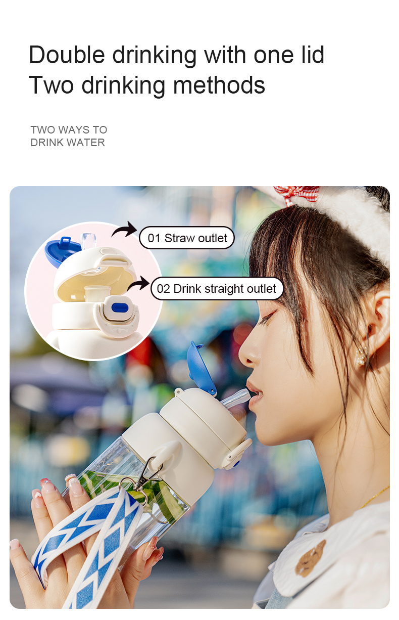 3. This water bottle can be drunk directly or through a straw.