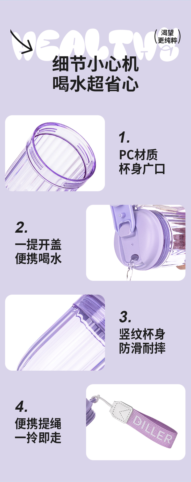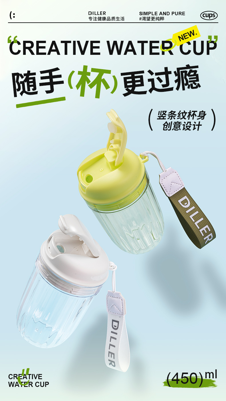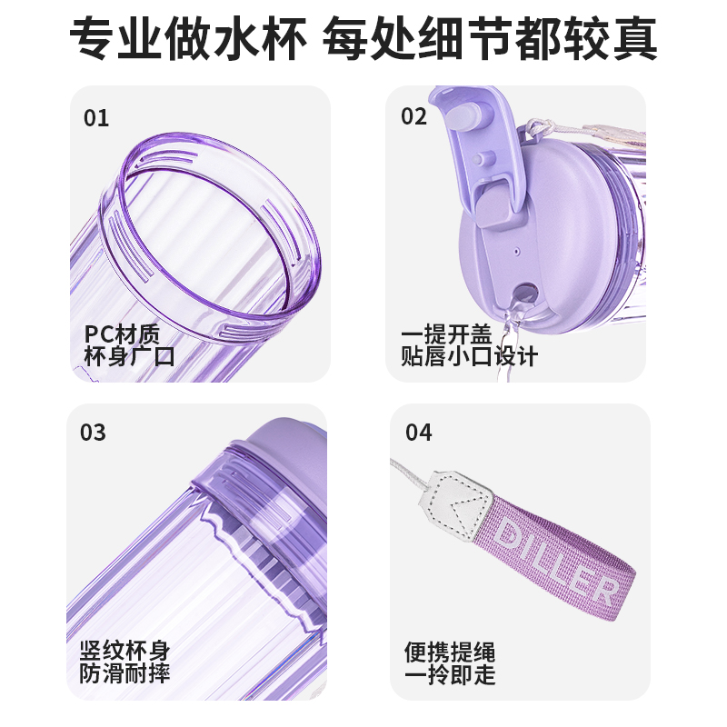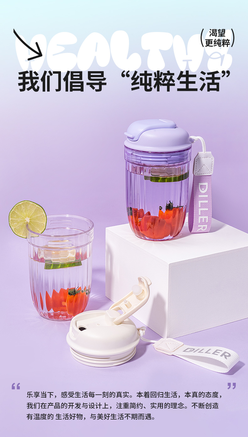 Diller Food Grade PC Direct Drinking Coffee Cup Office Camping Travel