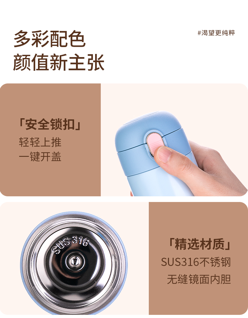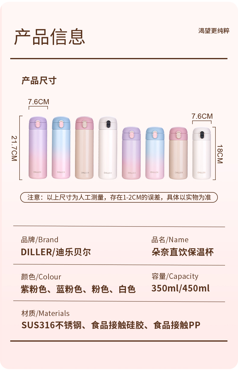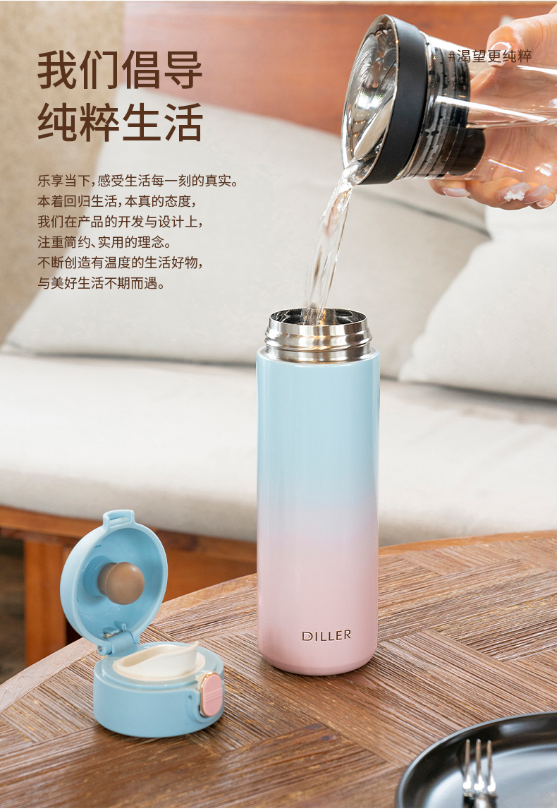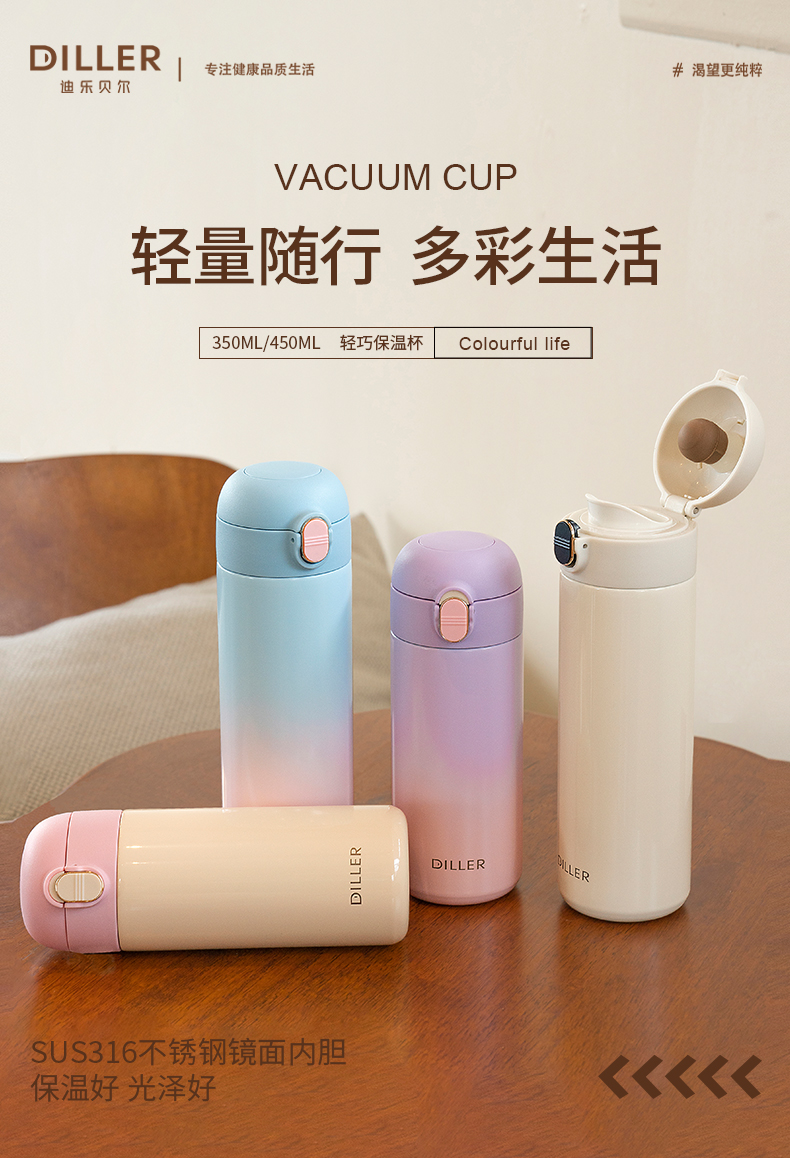 Home Adult Water Bottle Diller Macaroon SUS316 Thermos Vacuum Water Bottle Juice Direct MLH9192 (350ml/450ml)