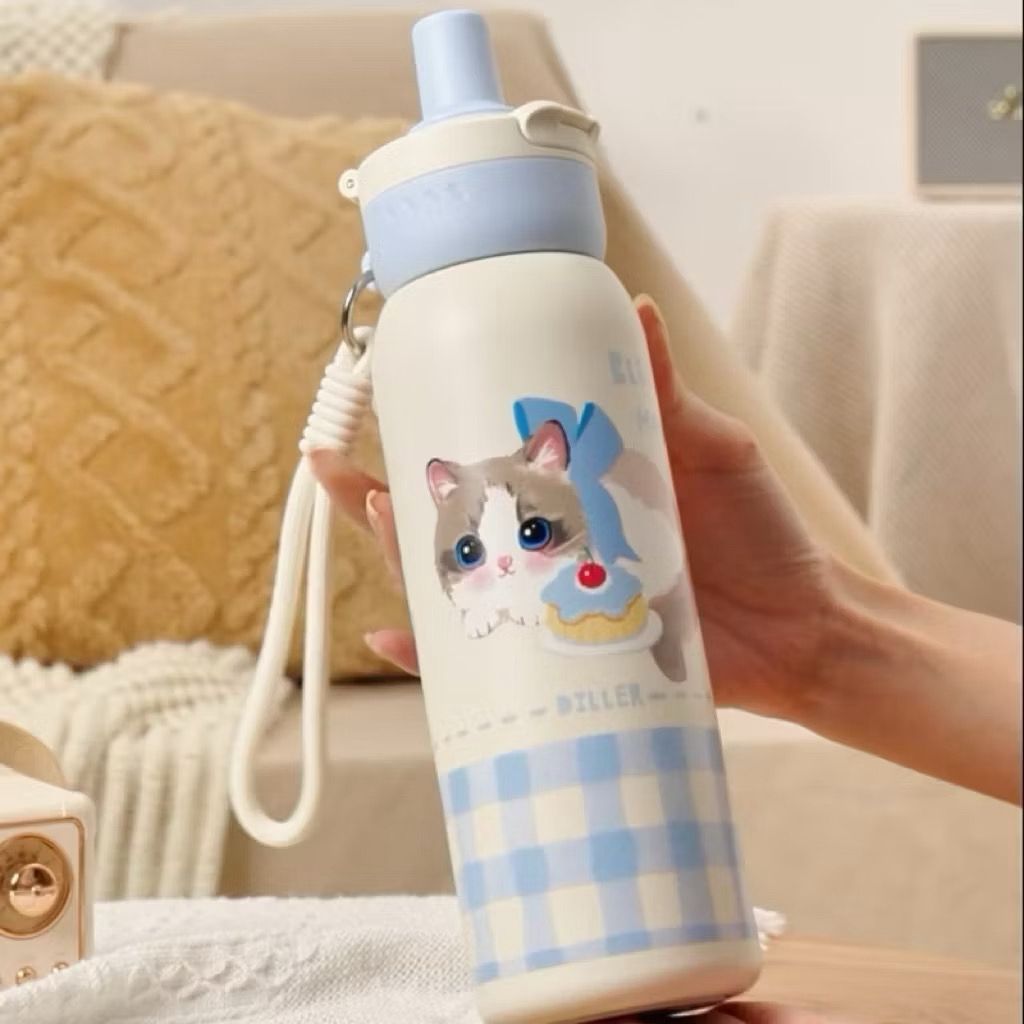 Diller Multifunction Straw Direct Drink Thermo Watet Bottle Flask Vacumn School Heat Resistant Cold