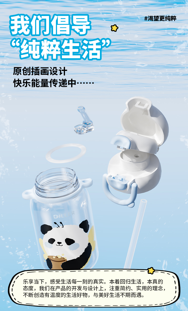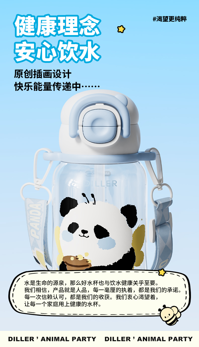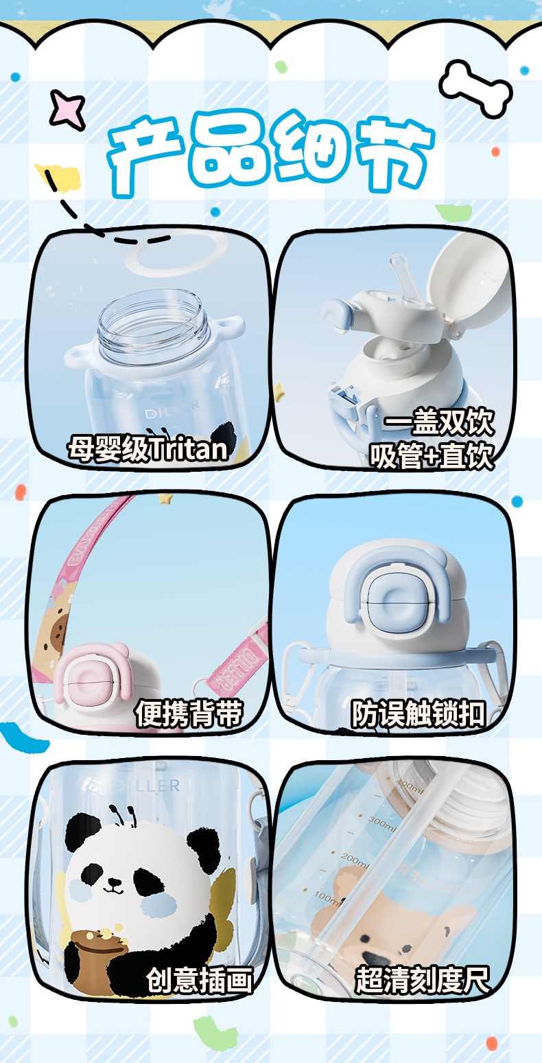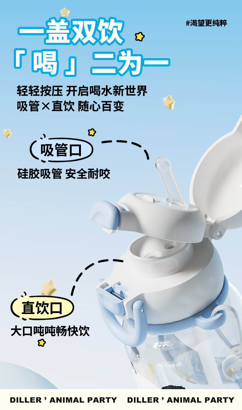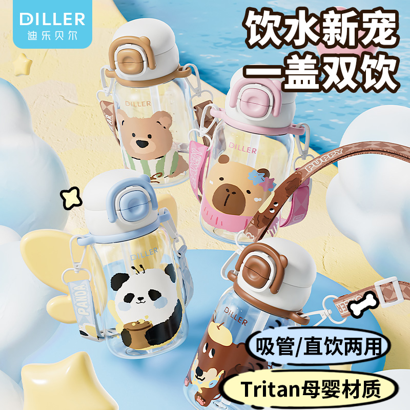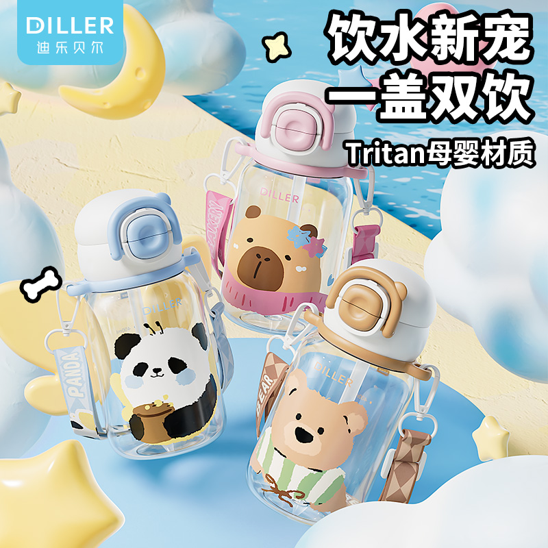 Diller Multifunction Tritan Water Bottle Straw Direct with Strap BPA free