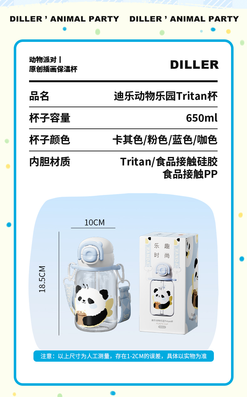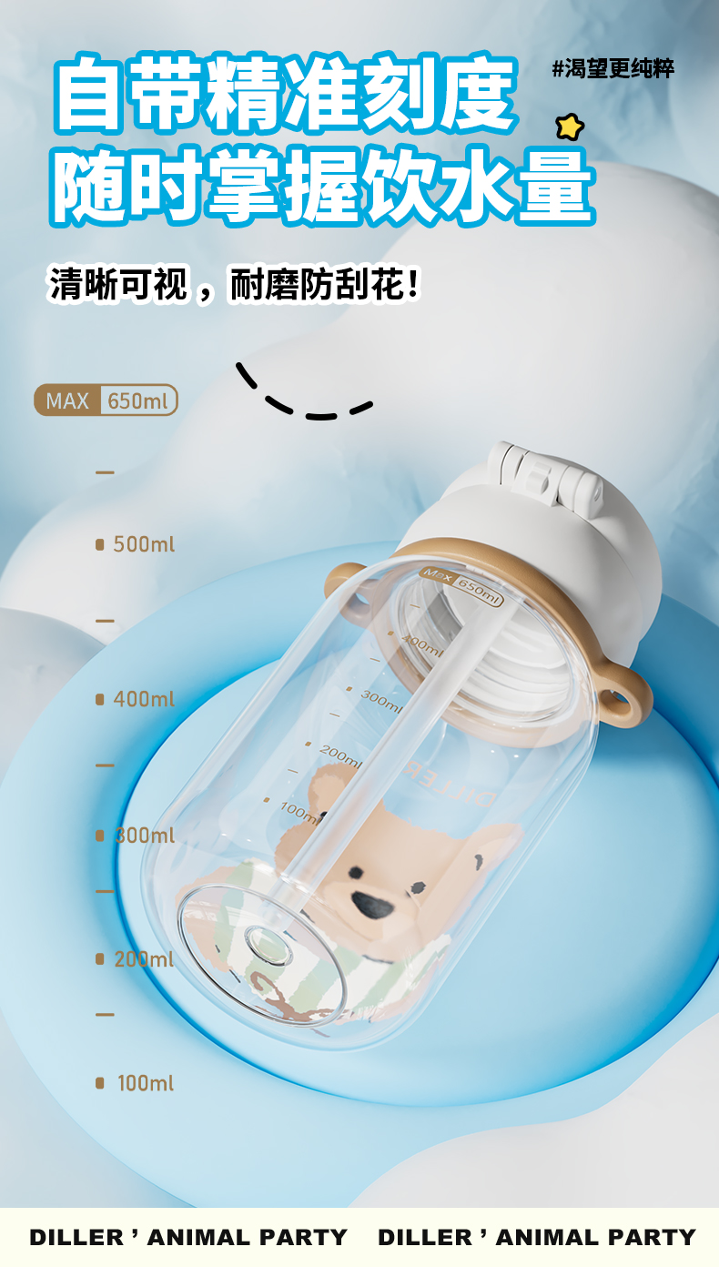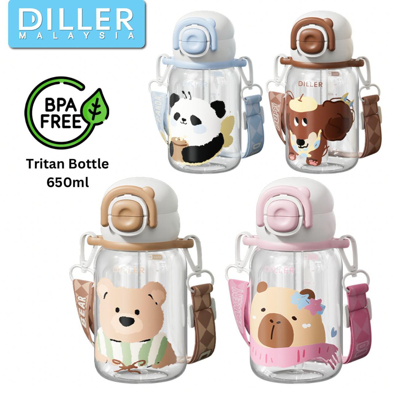 Diller Multifunction Tritan Water Bottle Straw Direct with Strap BPA free (D2582-650ml)