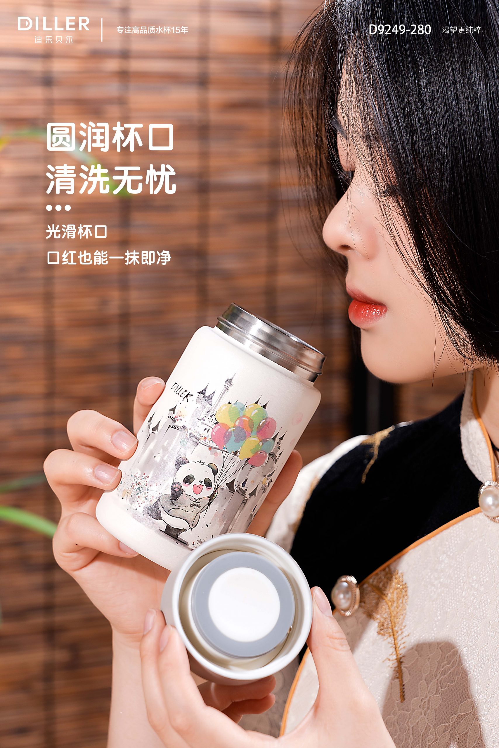 Diller Panda SUS316 Vacumn Thermo Bottle Flask Direct Drink One Click Open D9248/D9251 (350ml/480ml)