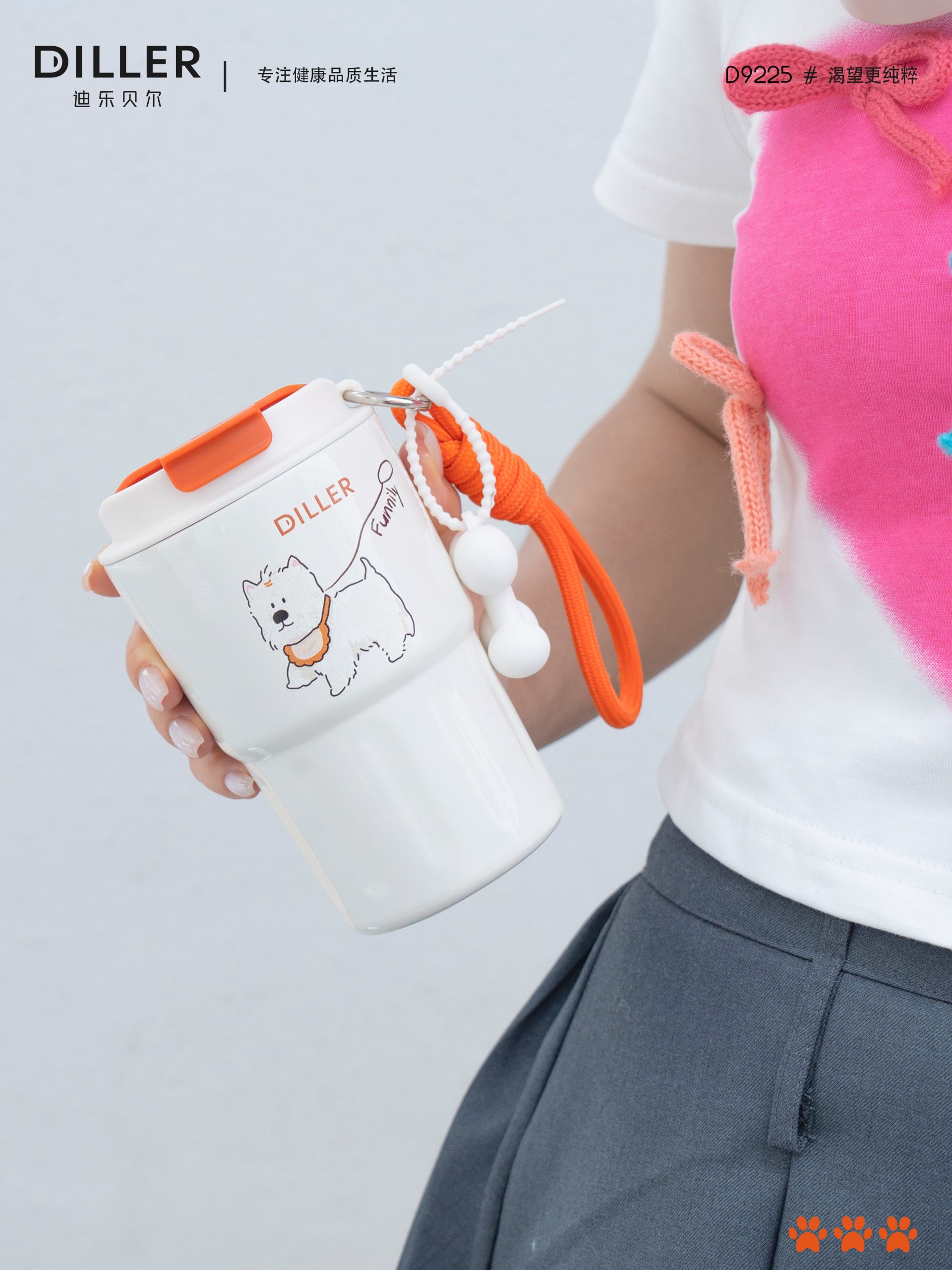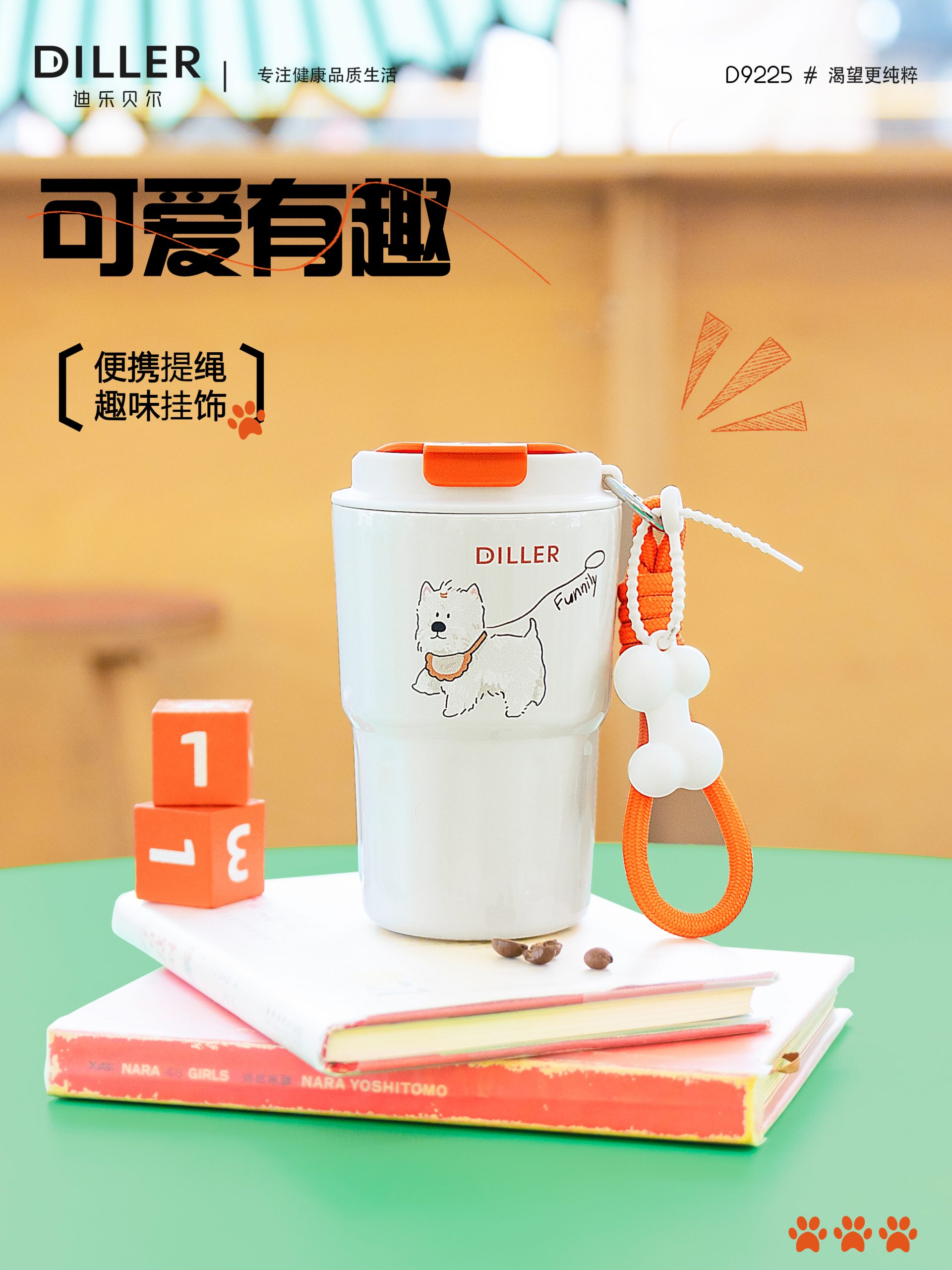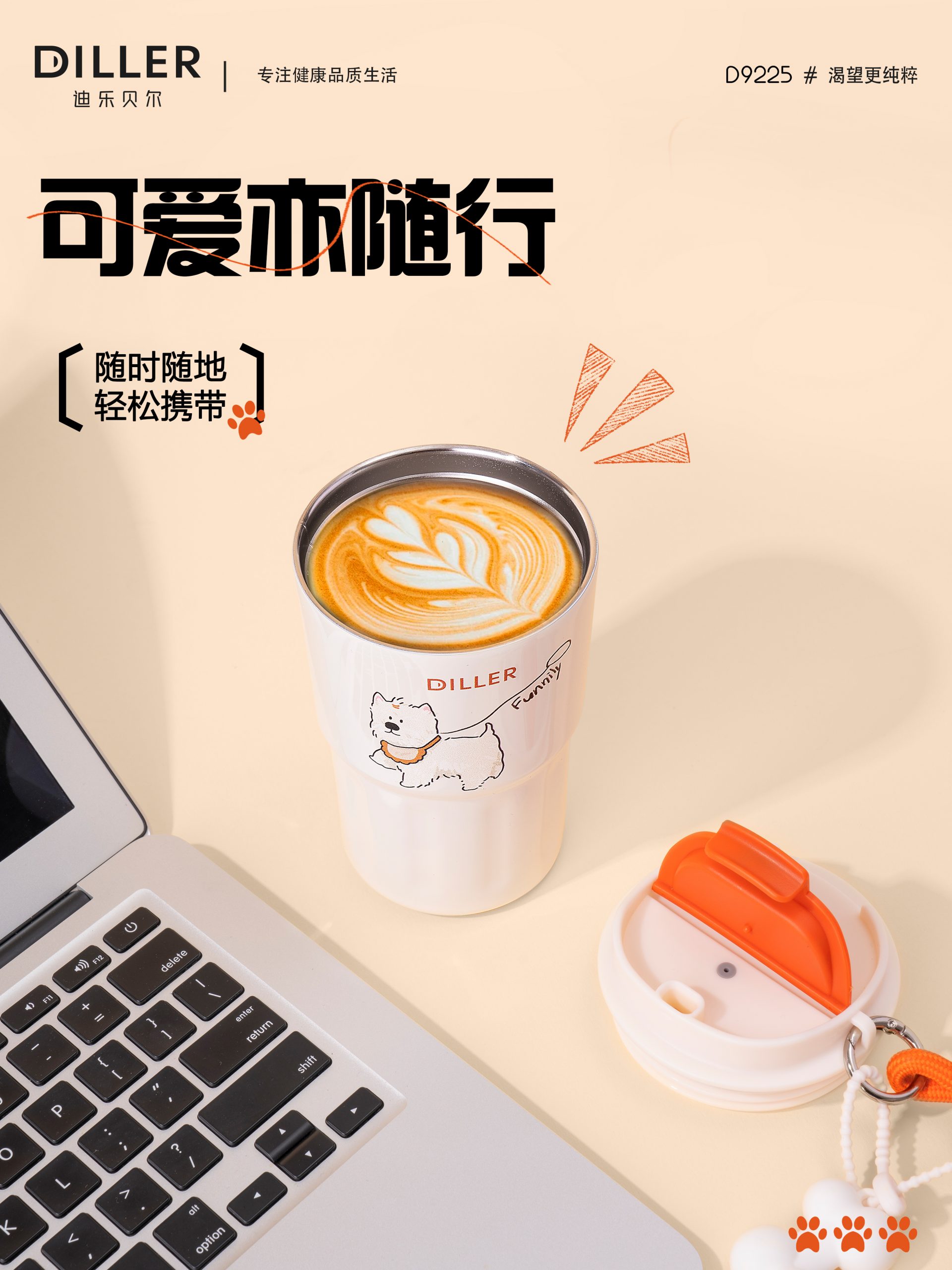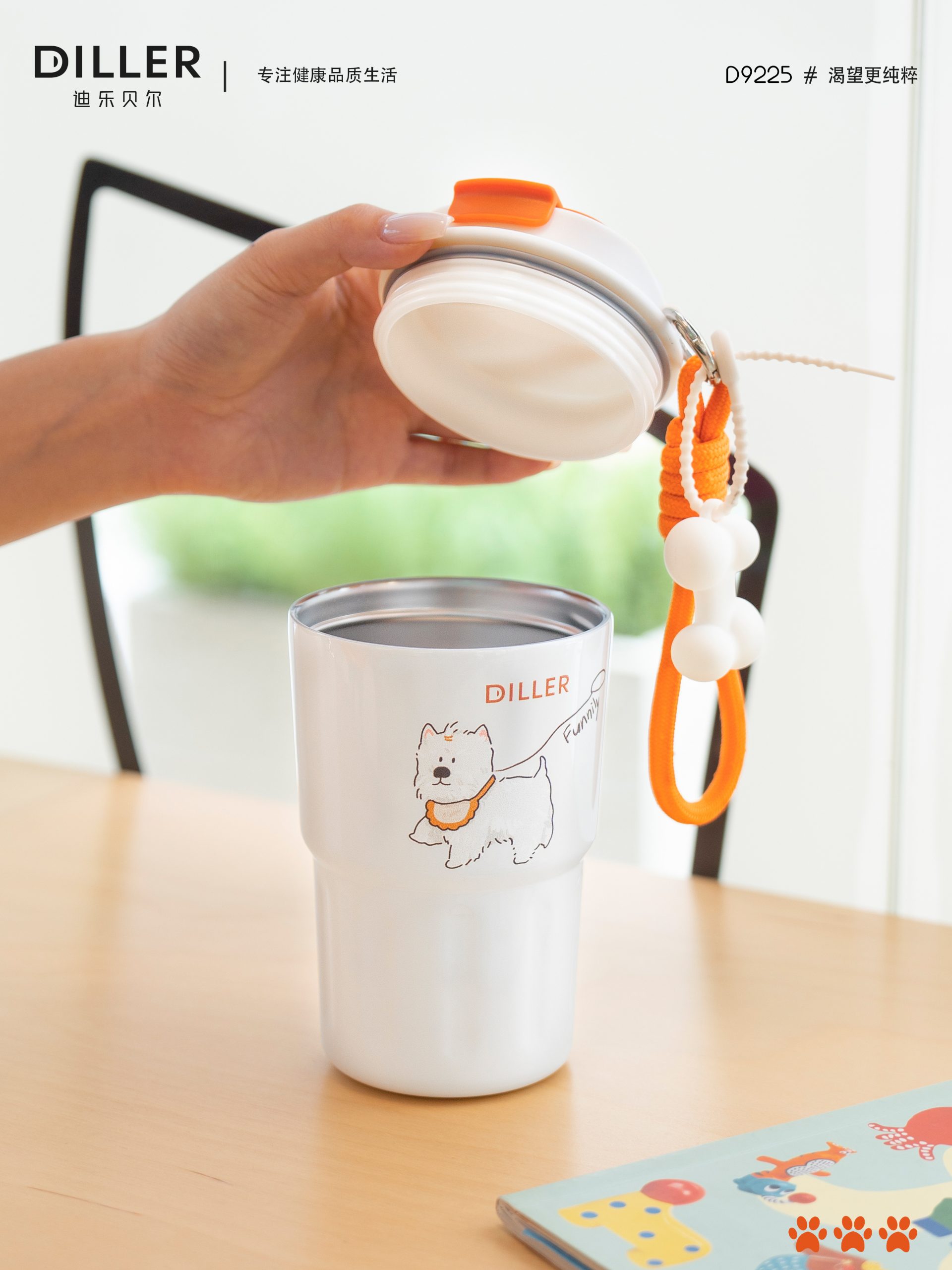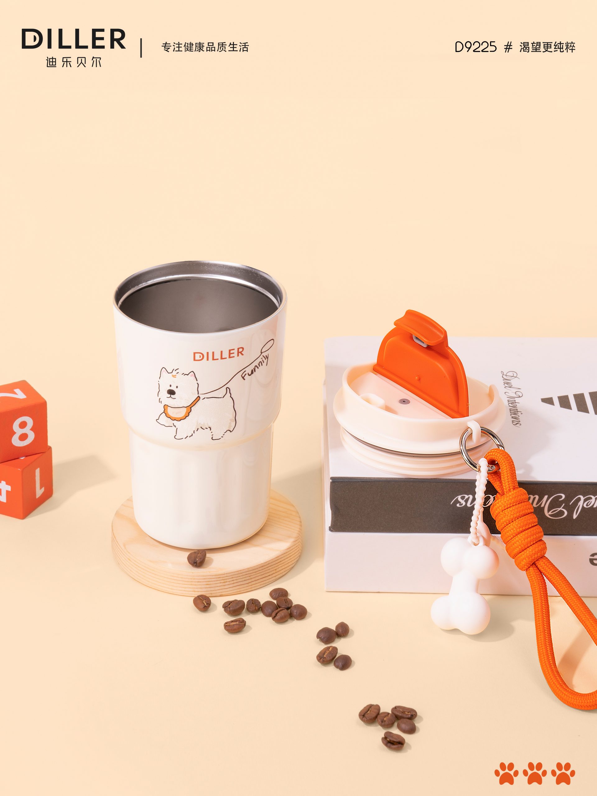 Diller Puppy Bone “White Terrier” SUS304 Stainless Steel Thermos Tea Coffee Mug Cup