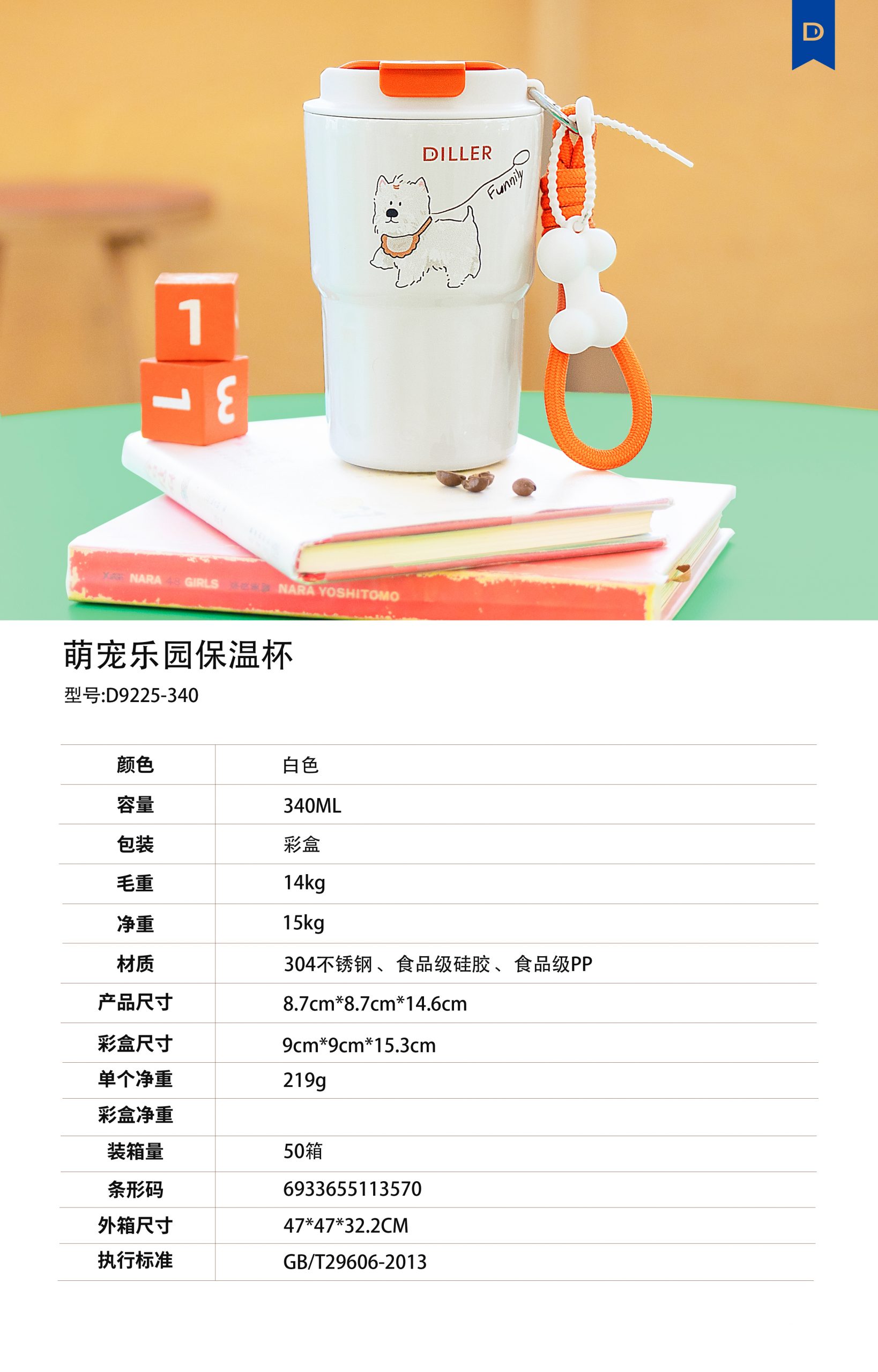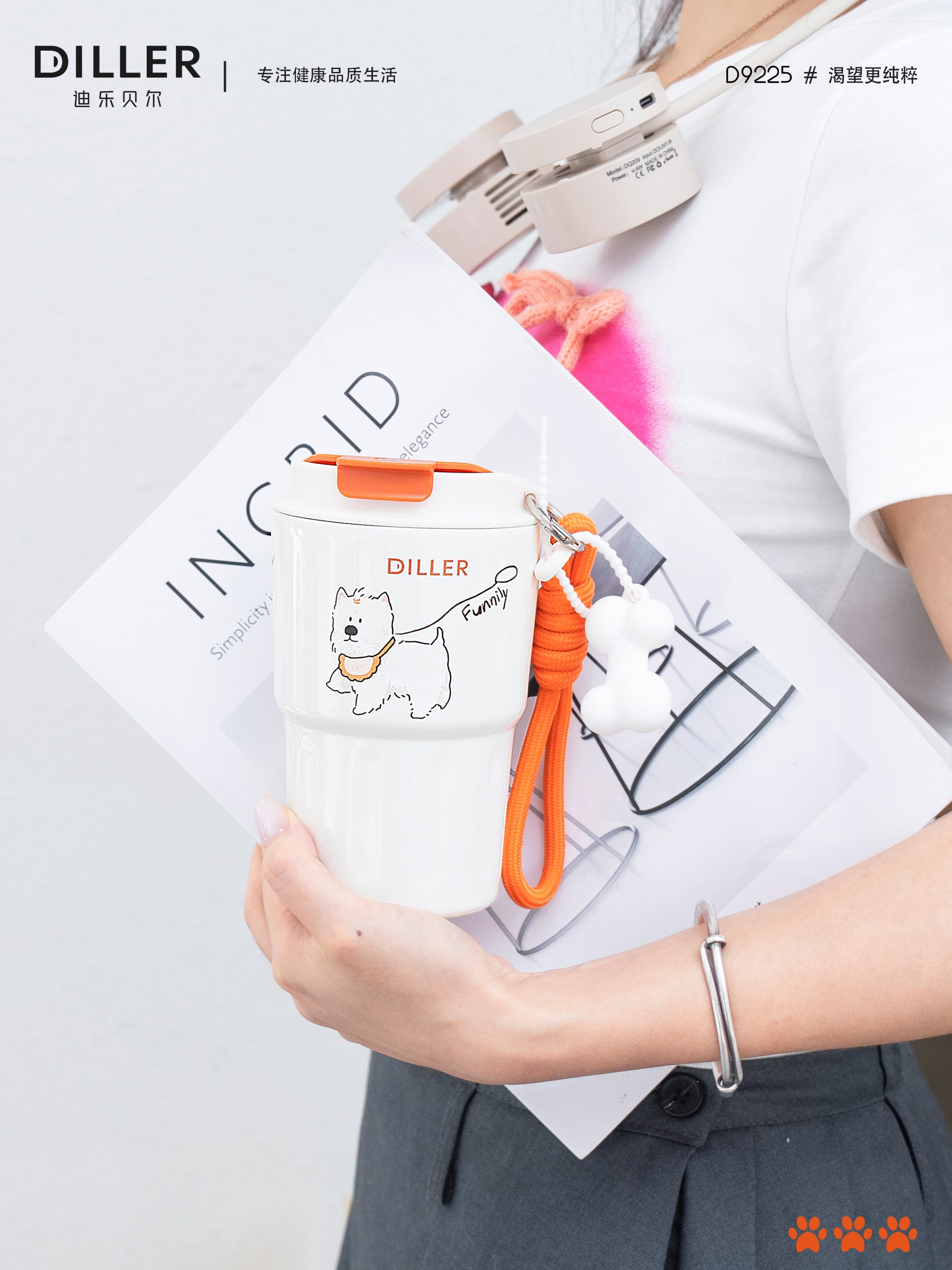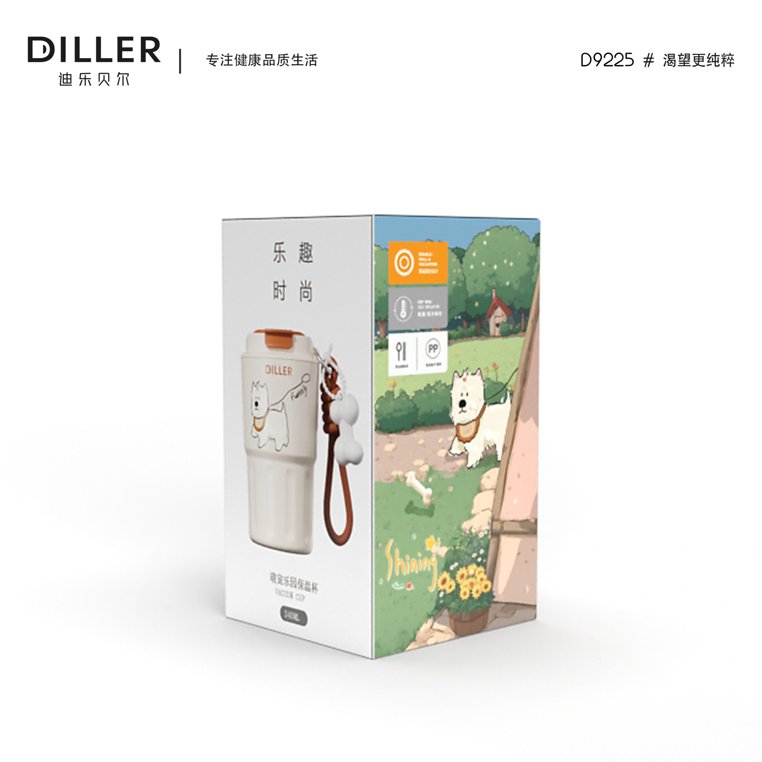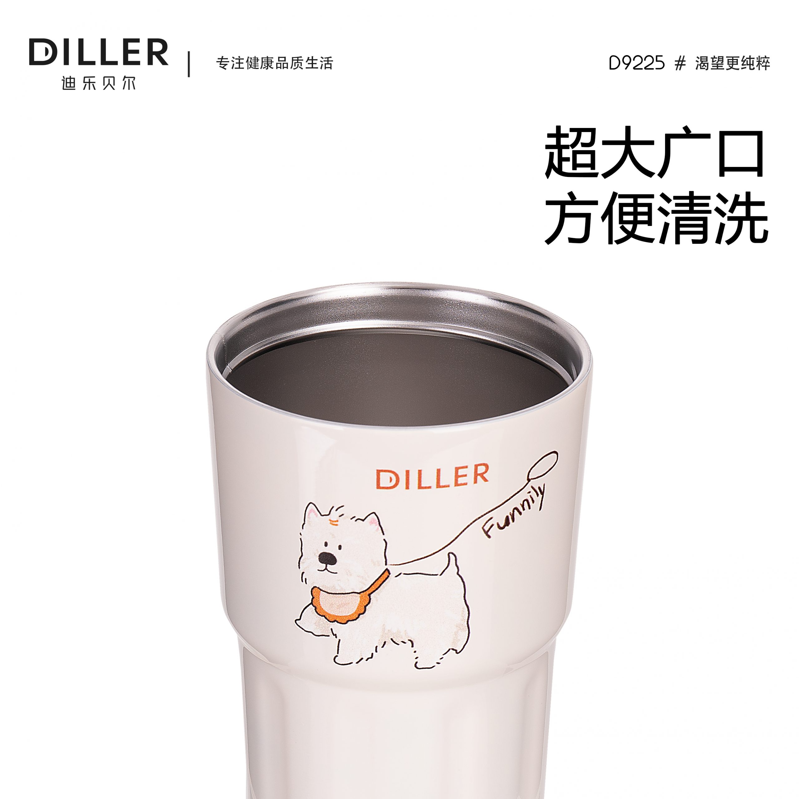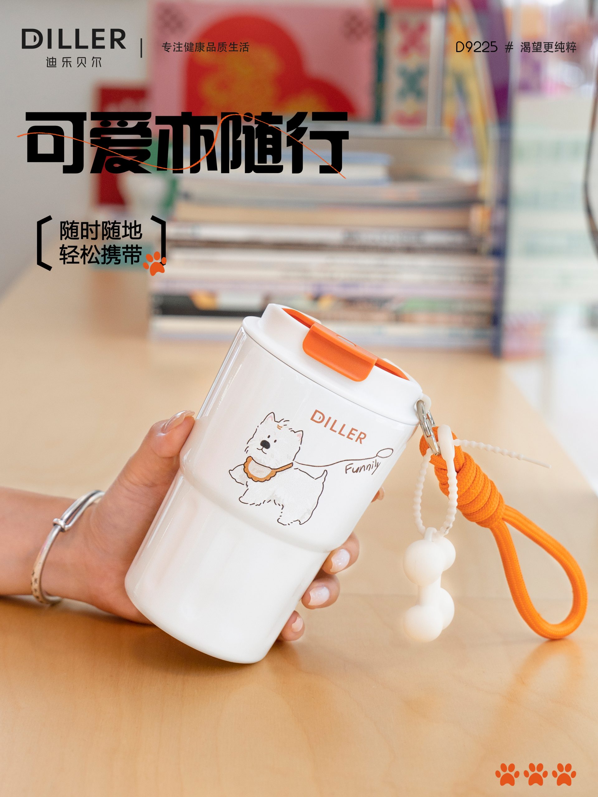Diller Puppy Bone “White Terrier” SUS304 Stainless Steel Thermos Tea Coffee Mug Cup