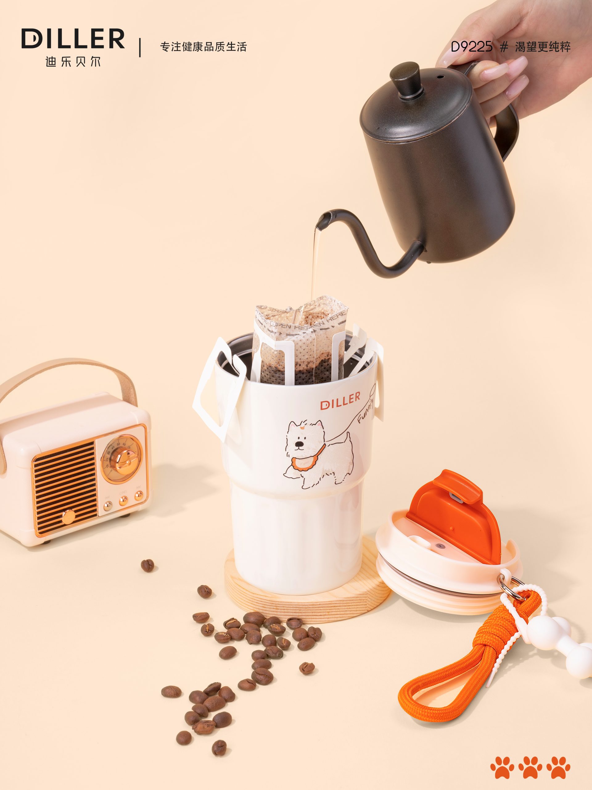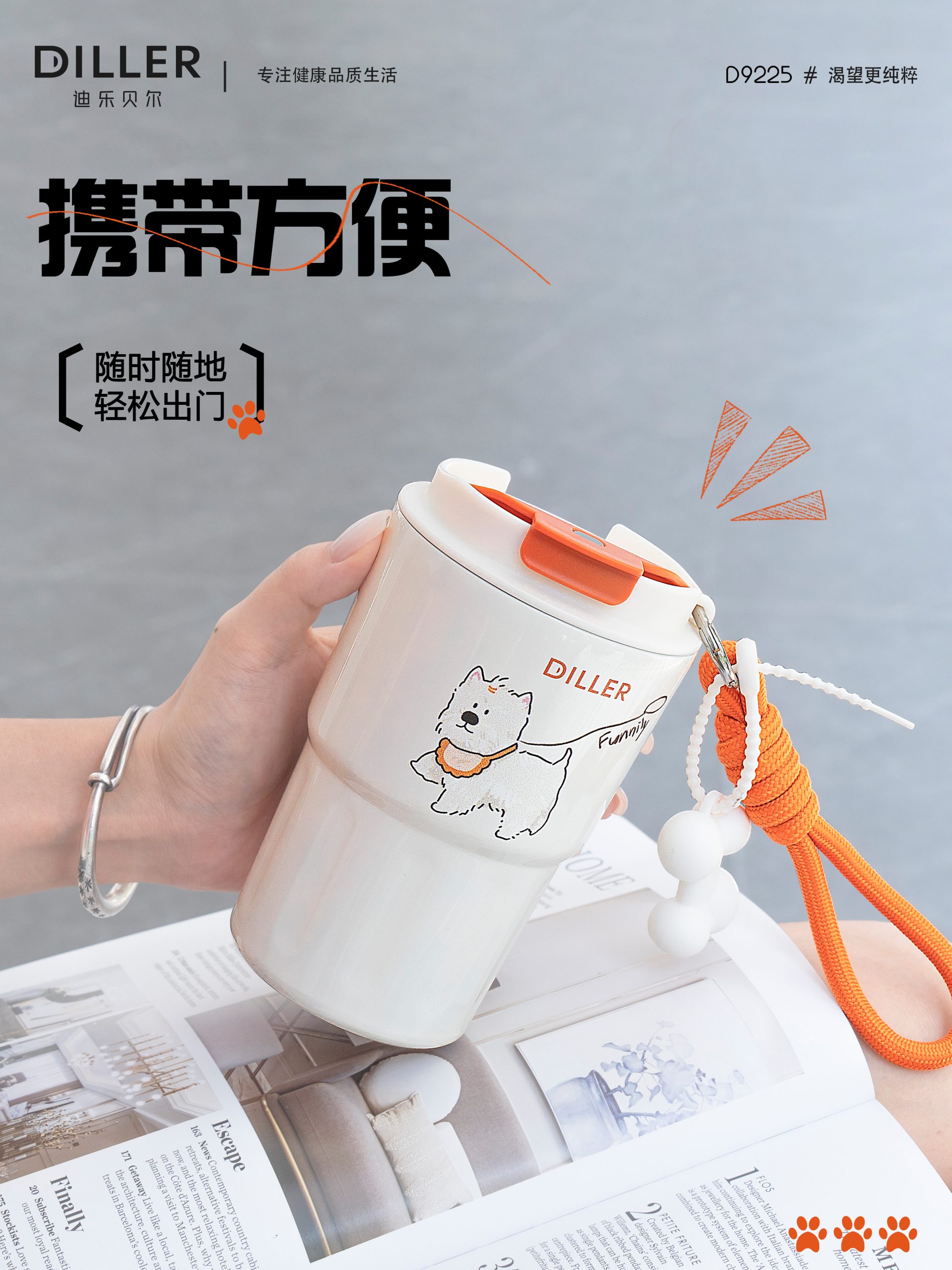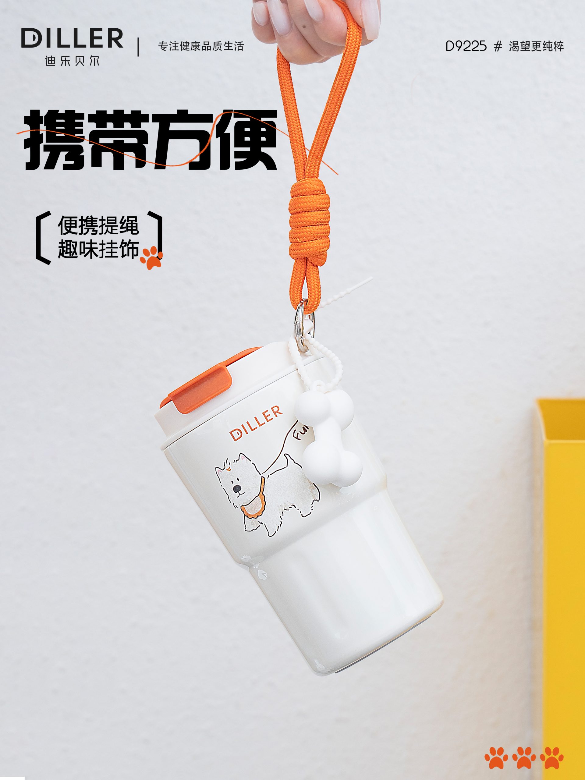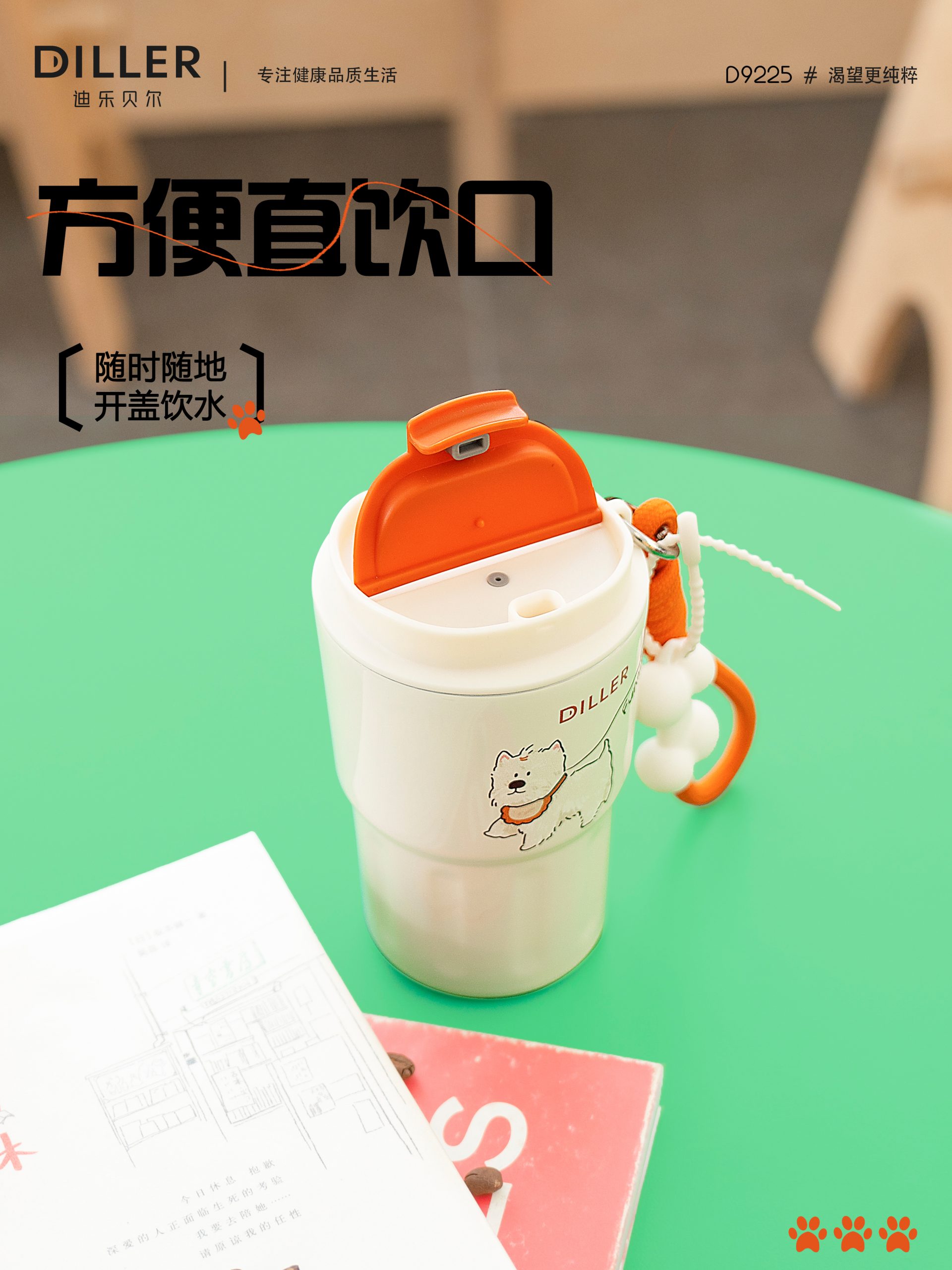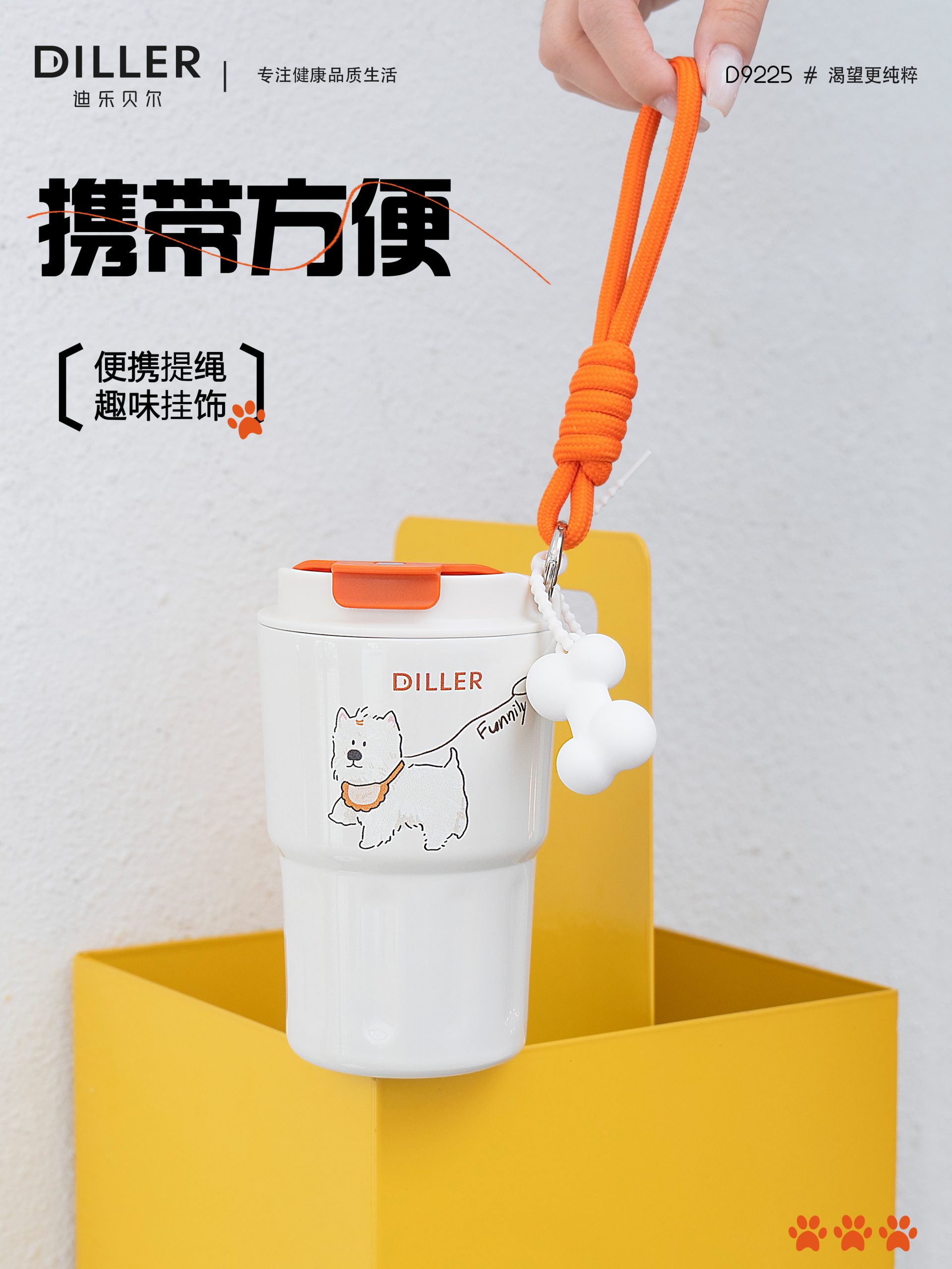 Diller Puppy Bone “White Terrier” SUS304 Stainless Steel Thermos Tea Coffee Mug Cup