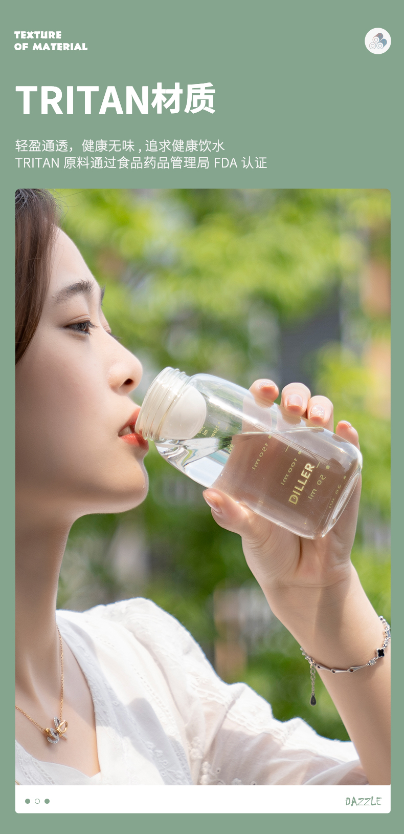 - This water bottle is made from durable Tritan and food grade materials.
