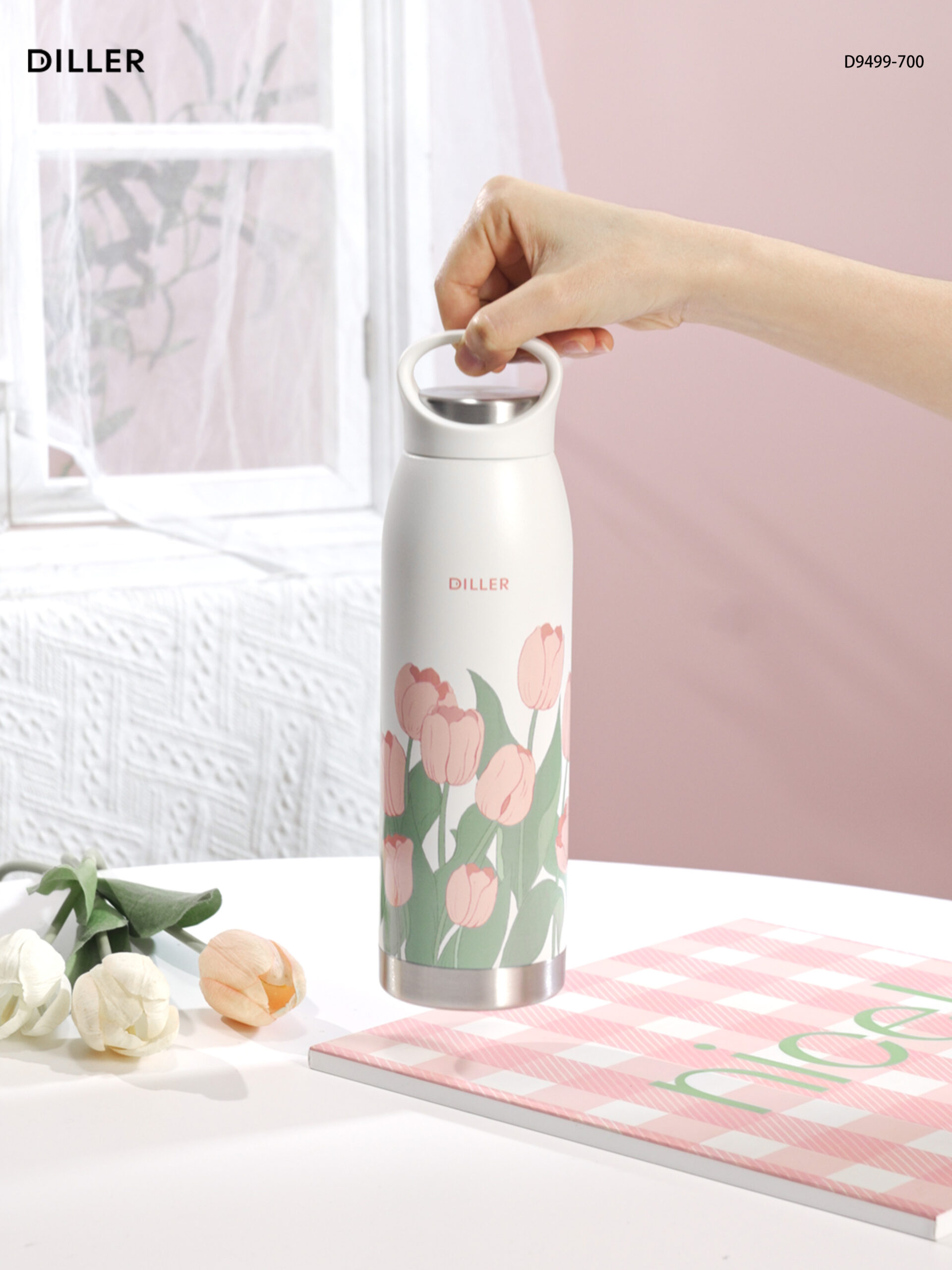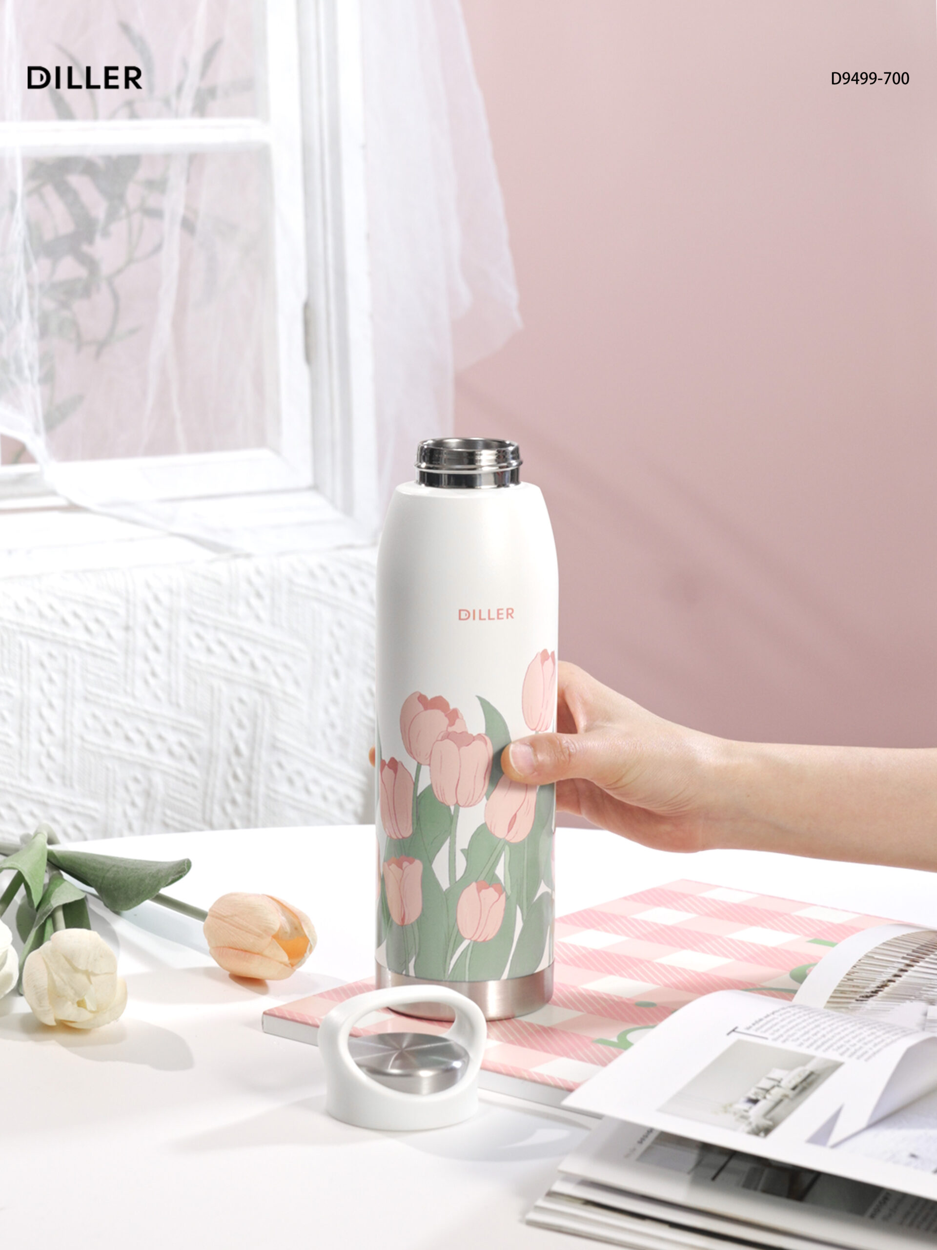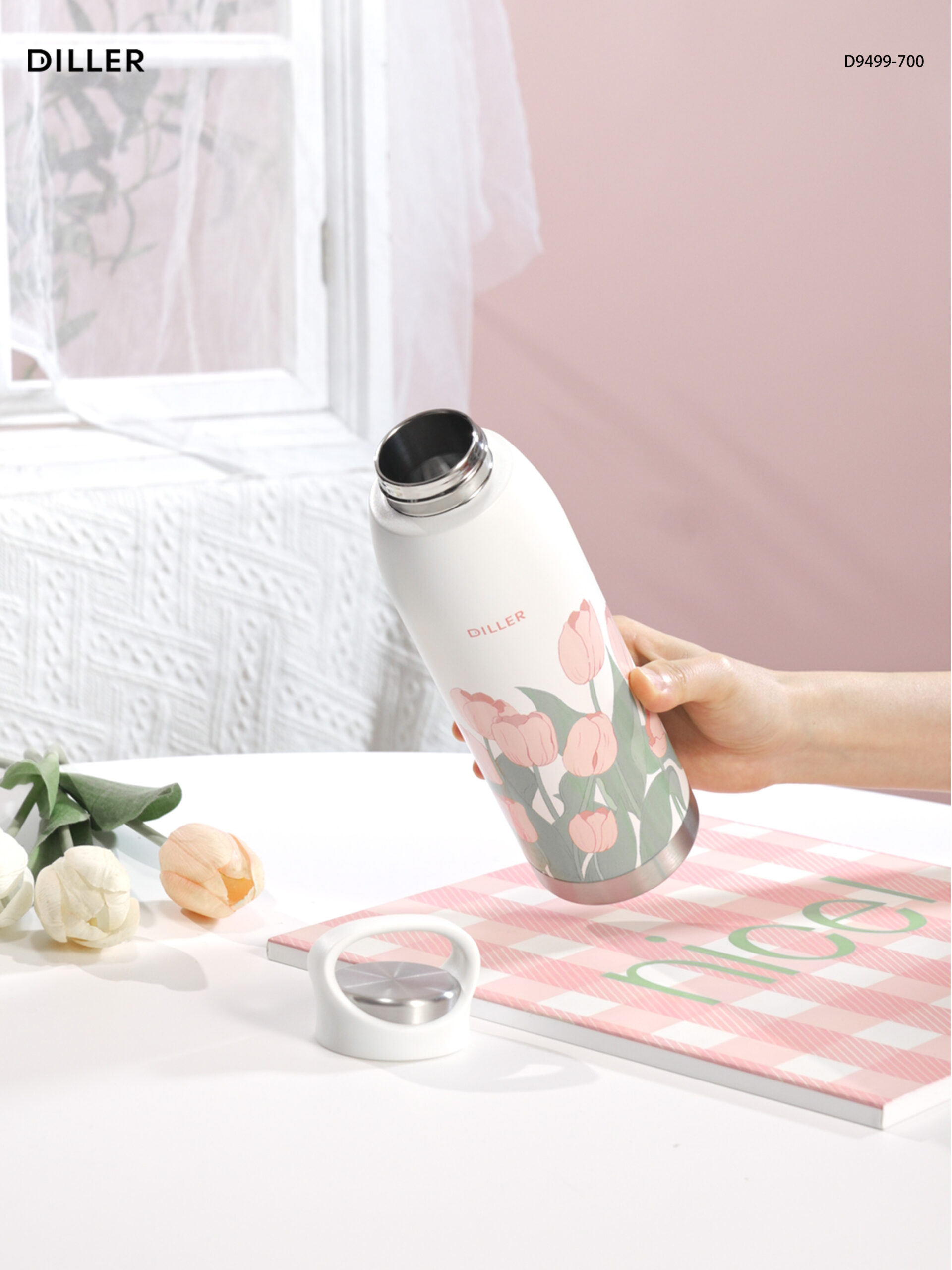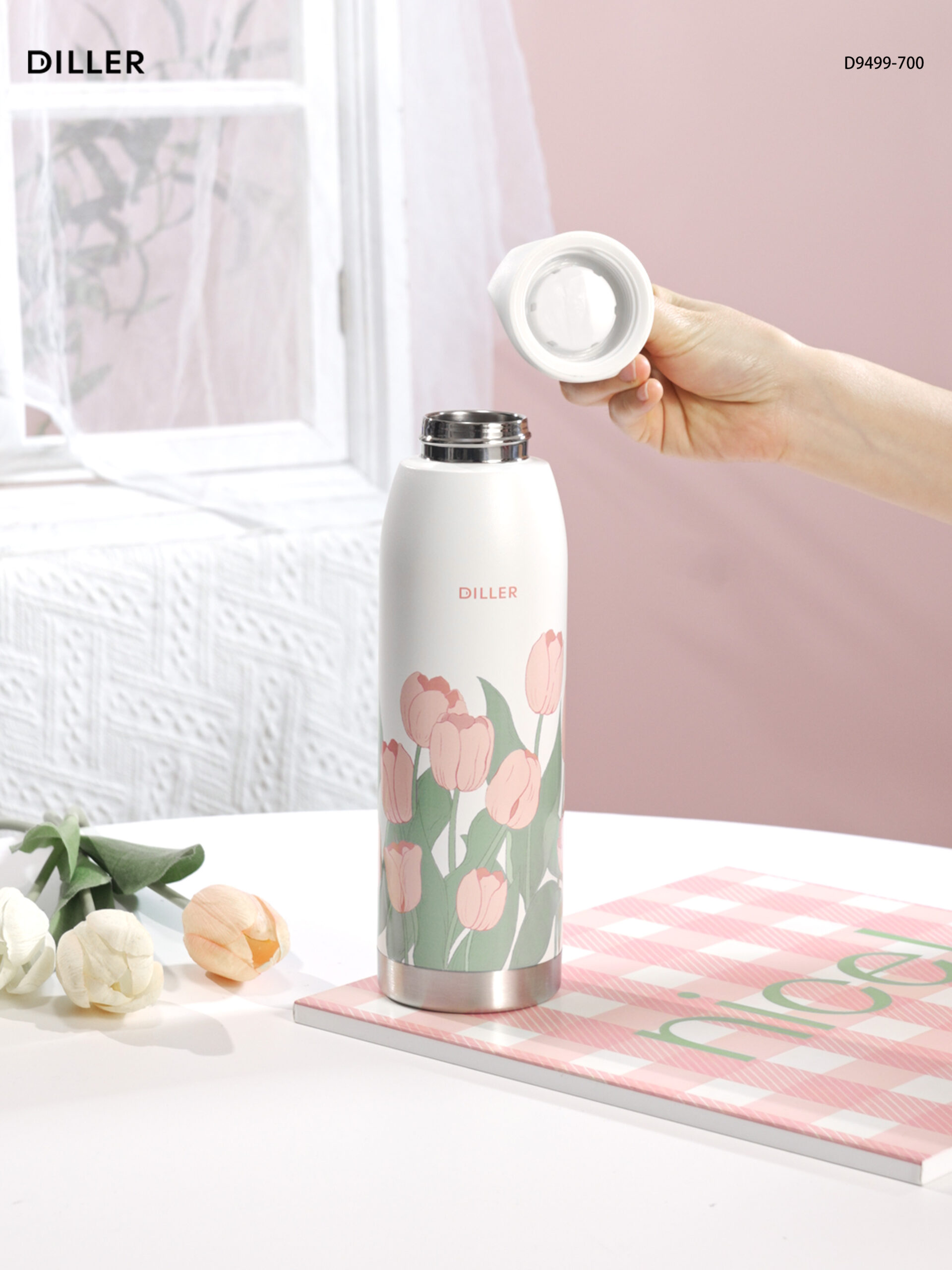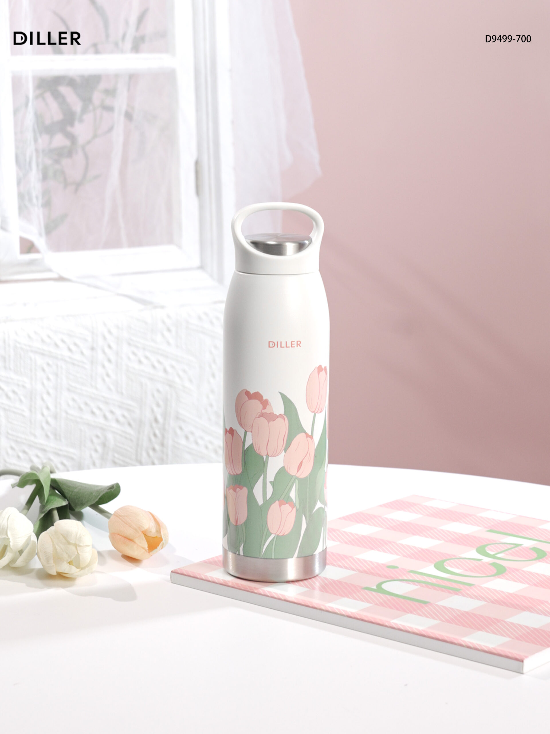 Home Tulip 2026 Diller Tulip Flower 304 Stainless Steel Vacuum Flask Bottle Tumbler Lid Keep Cold Hot D9499-700ml