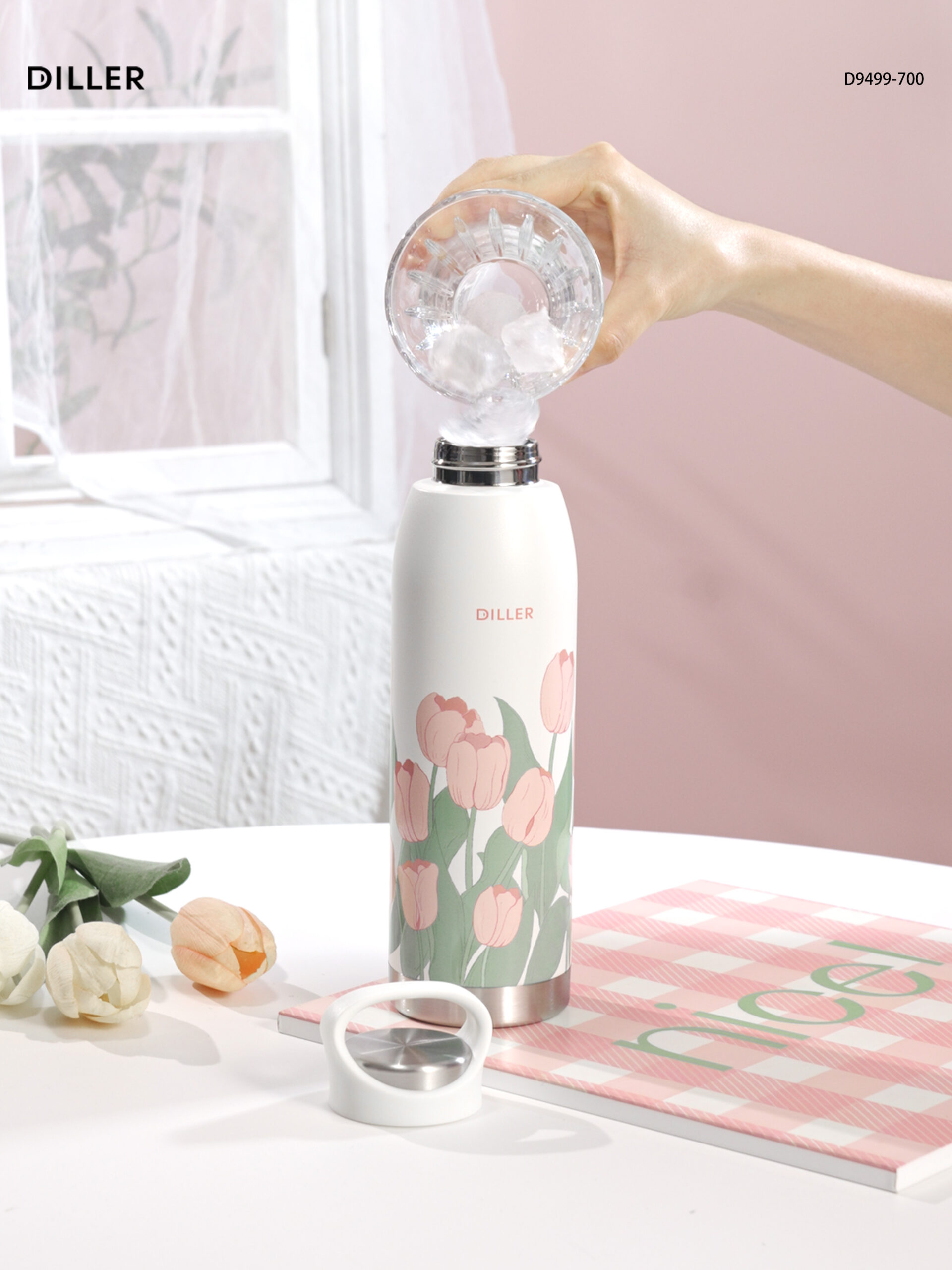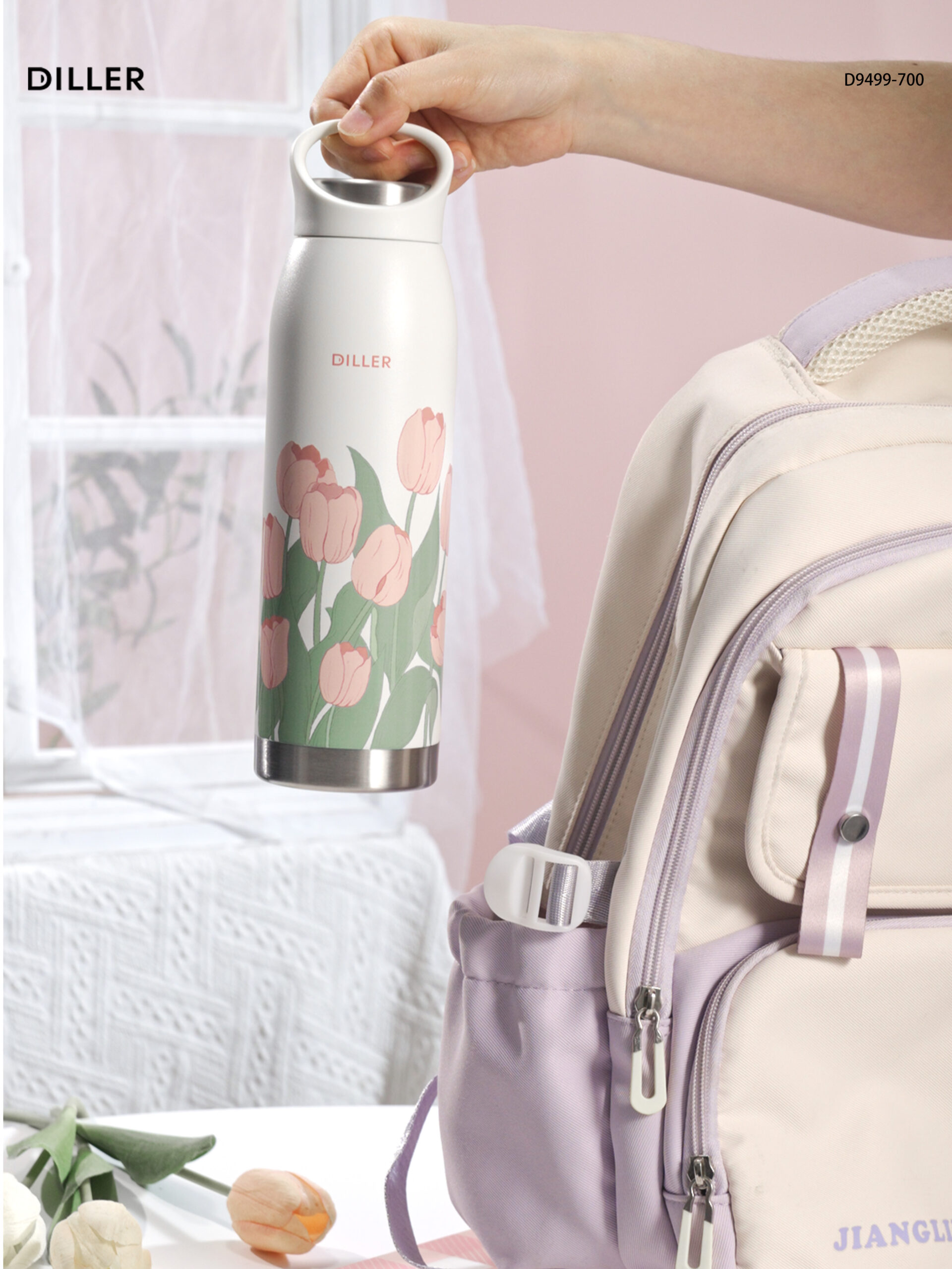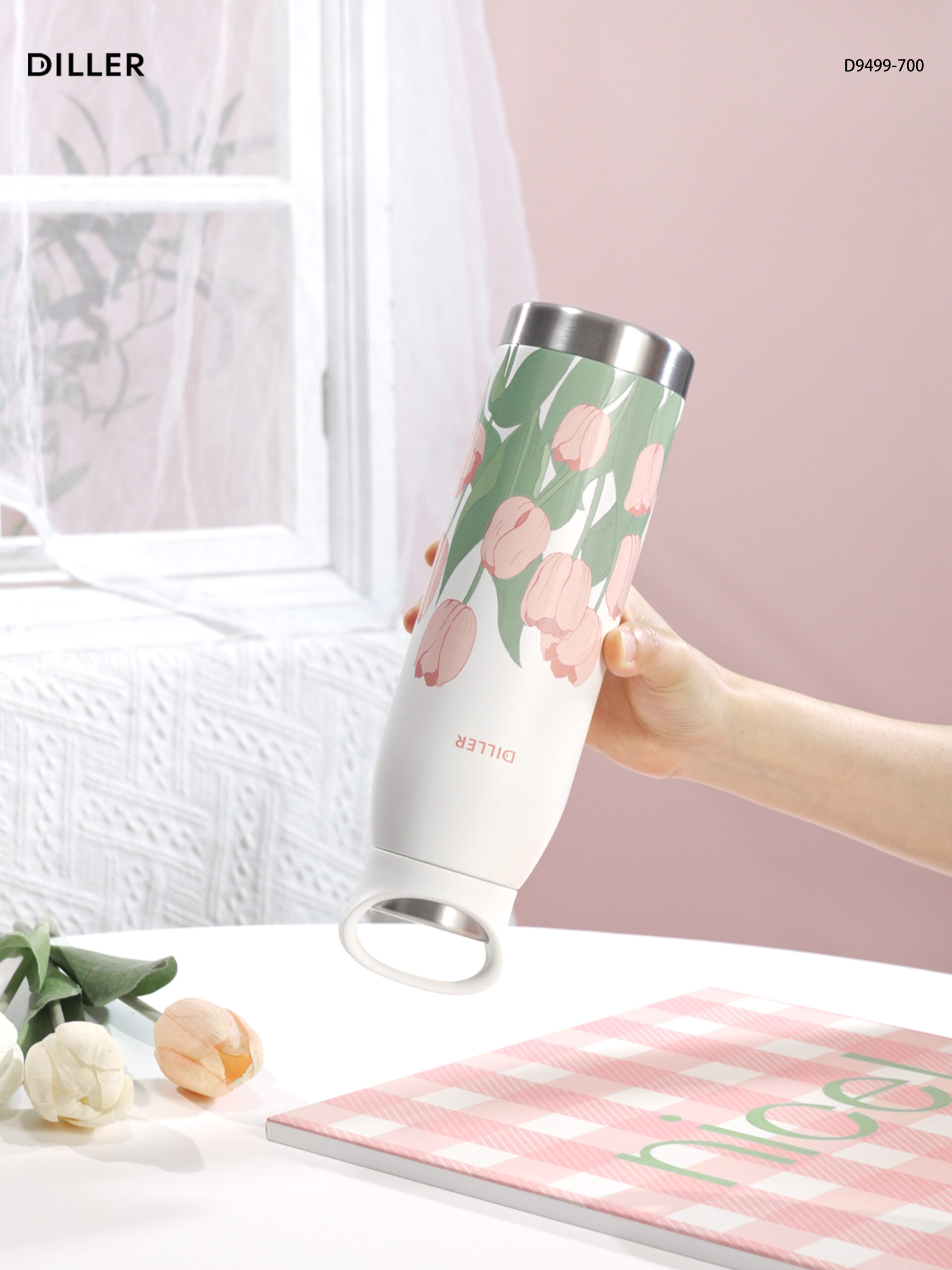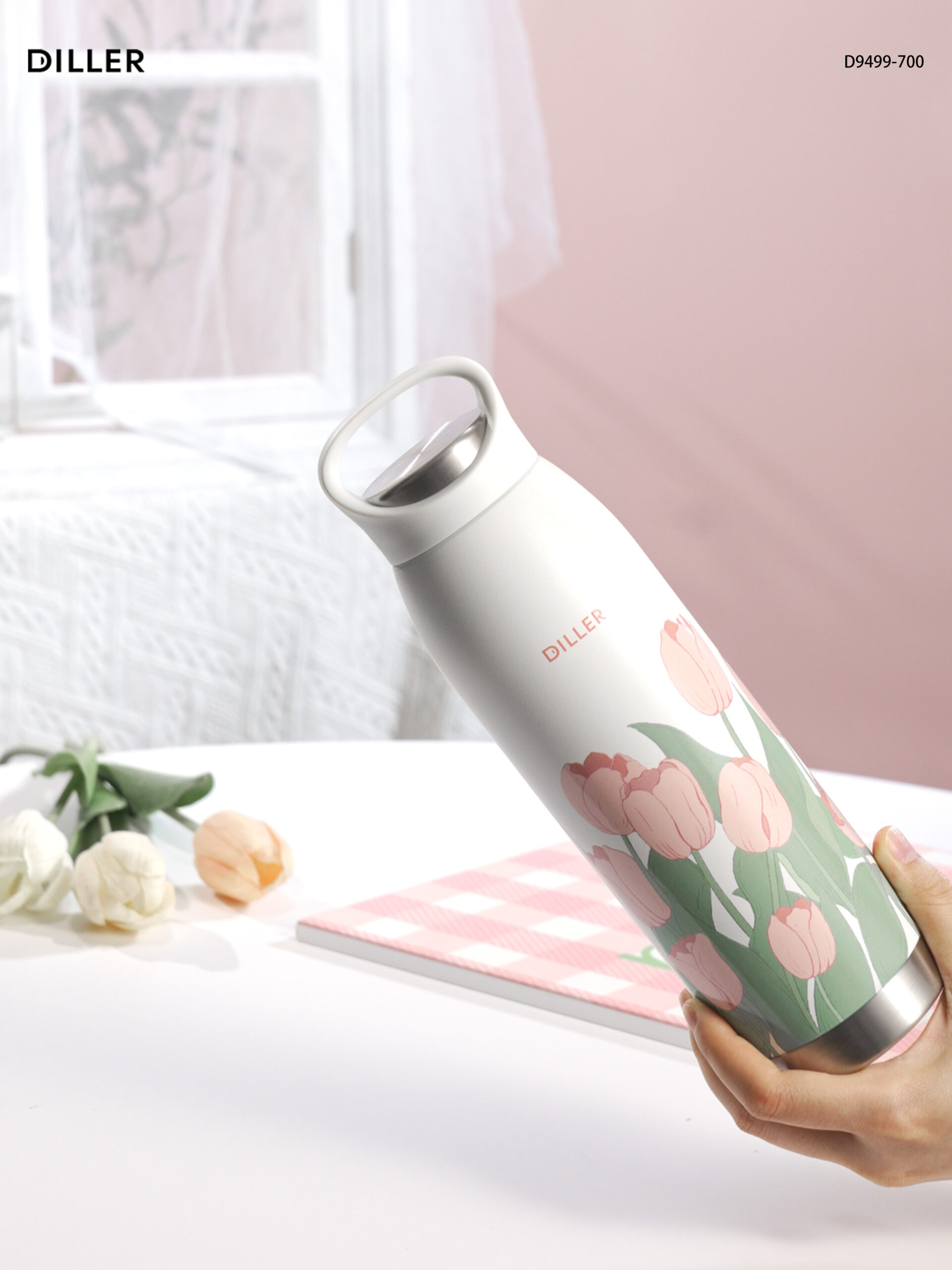 Home Tulip 2026 Diller Tulip Flower 304 Stainless Steel Vacuum Flask Bottle Tumbler Lid Keep Cold Hot D9499-700ml