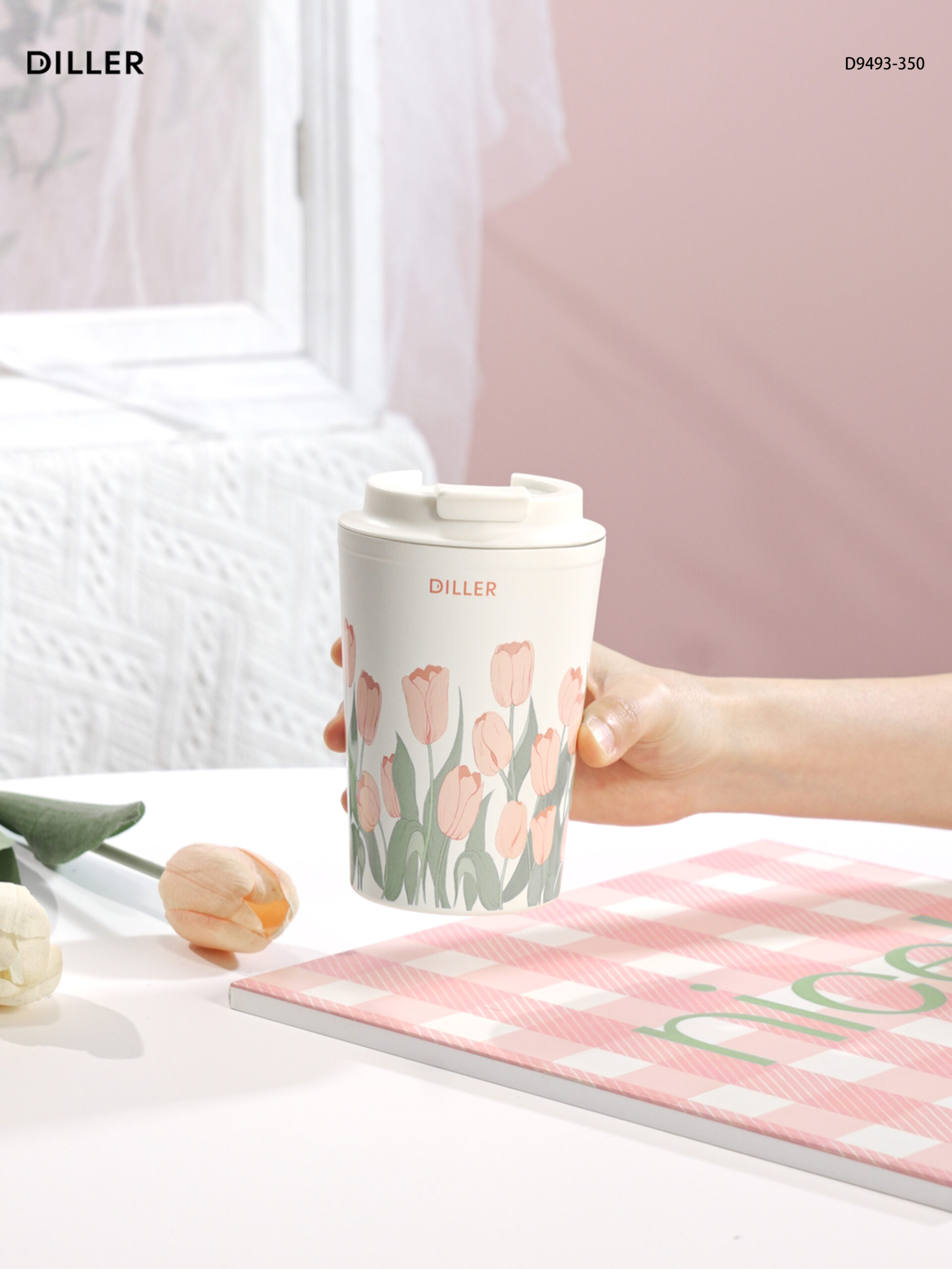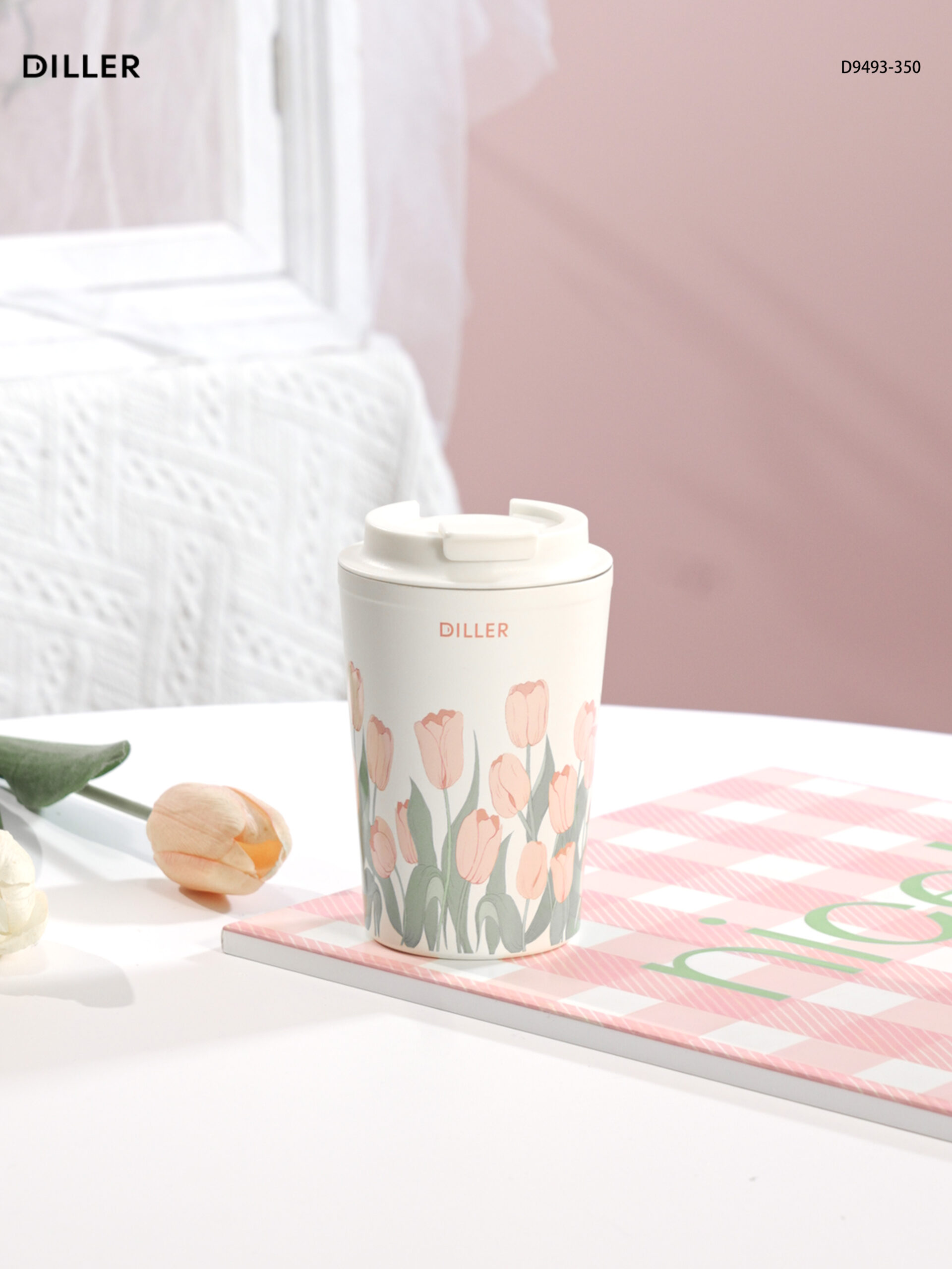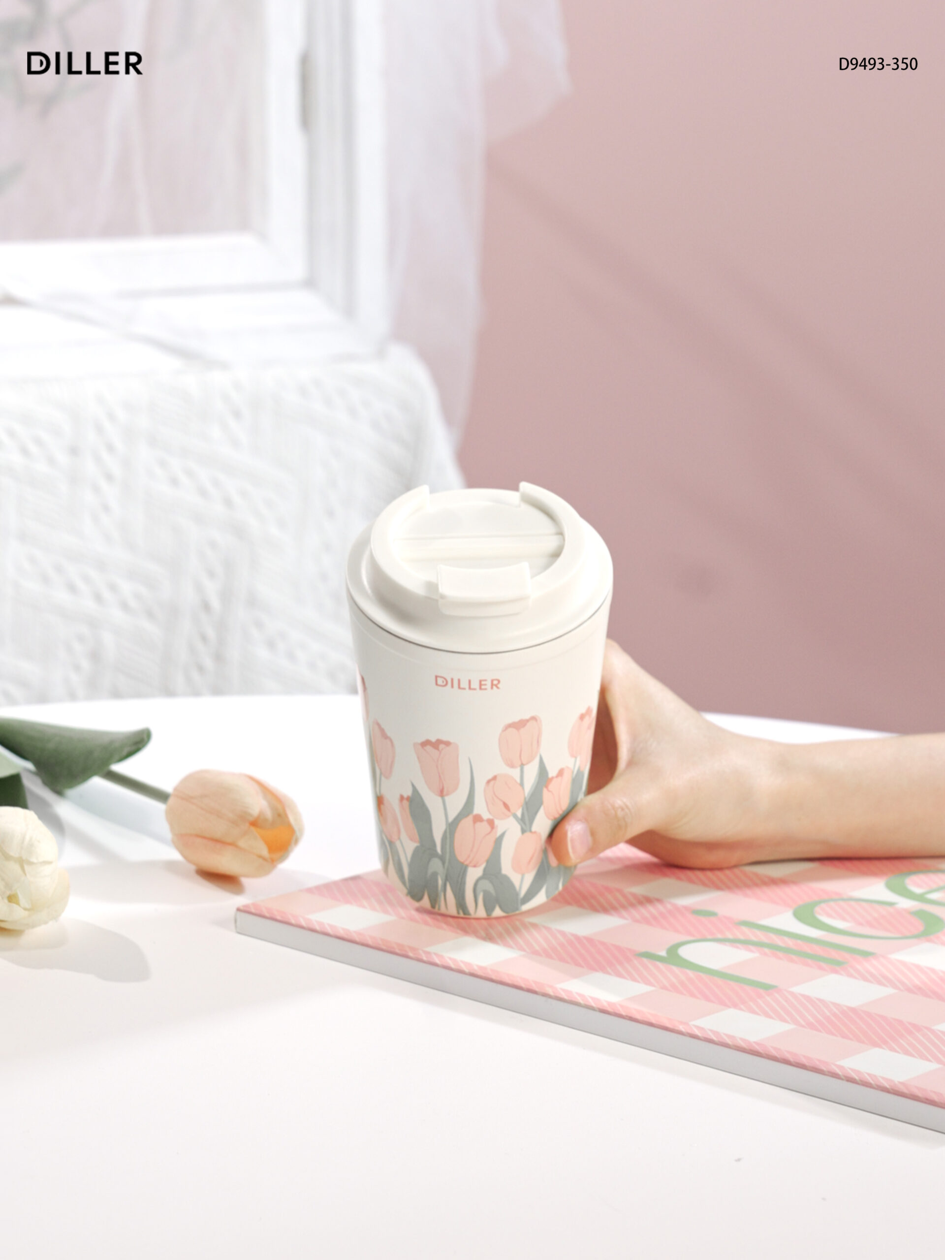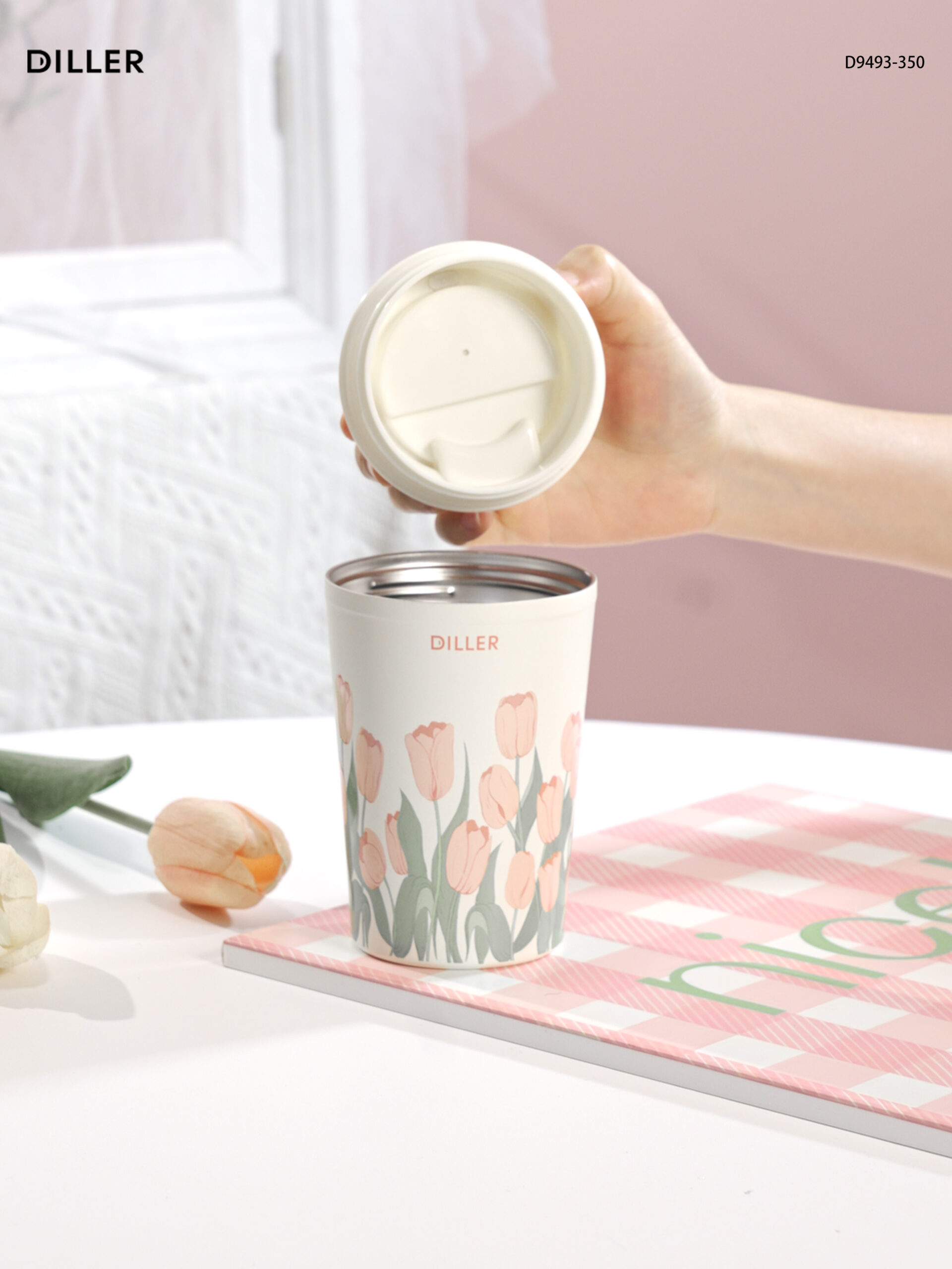 Home Tulip 2026 Diller Tulip Flower Coffee Mug 304 Stainless Steel Vacuum Flask Bottle Tumbler Lid Keep Cold Hot D9493-350ml