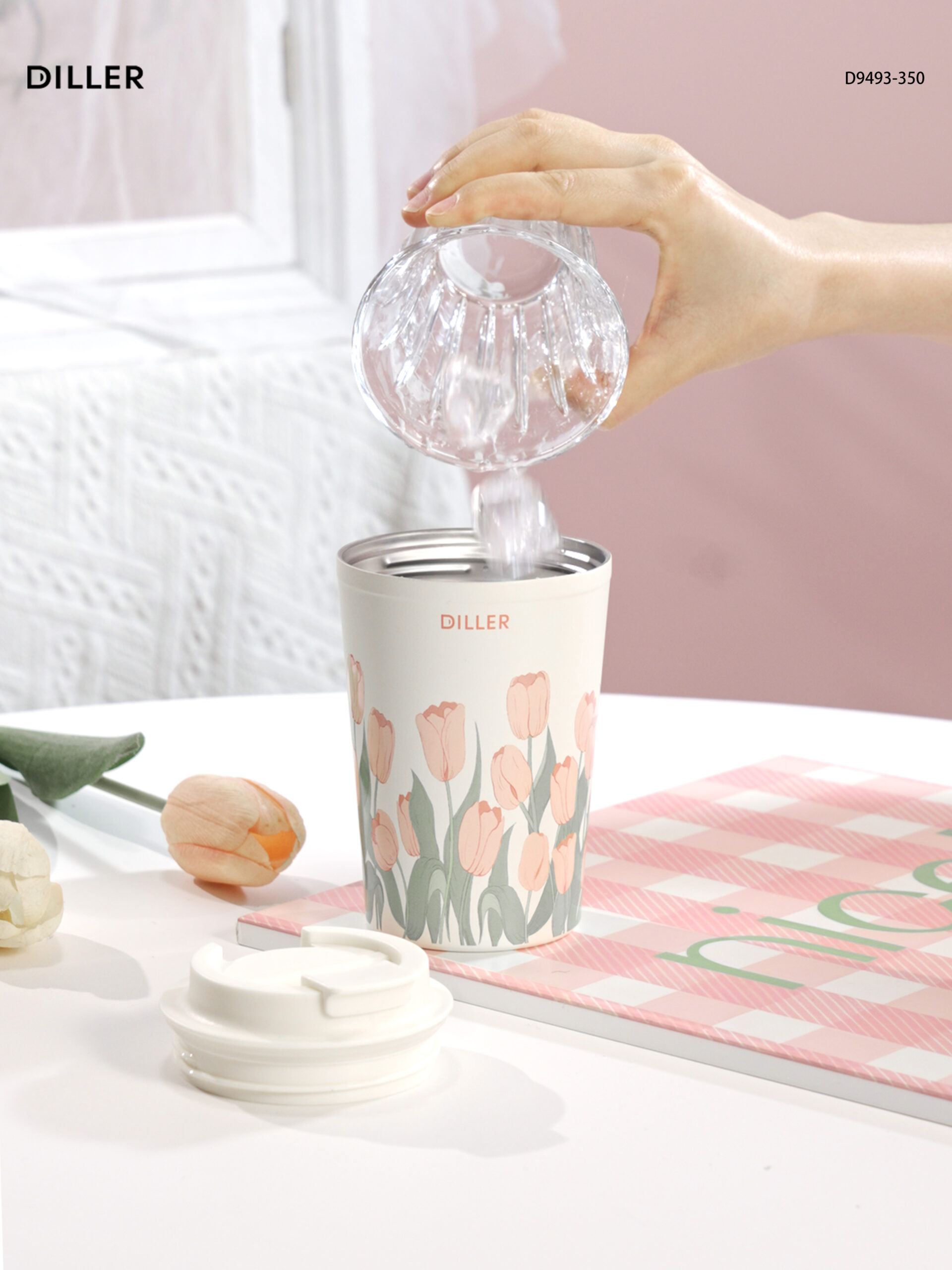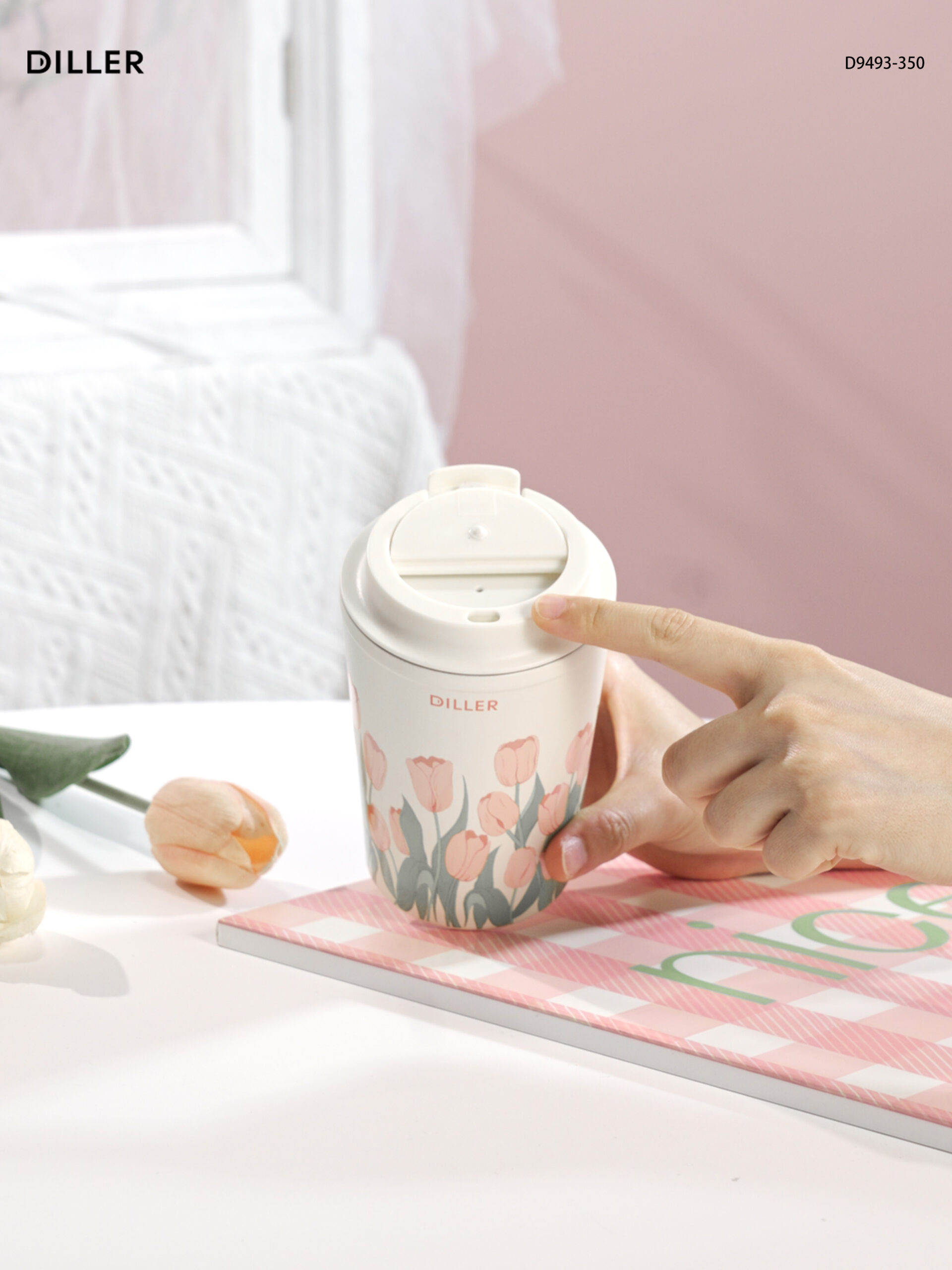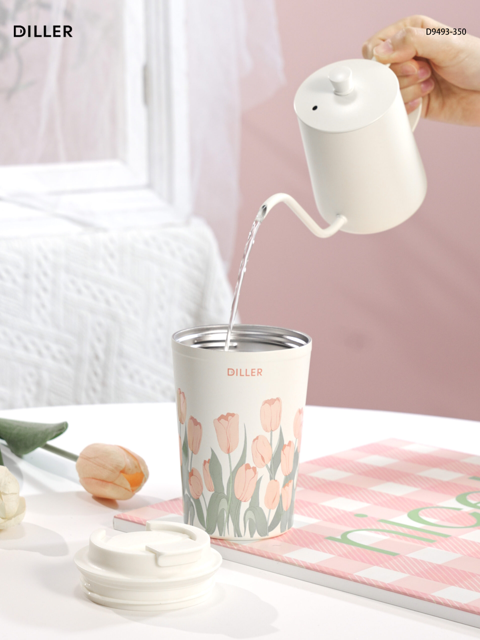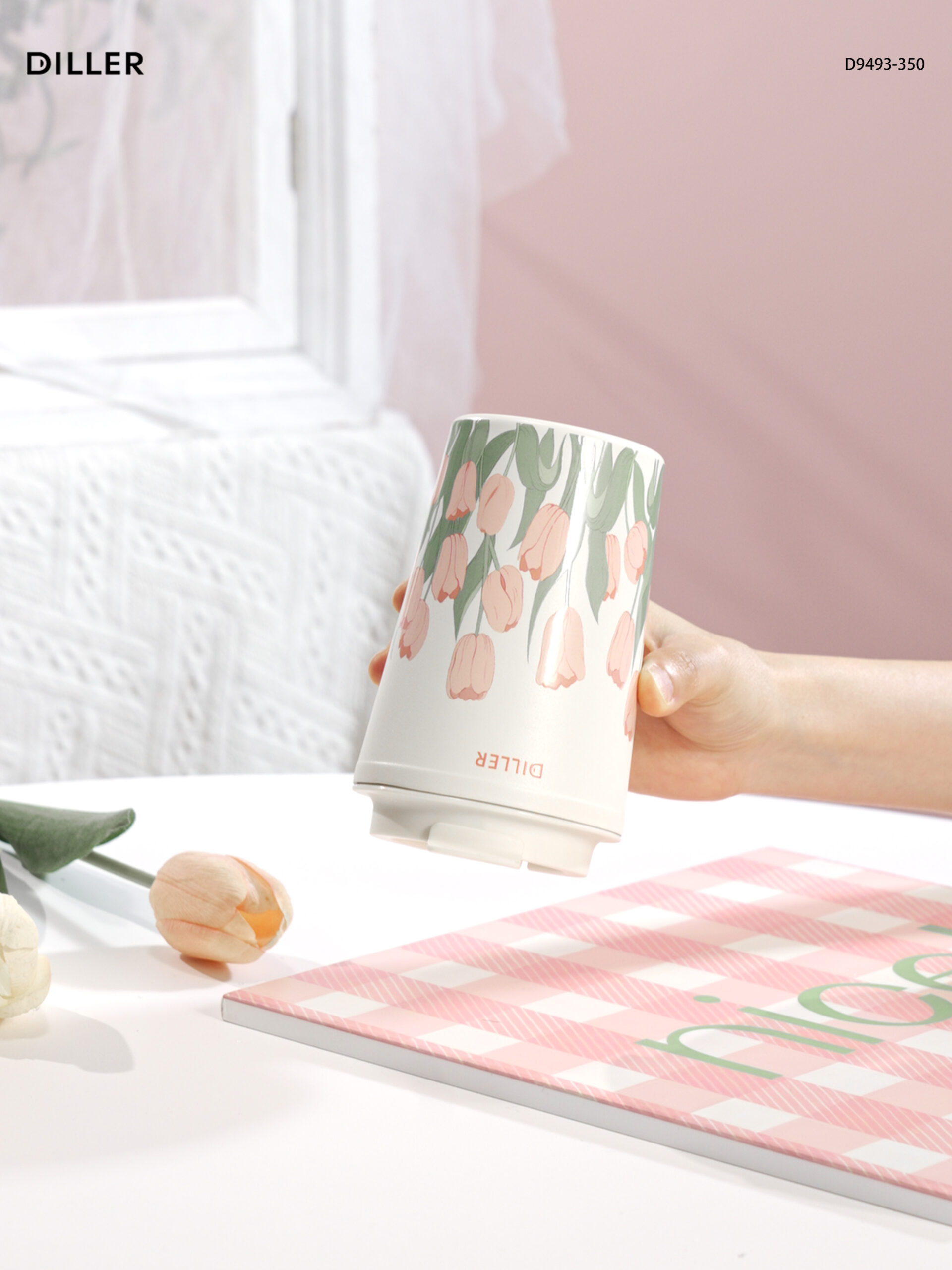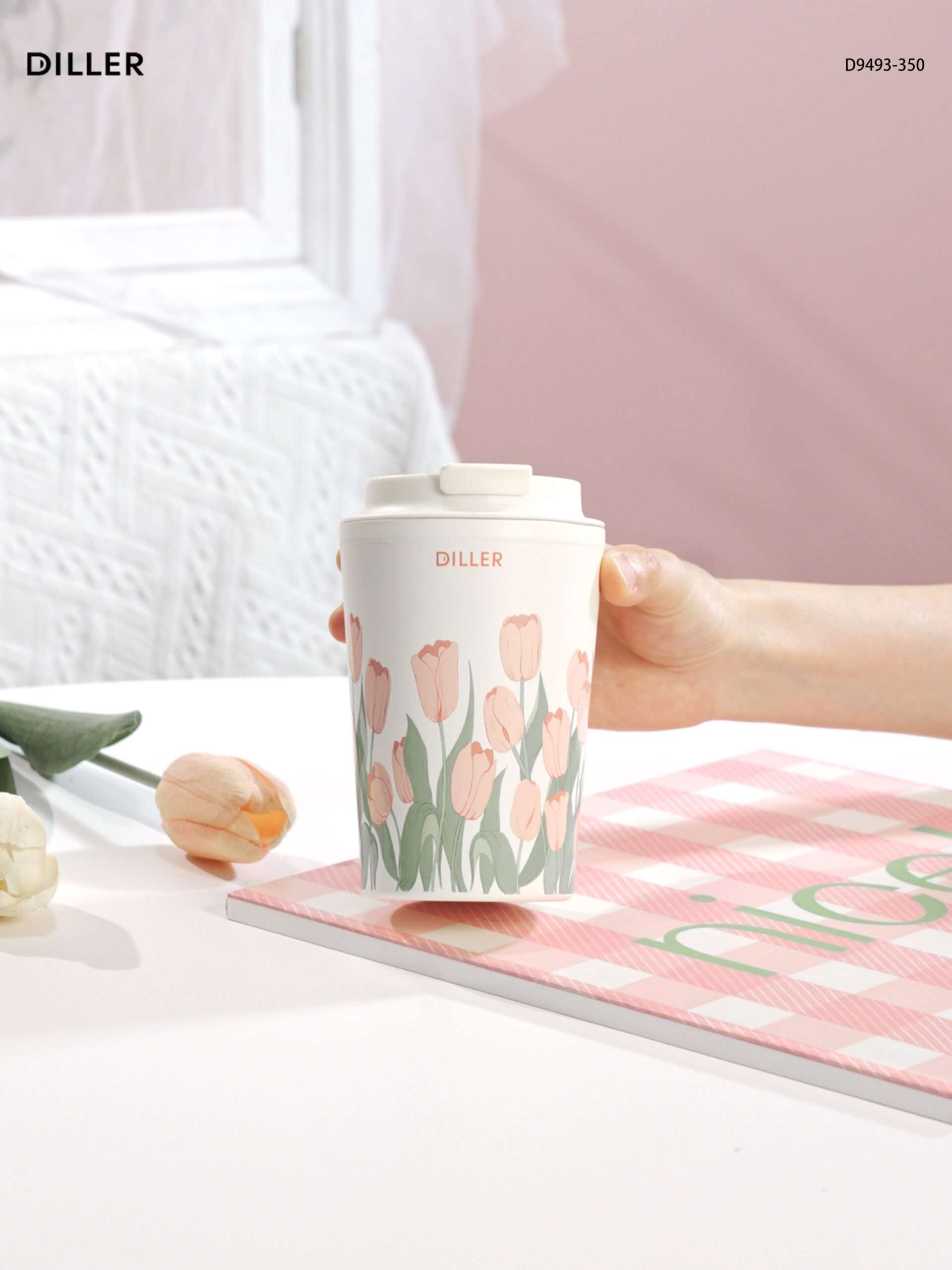 Home Tulip 2026 Diller Tulip Flower Coffee Mug 304 Stainless Steel Vacuum Flask Bottle Tumbler Lid Keep Cold Hot D9493-350ml