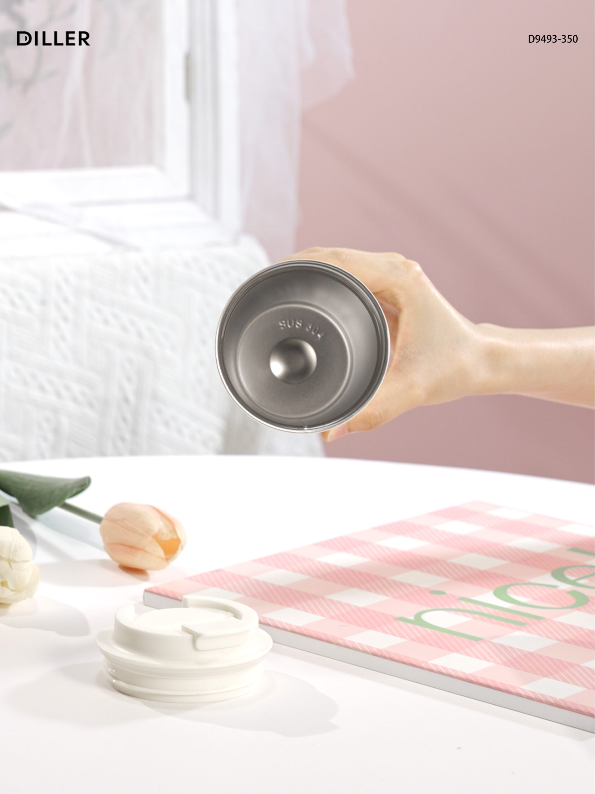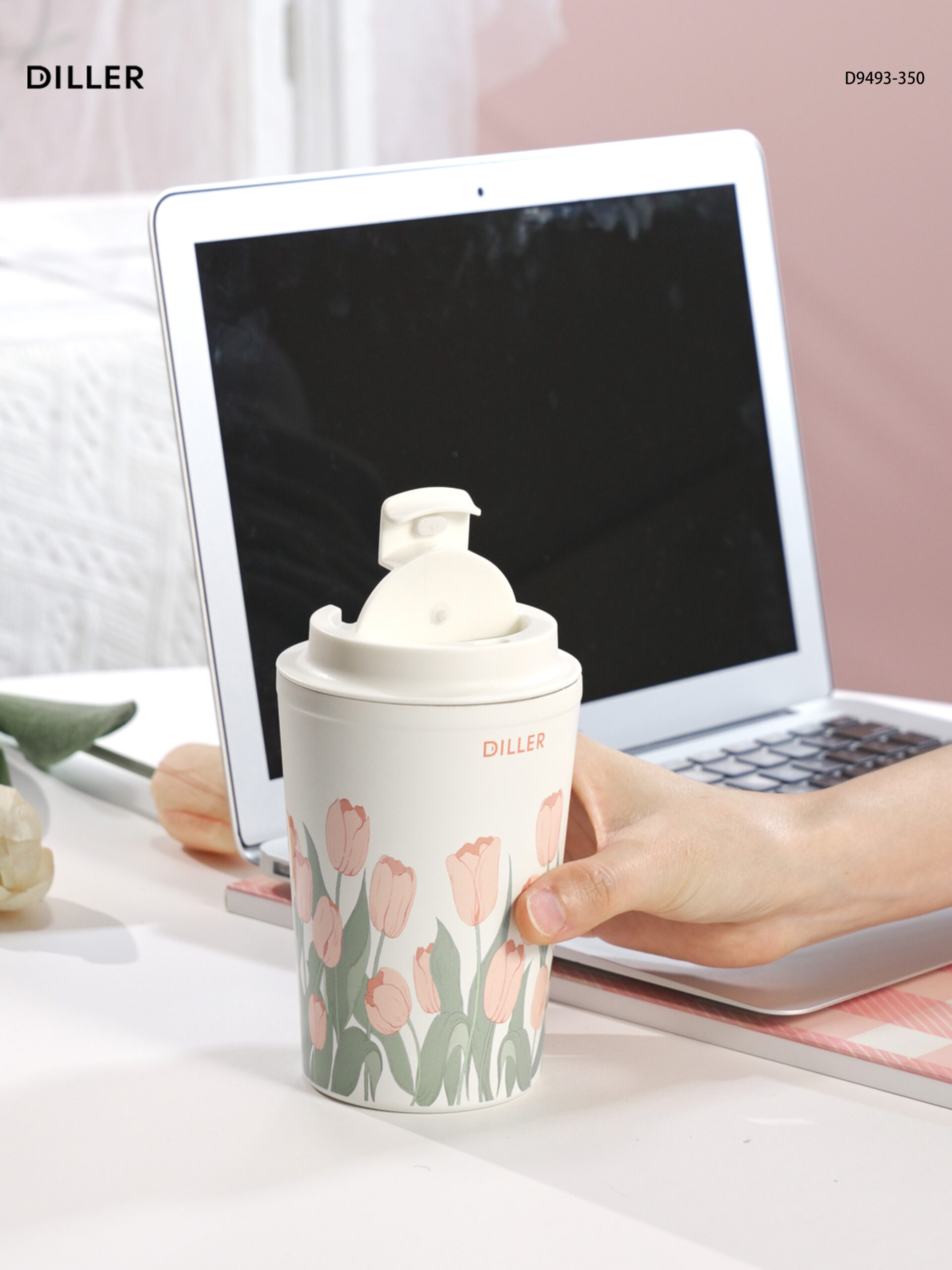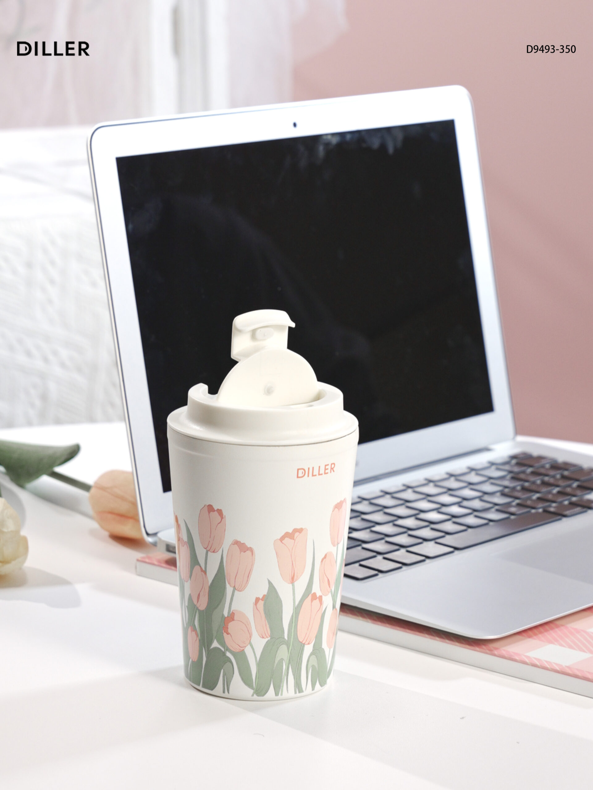 Diller Tulip Flower Coffee Mug 304 Stainless Steel Vacuum Flask Bottle Tumbler Lid Keep Cold Hot D9493-350ml