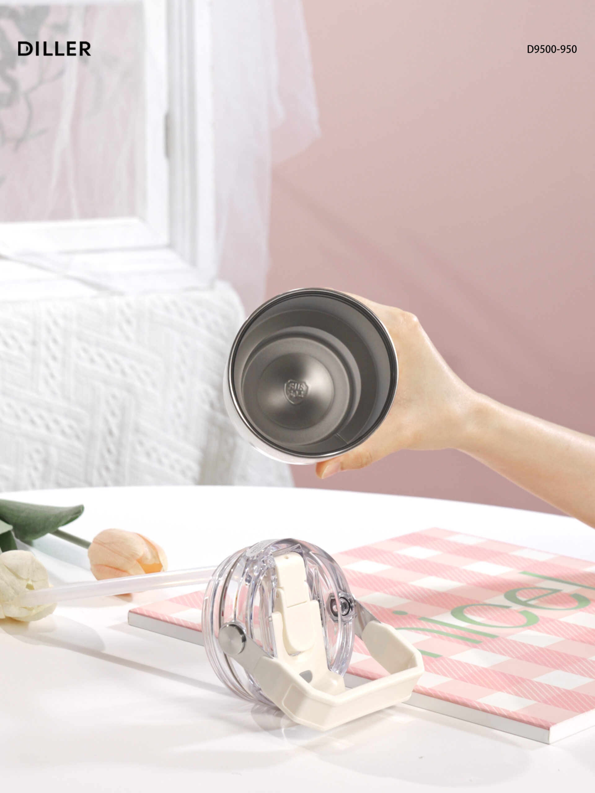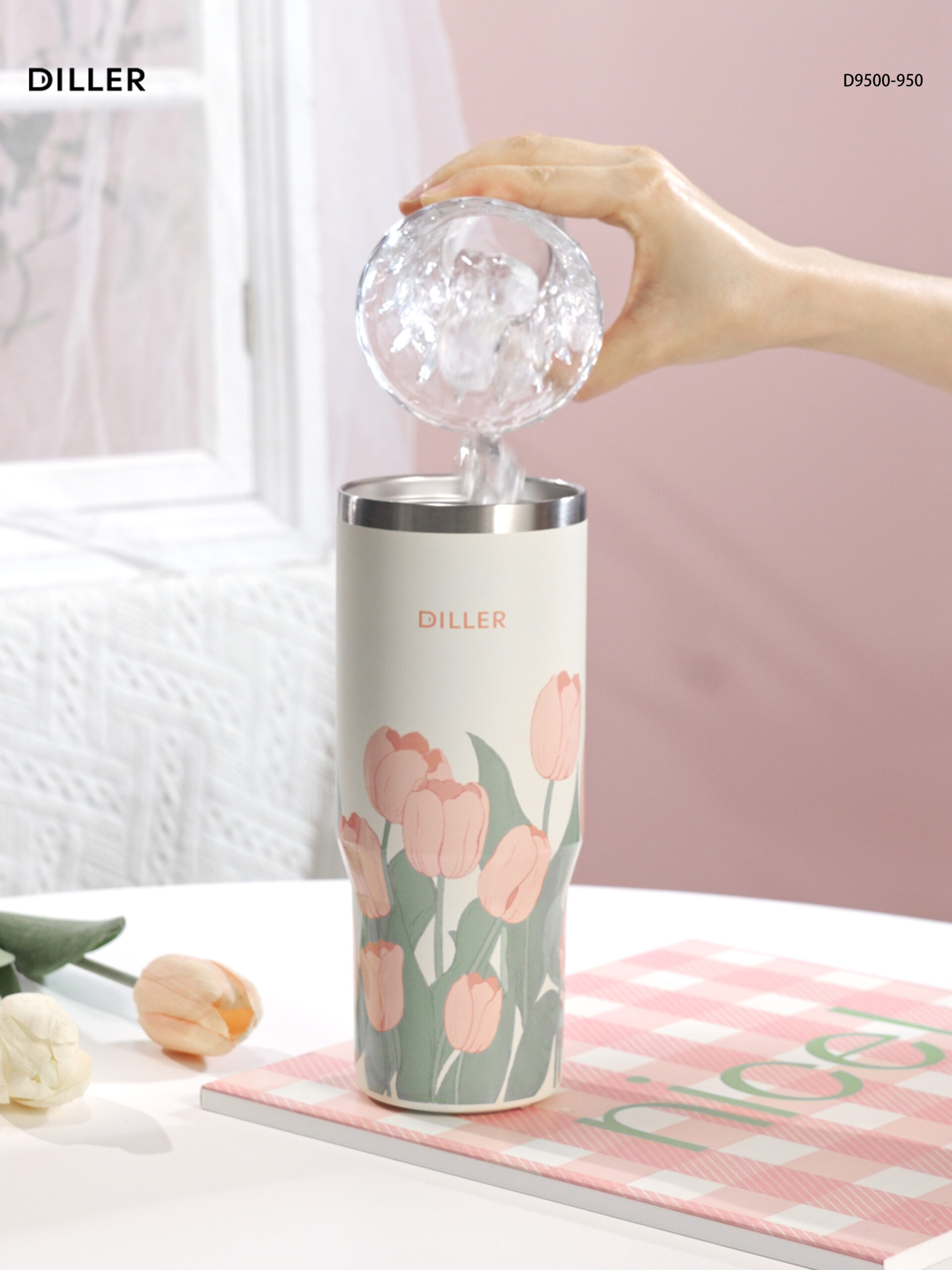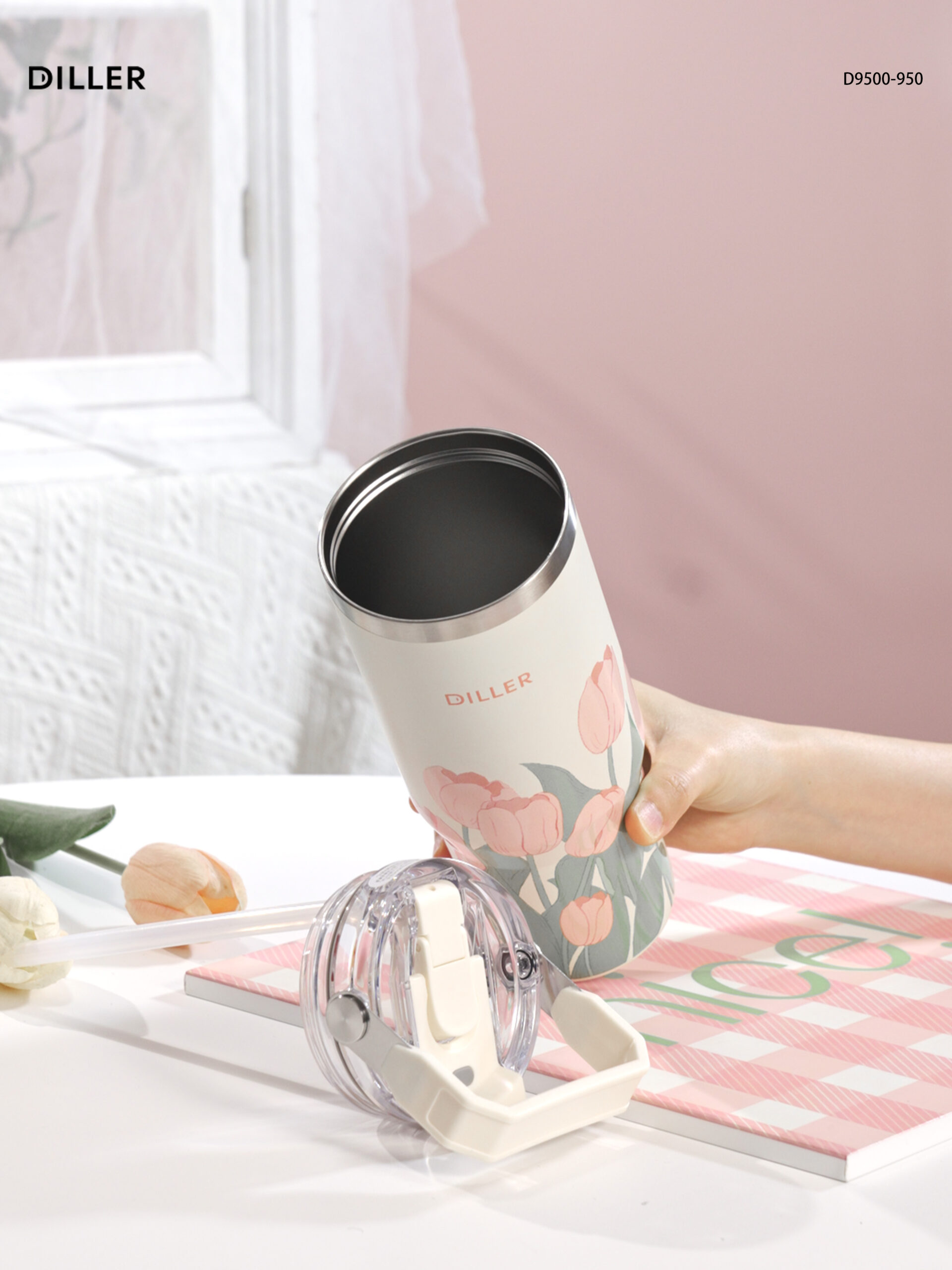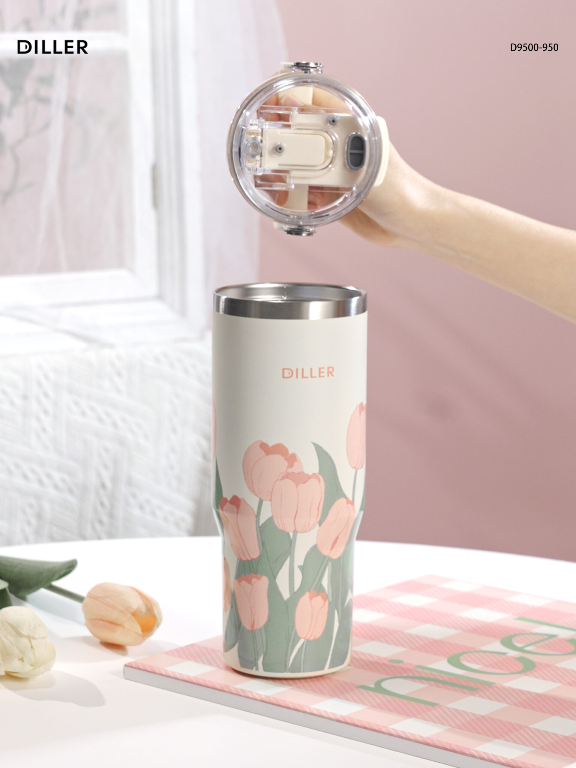 Diller Tulip Flower Coffee Mug 304 Stainless Steel Vacuum Flask Bottle Tumbler Lid Keep Cold Hot D9500-950ml