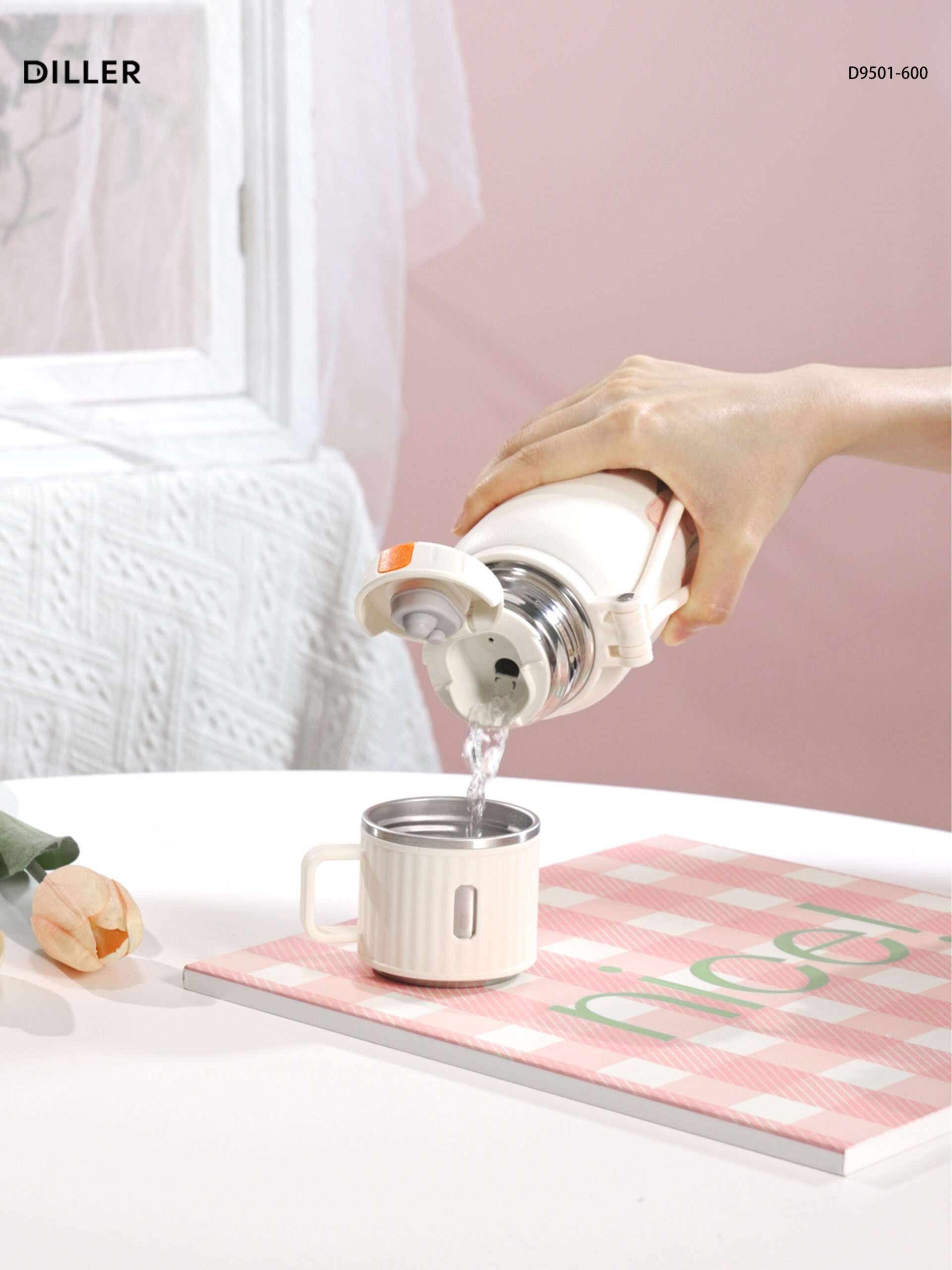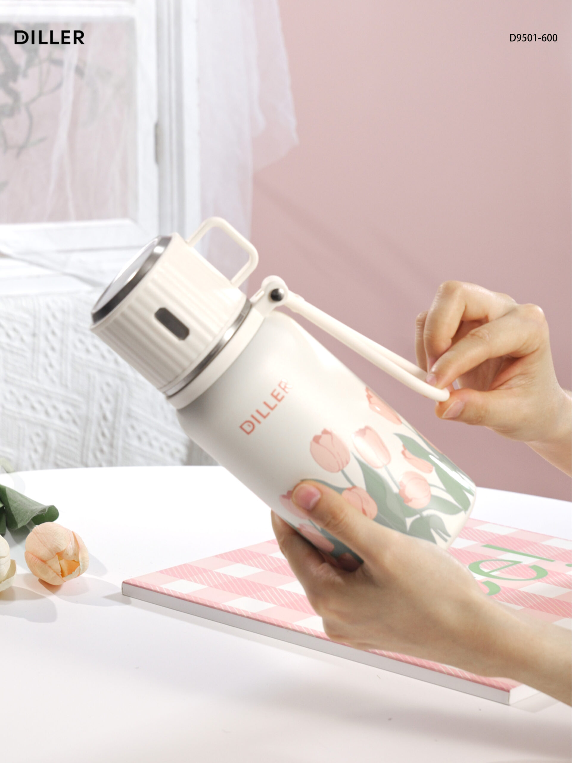 Home Tulip 2026 Diller Tulip Flower Coffee Mug 316 Stainless Steel Vacuum Flask Bottle Tumbler Lid Keep Cold Hot D9501-600ml
