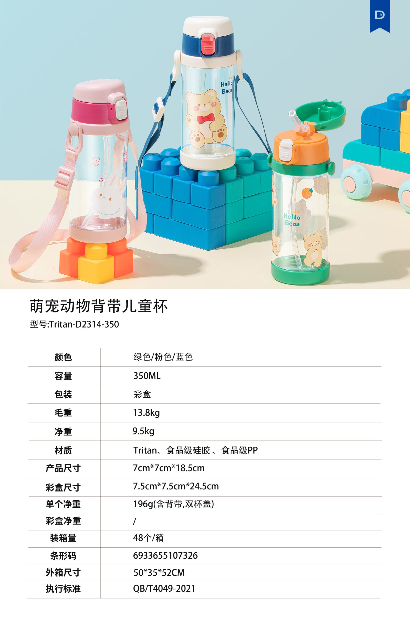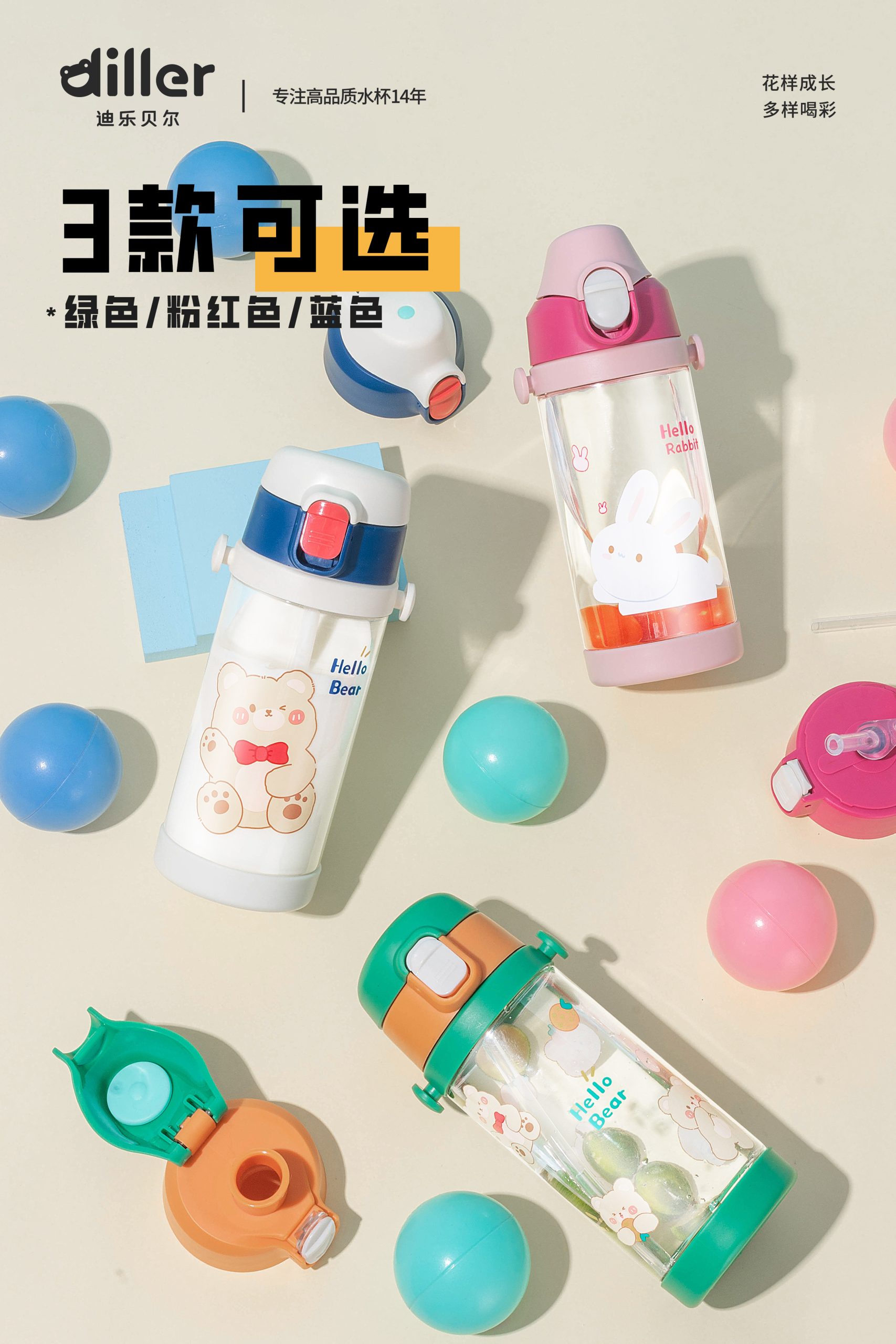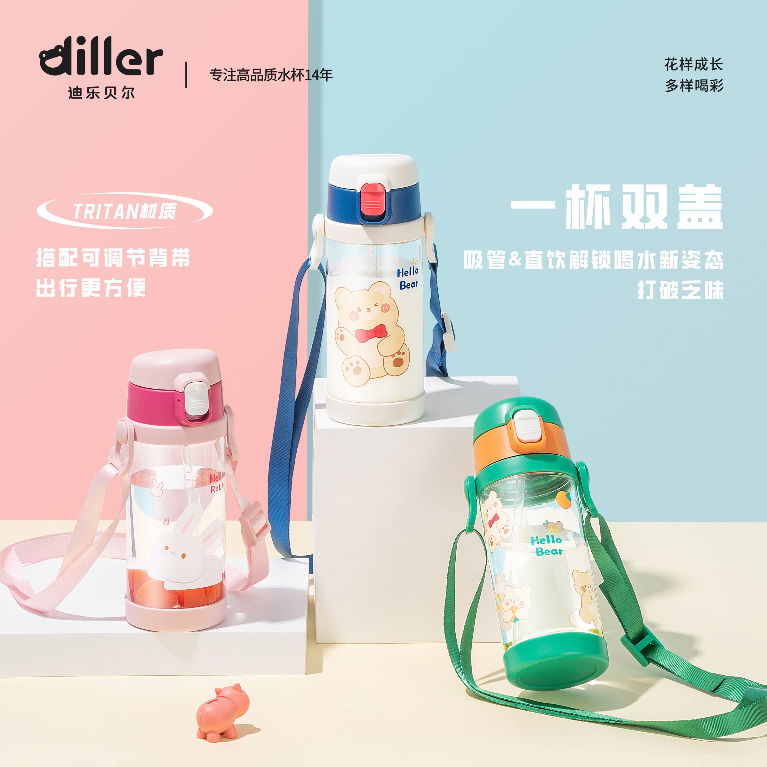 Diller High Quality Sport Tritan Straw Bottle (DB007-400ml/550ml)