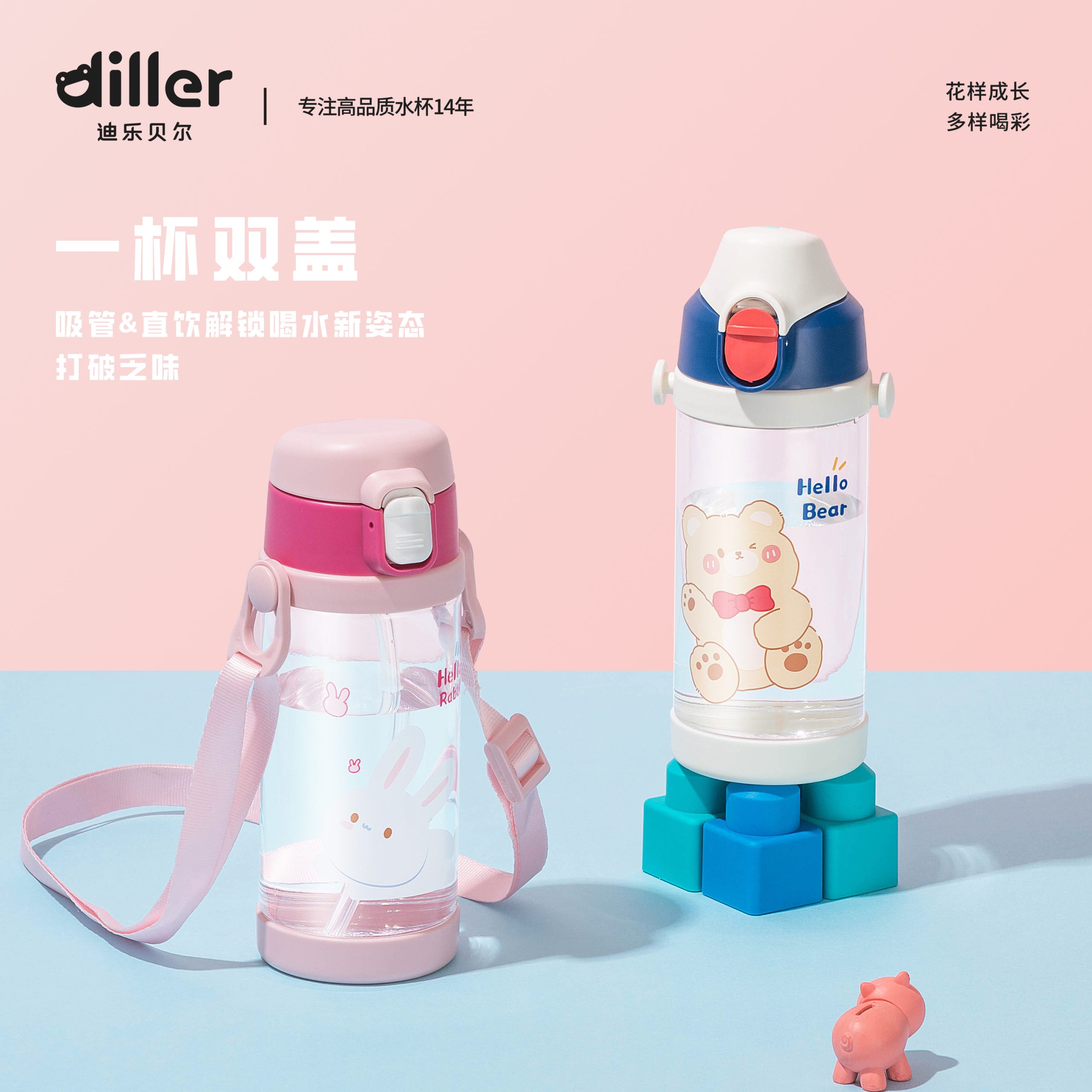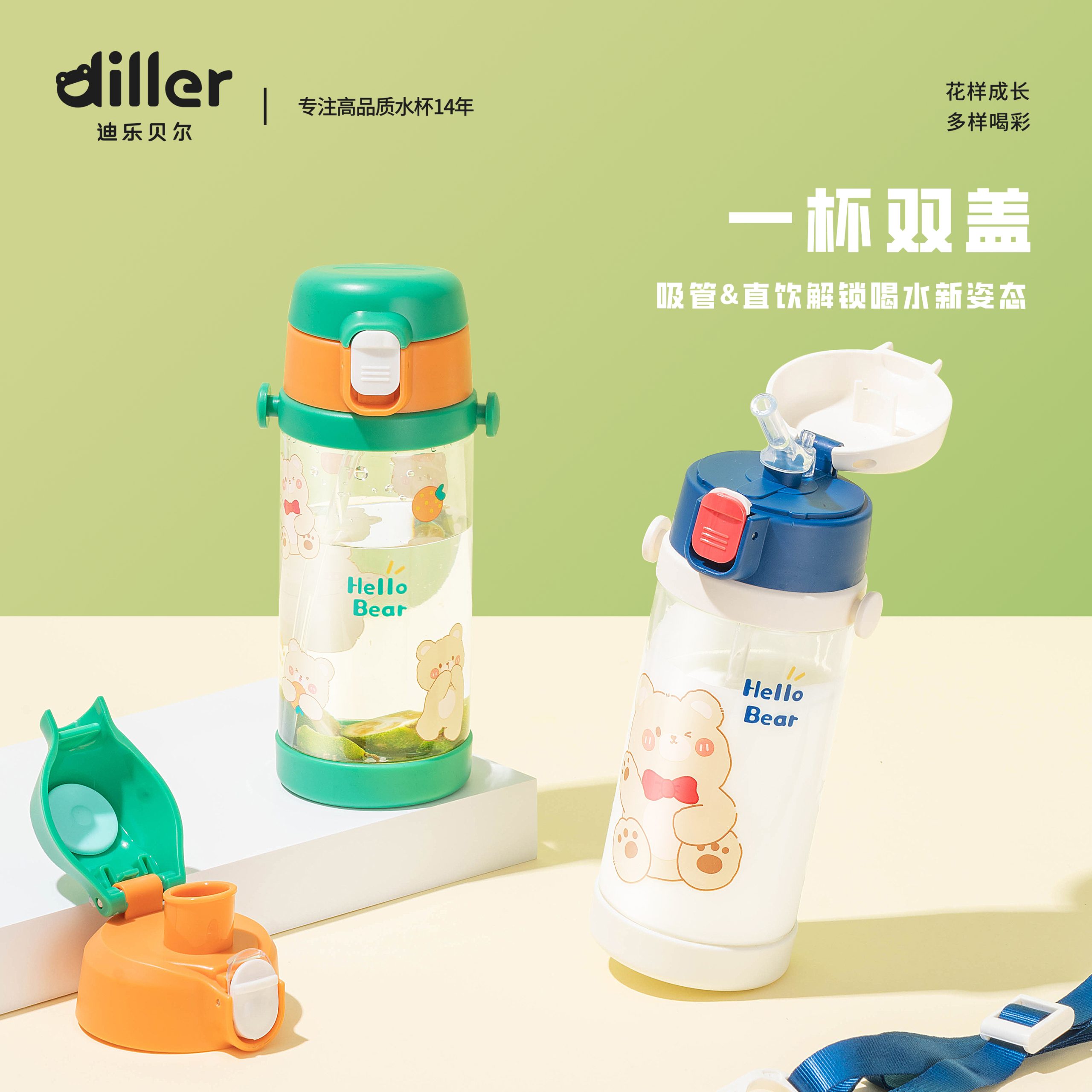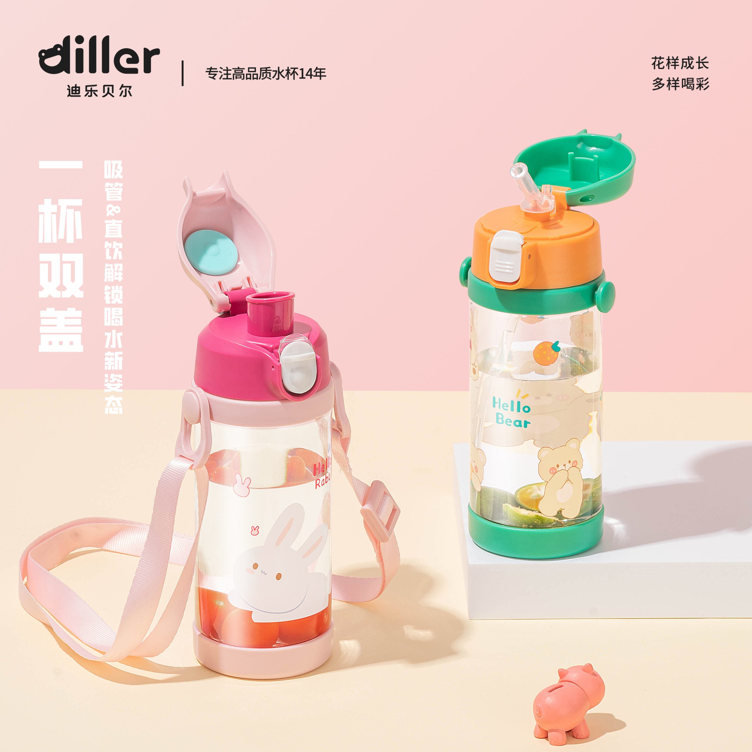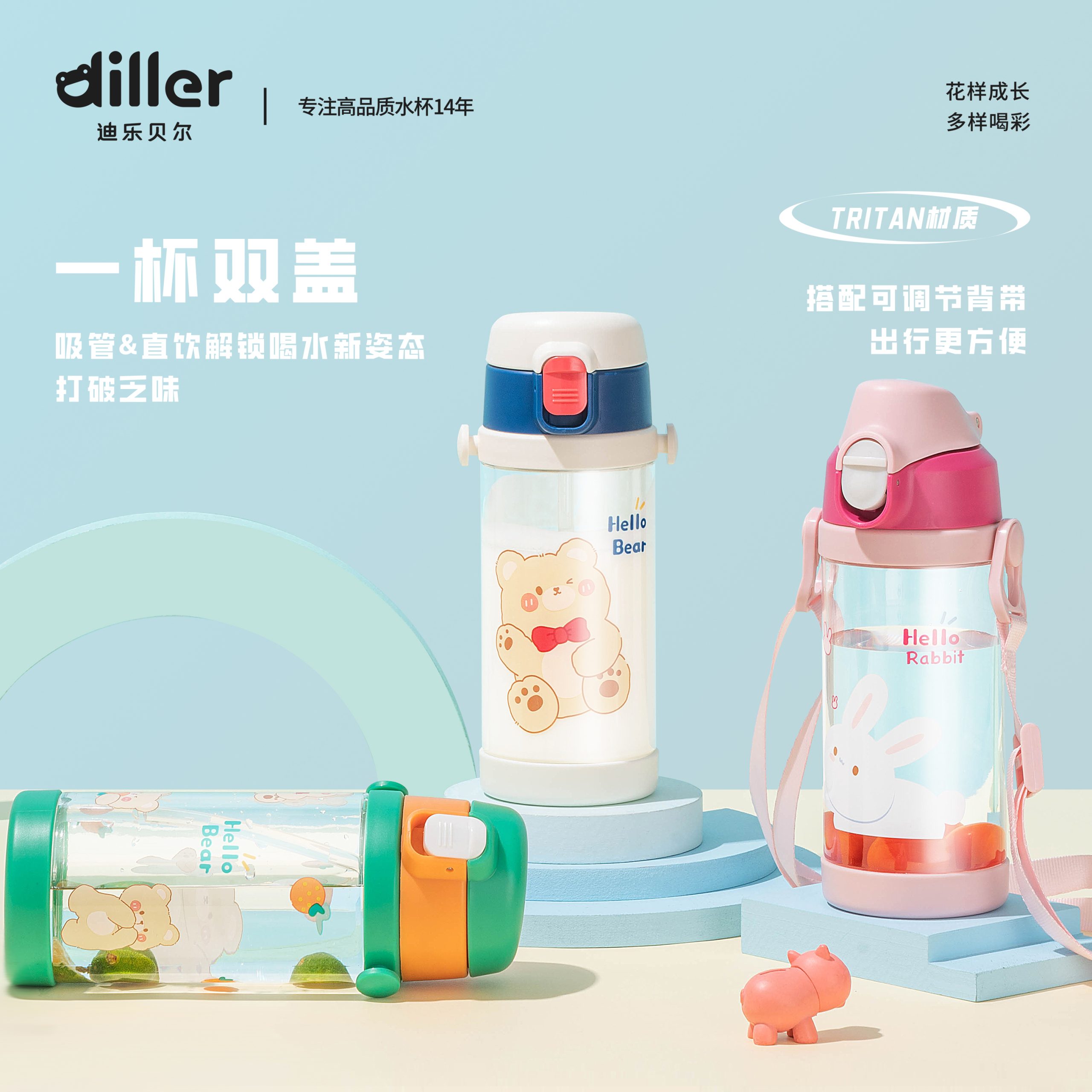 Home Baby/kids Tritan Water Bottle Diller Two Function Bottle Cap Water Bottle (DB2314-350ml)
