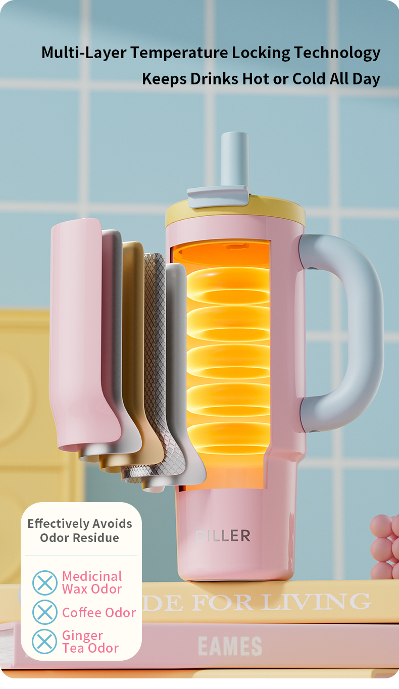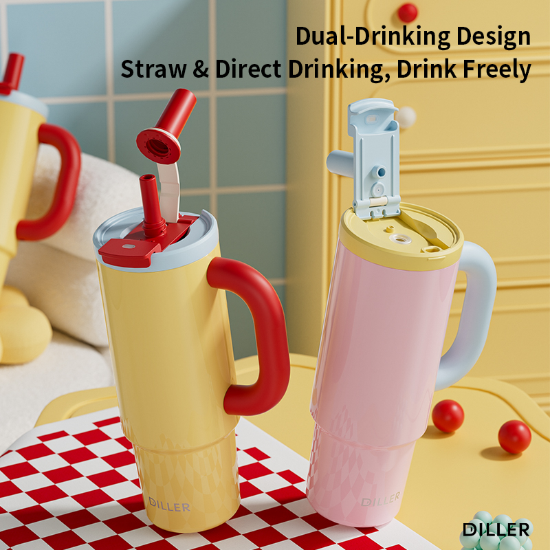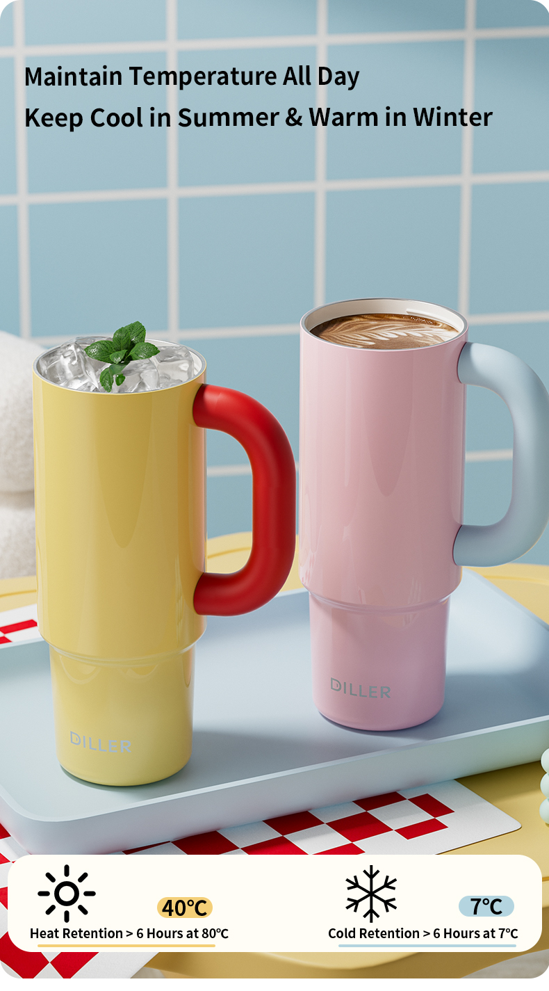 Diller Ceramic Coated Inner Liner Large Tumbler Thermos Mug Keep Cold Hot Vacuum Insulated Coffee Cup