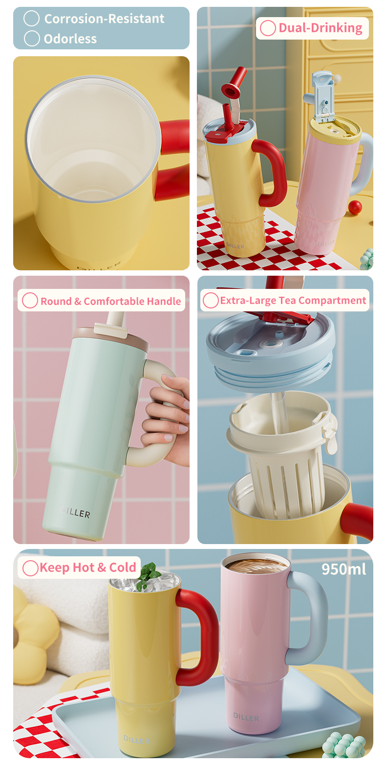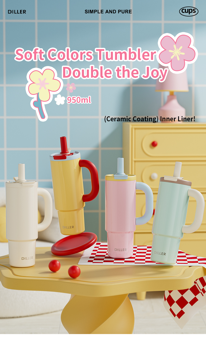 [PRE-ORDER] ALICIA X Diller Ceramic Coated Inner Liner Large Tumbler Thermos Mug Keep Cold Hot Vacuum Insulated Coffee Cup ( 950ml )D9511