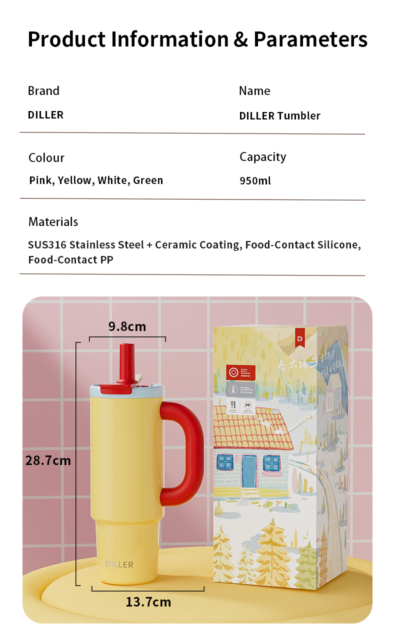 Be the first to review “[PRE-ORDER] ALICIA X Diller Ceramic Coated Inner Liner Large Tumbler Thermos Mug Keep Cold Hot Vacuum Insulated Coffee Cup ( 950ml )D9511” Cancel reply
