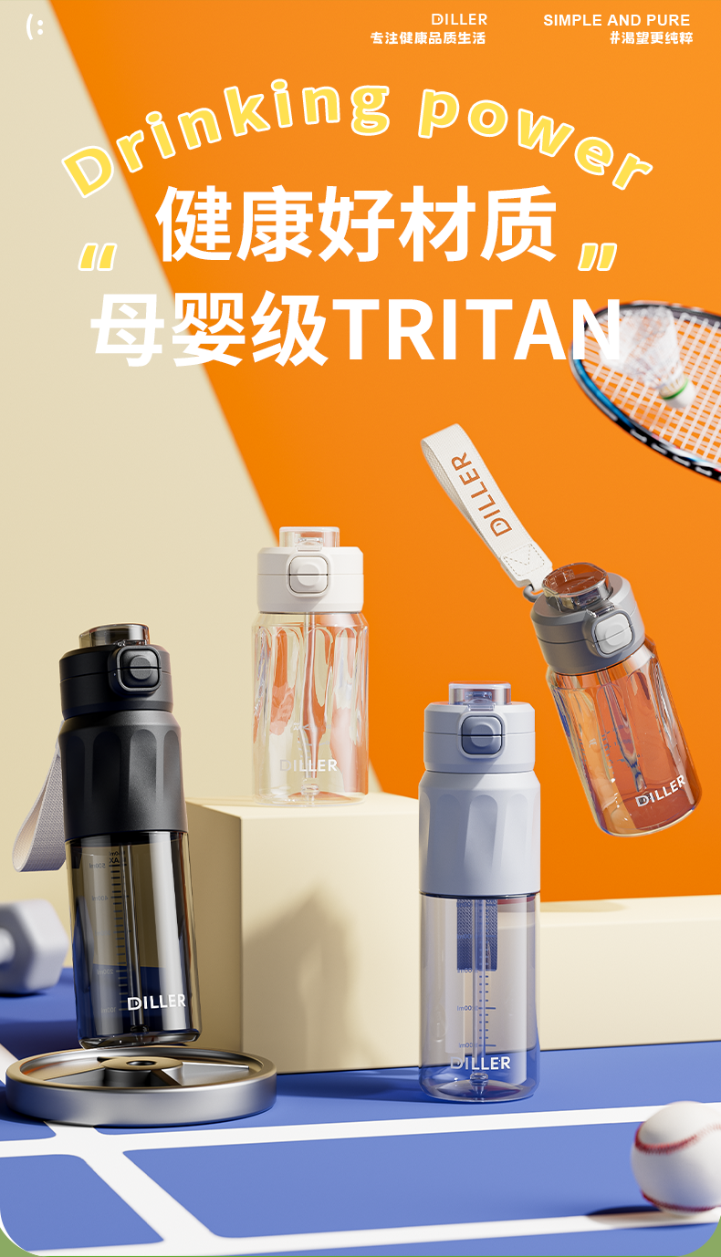Diller High Quality Sport Multifunction Tritan BPA free Water Bottle
